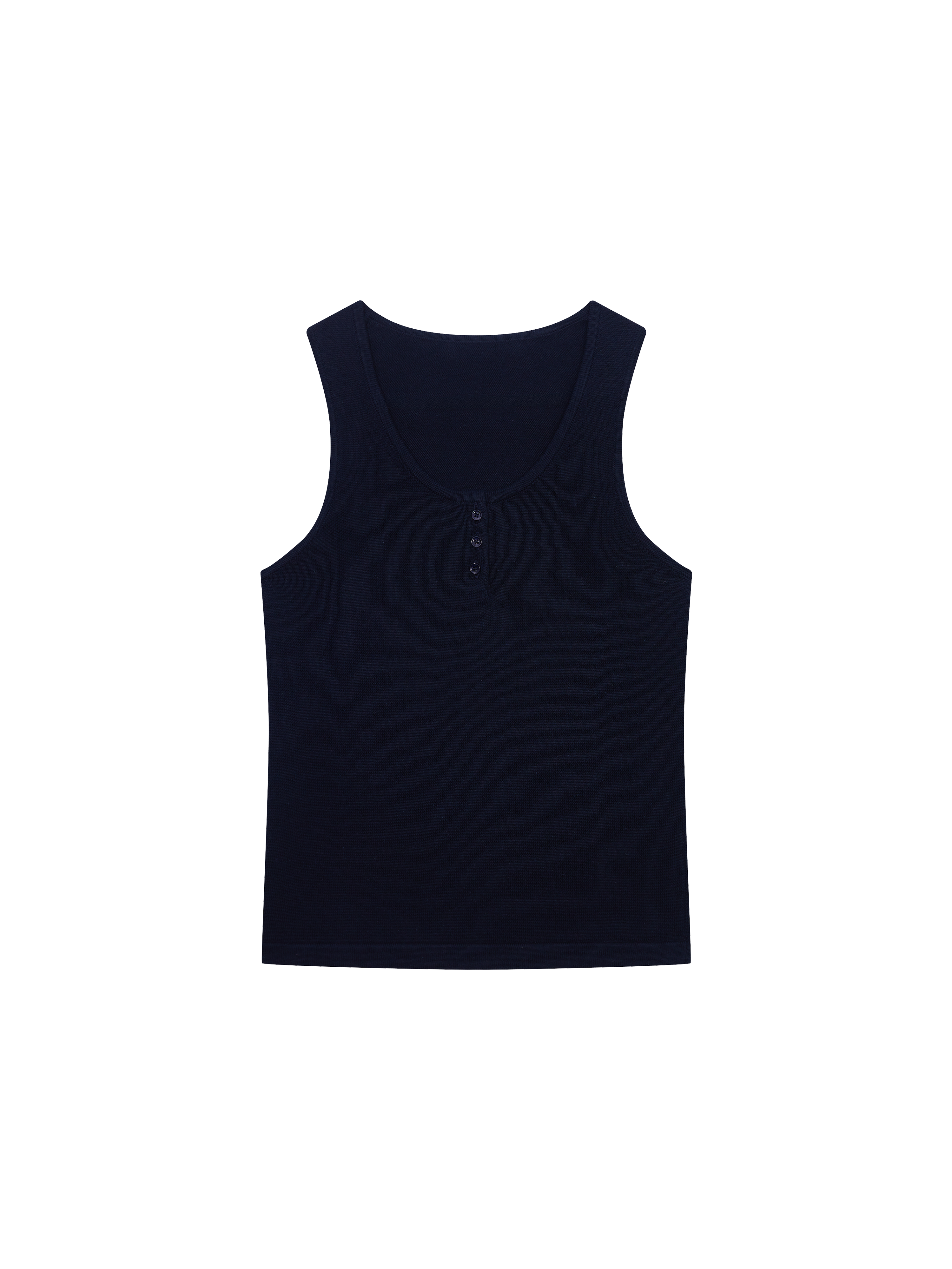 - 전면부 버튼 디테일의 슬리브리스 니트