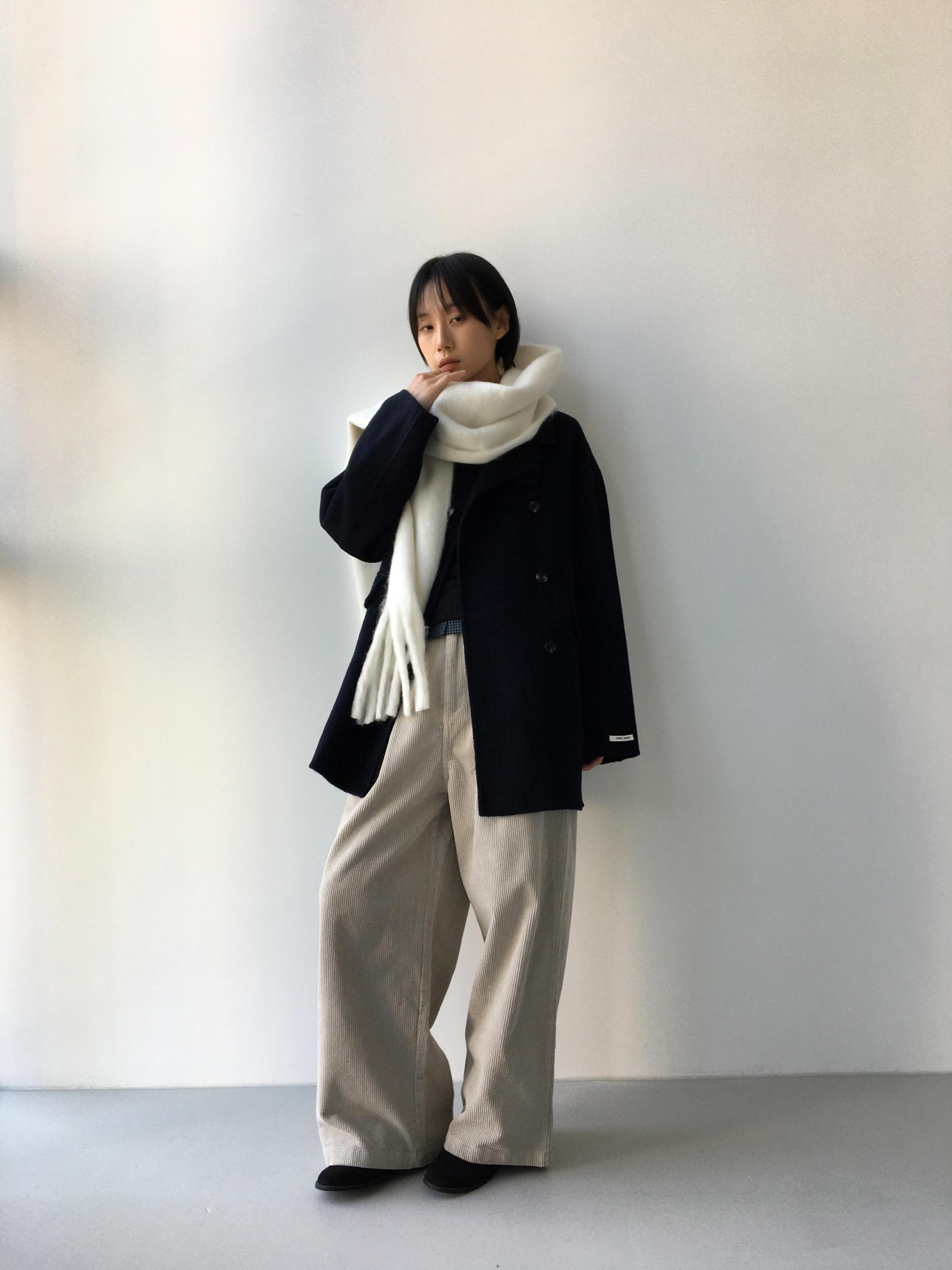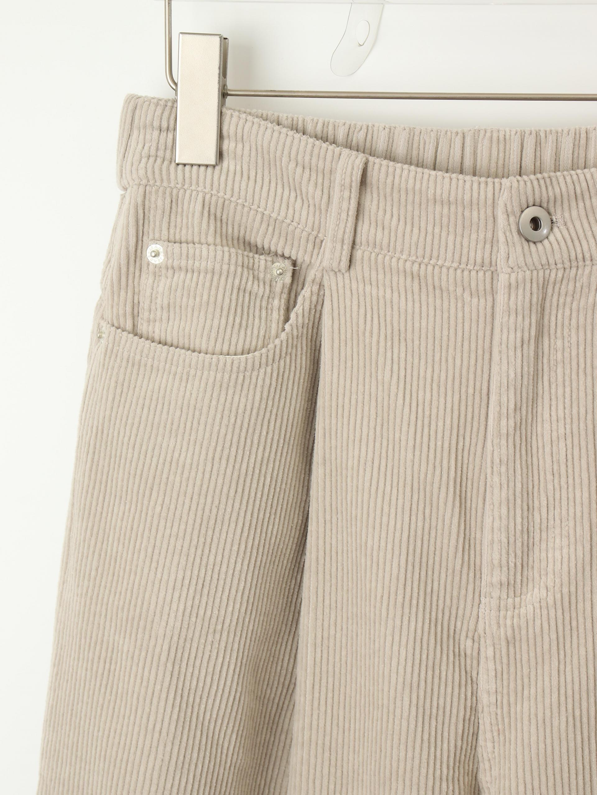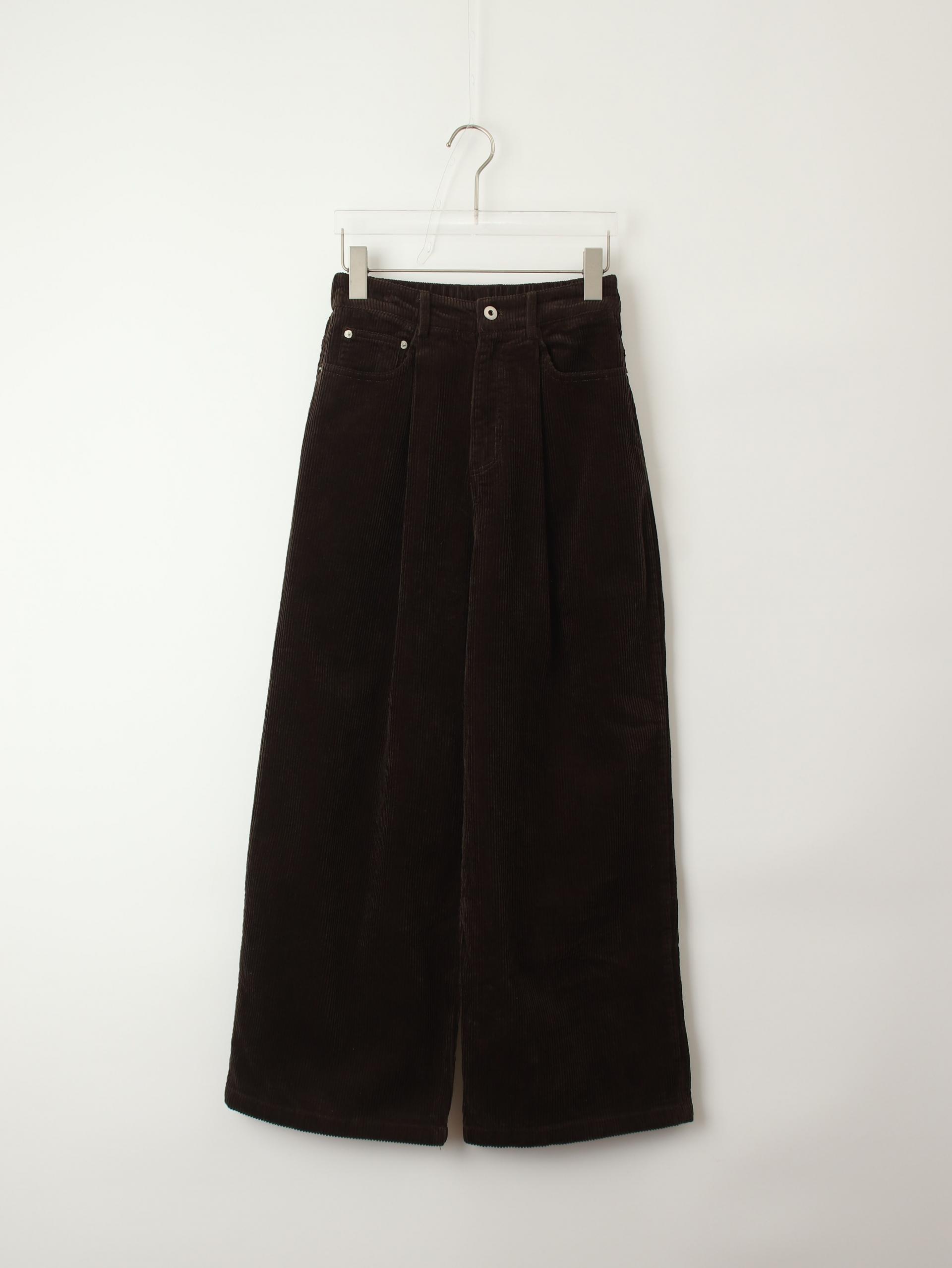 따뜻한 터치감의 두께감있는 코듀로이 소재로 제작된 와이드 팬츠입니다.
