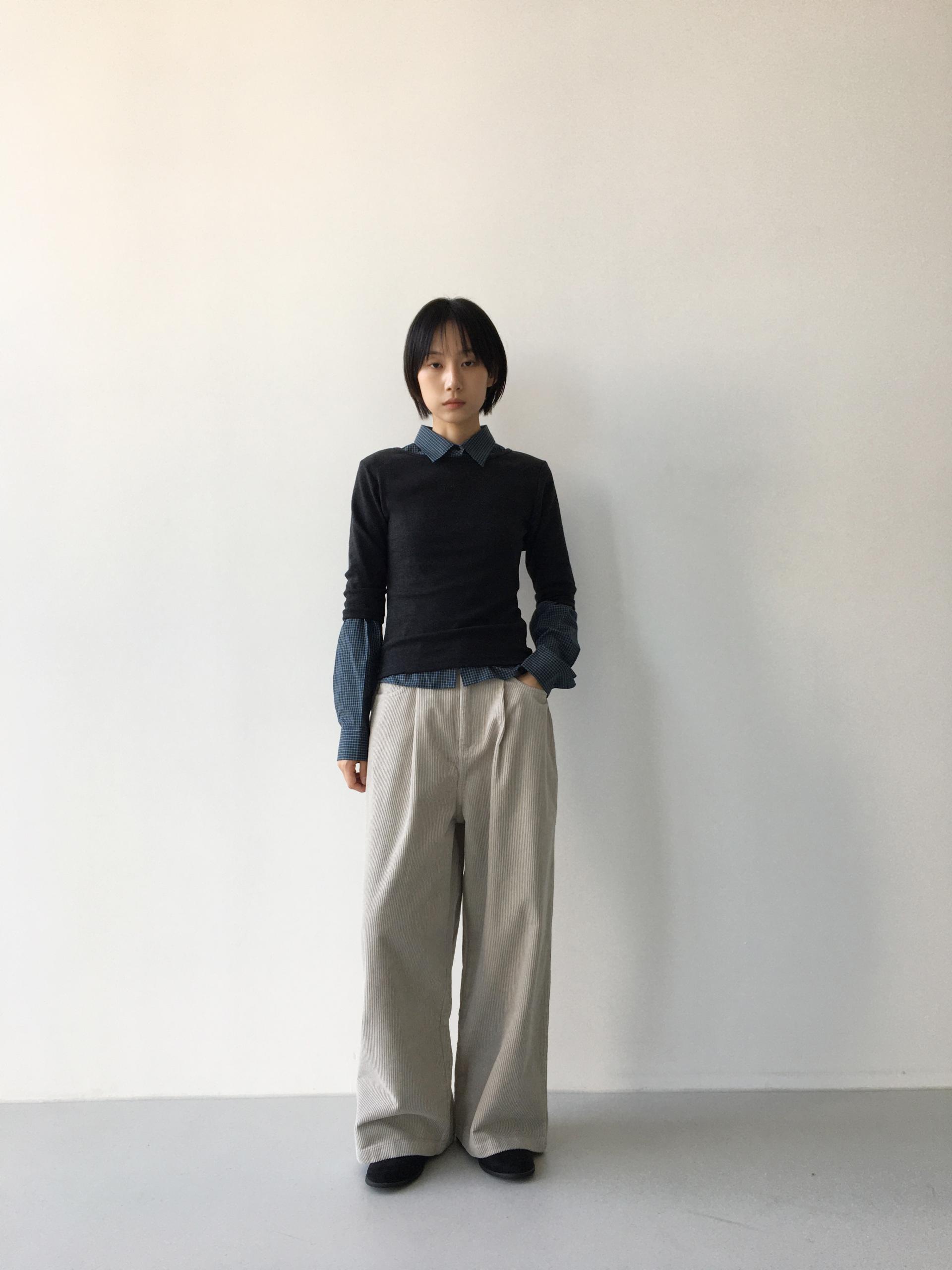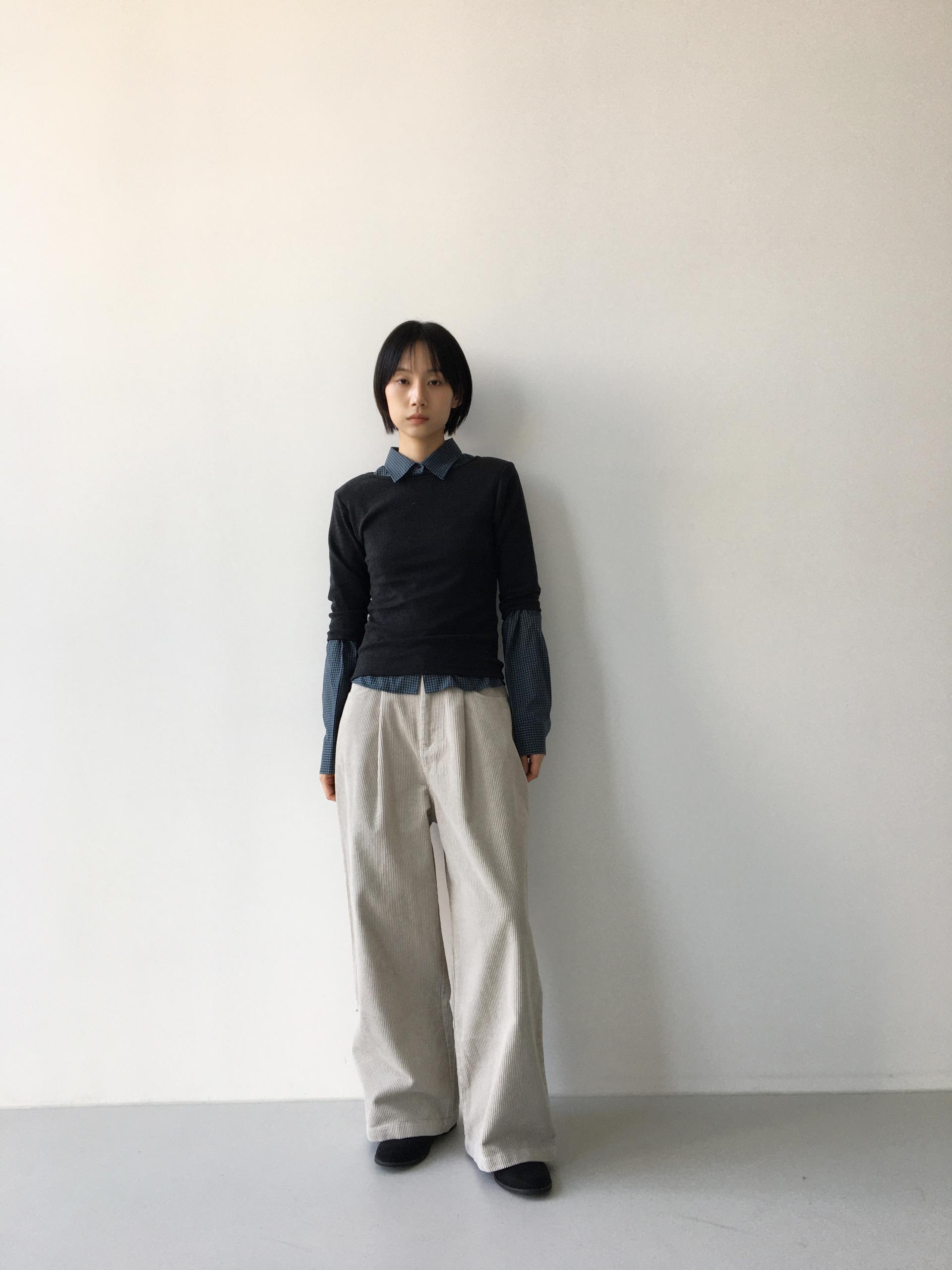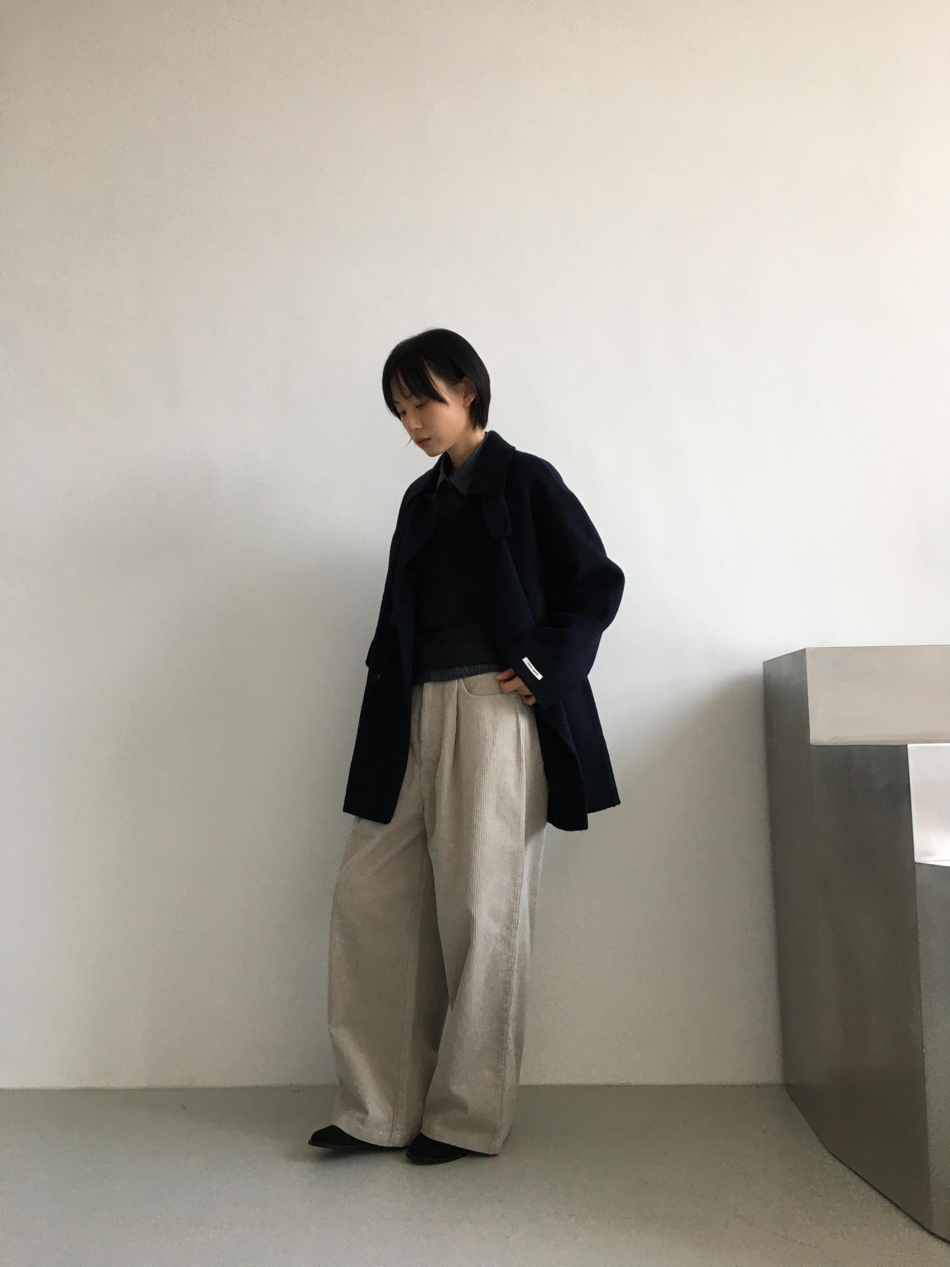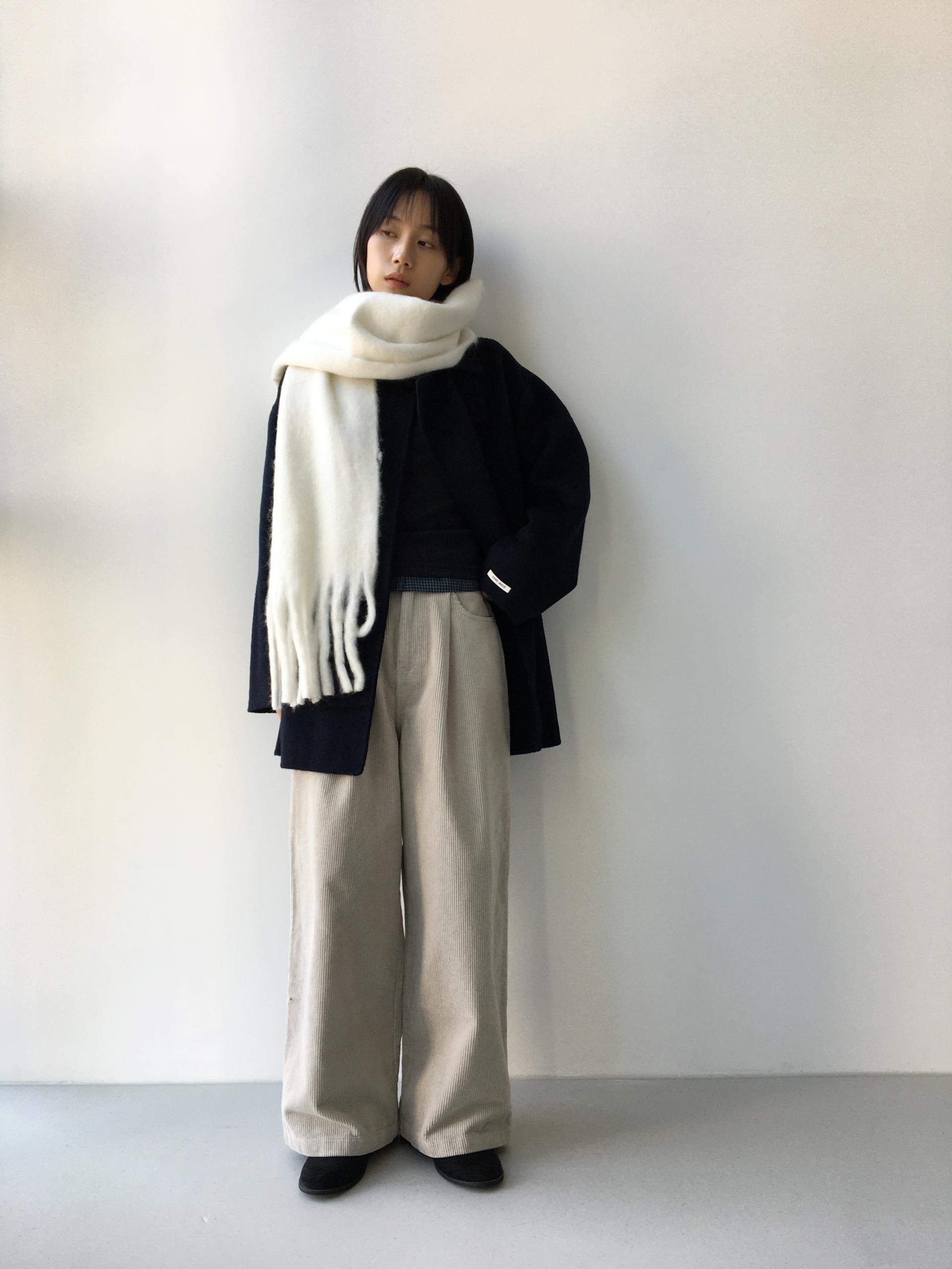 따뜻한 터치감의 두께감있는 코듀로이 소재로 제작된 와이드 팬츠입니다.