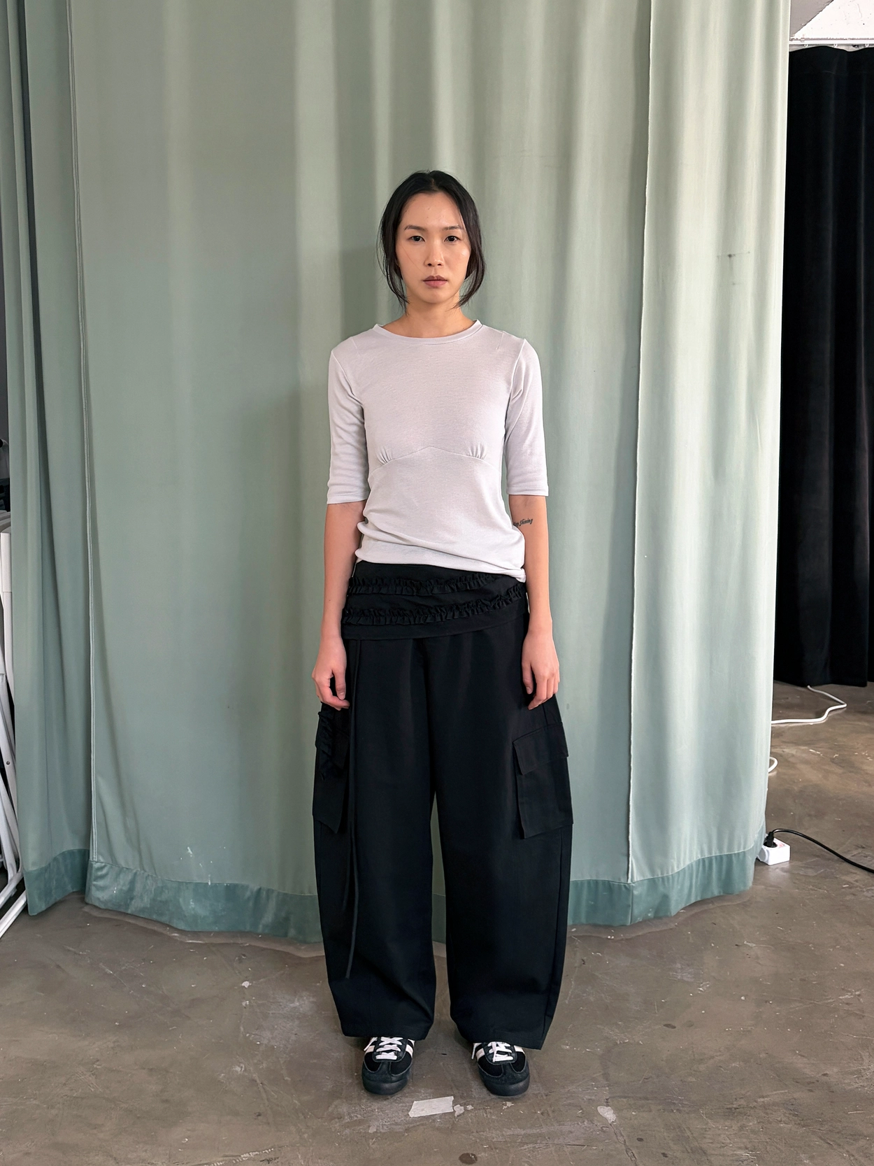 frill belt cargo pants