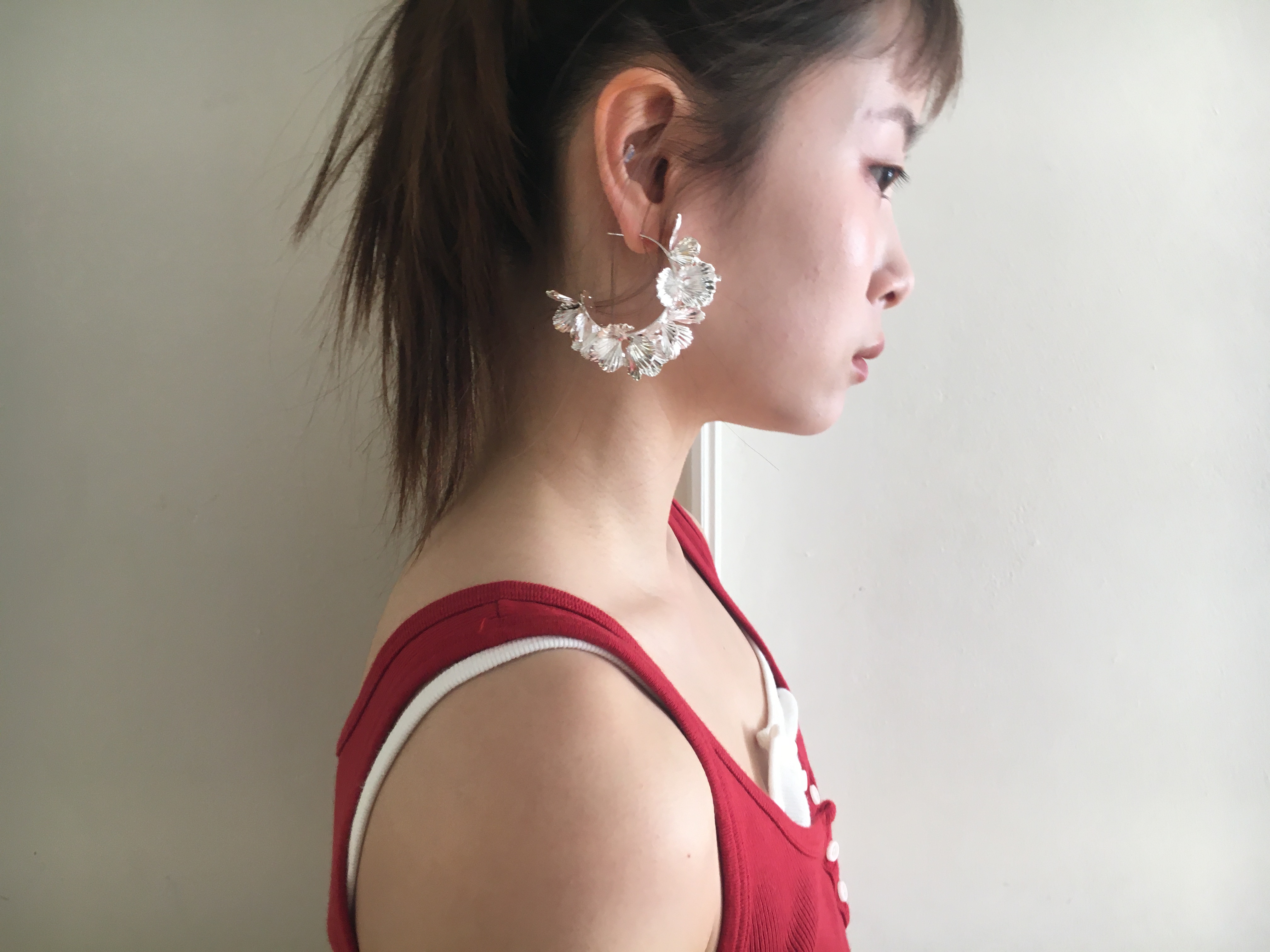 - 빅 사이즈로 제작된 유니크한 디자인의 하프 후프 귀걸이