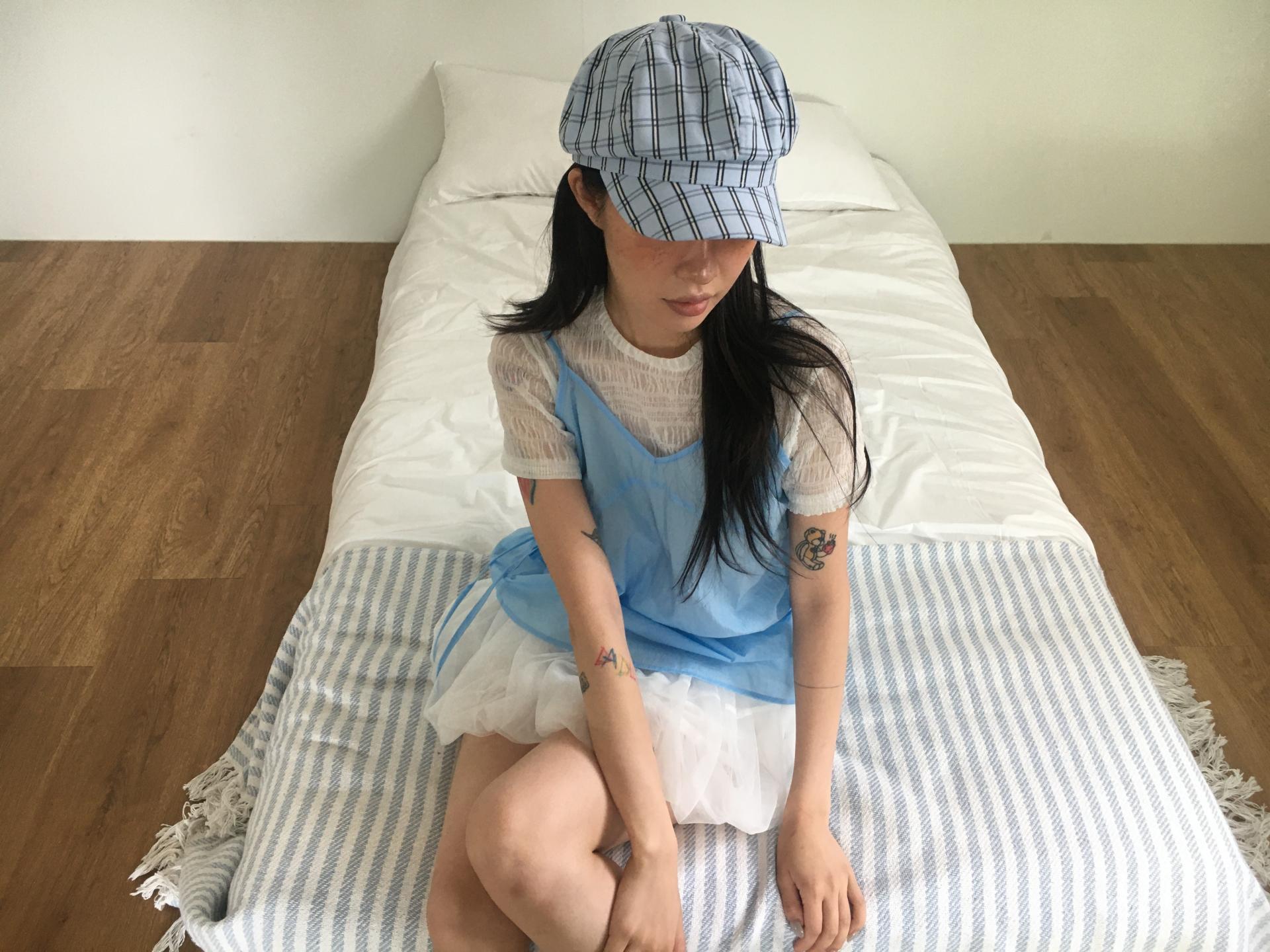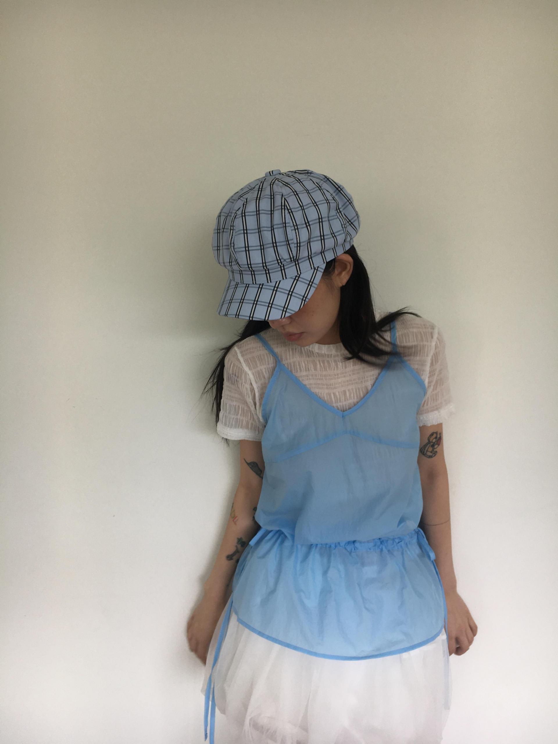 - 키치하면서 사랑스러운 무드를 느낄 수 있는 체크무늬의 베레모