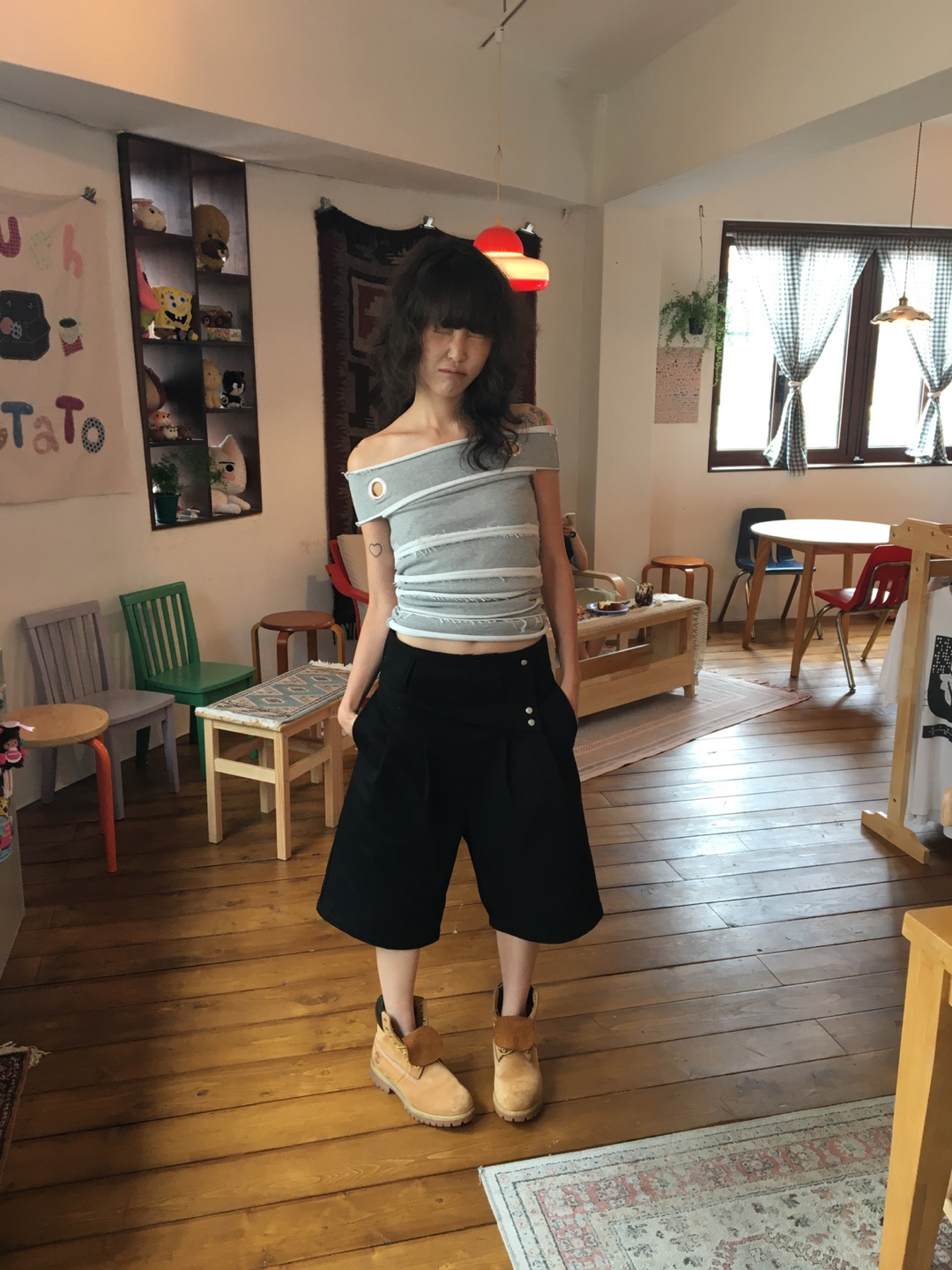 - 핀턱 디테일이 더해진 와이드한 실루엣의 버뮤다 팬츠