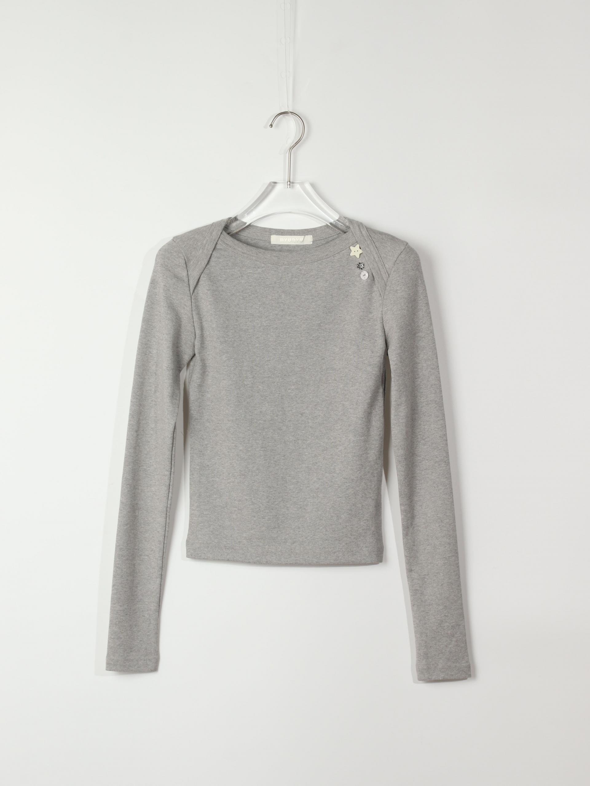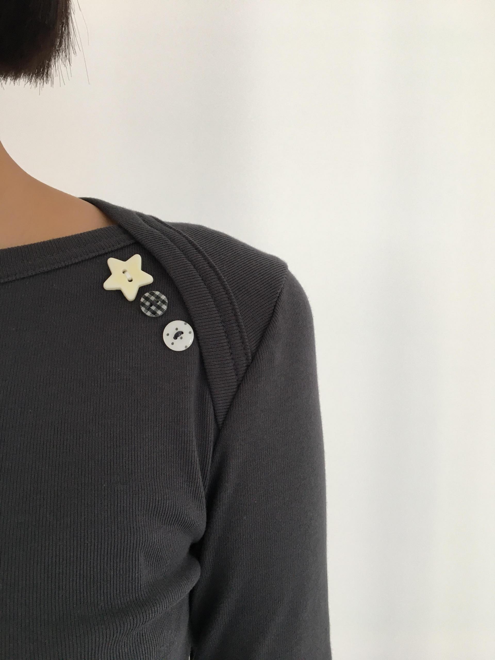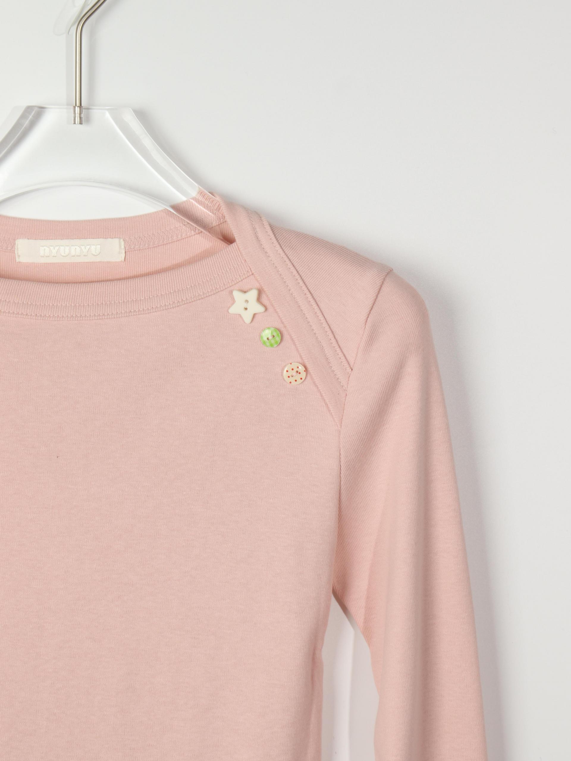귀여운 버튼 디테일로 캐주얼하게 연출하기 좋은 티셔츠입니다.