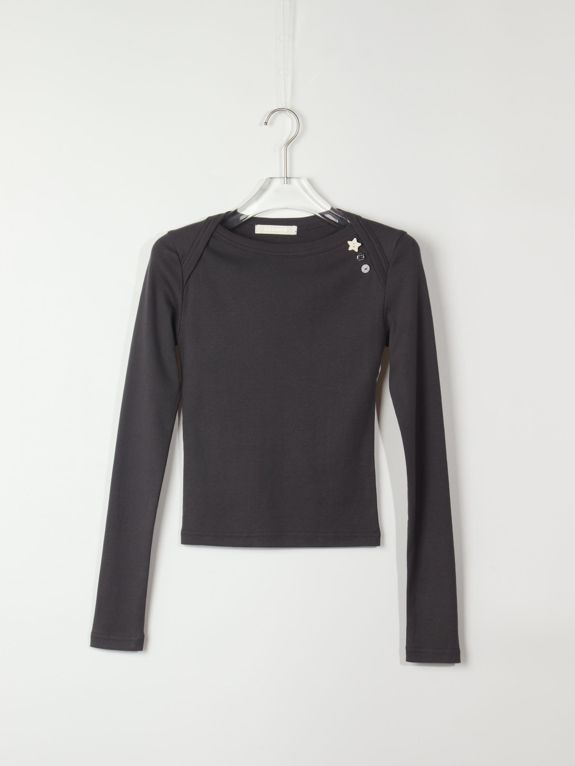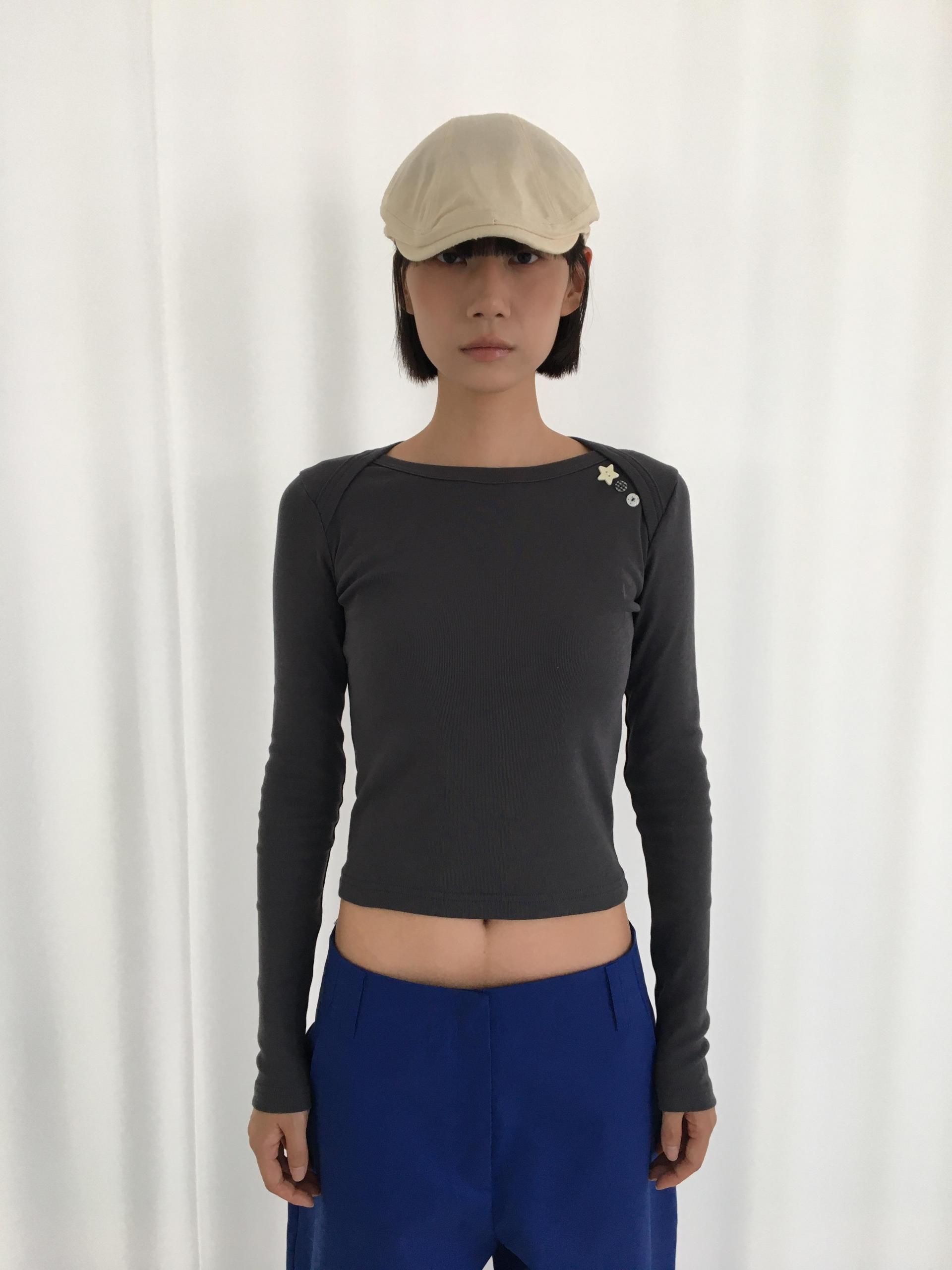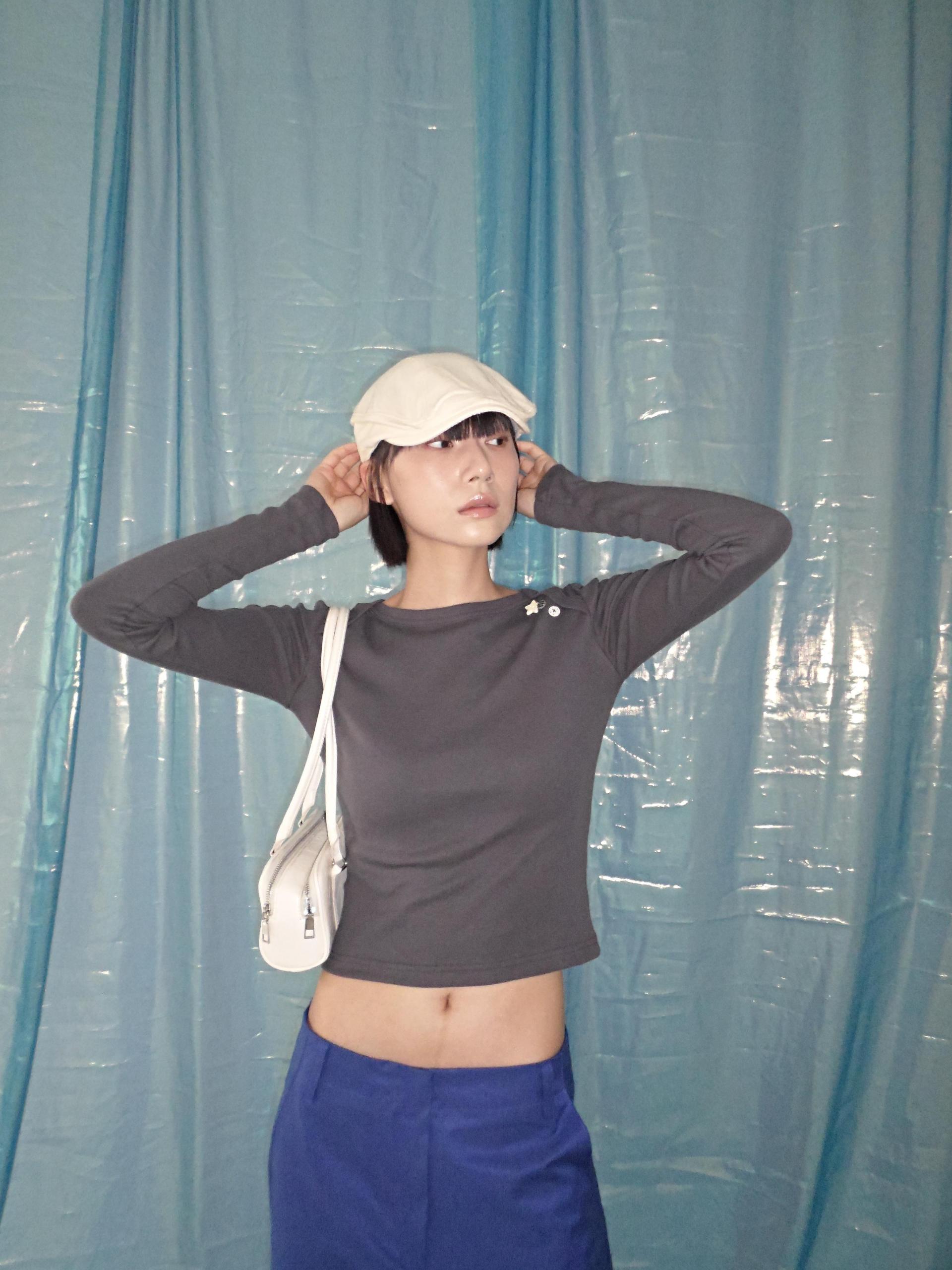 귀여운 버튼 디테일로 캐주얼하게 연출하기 좋은 티셔츠입니다.