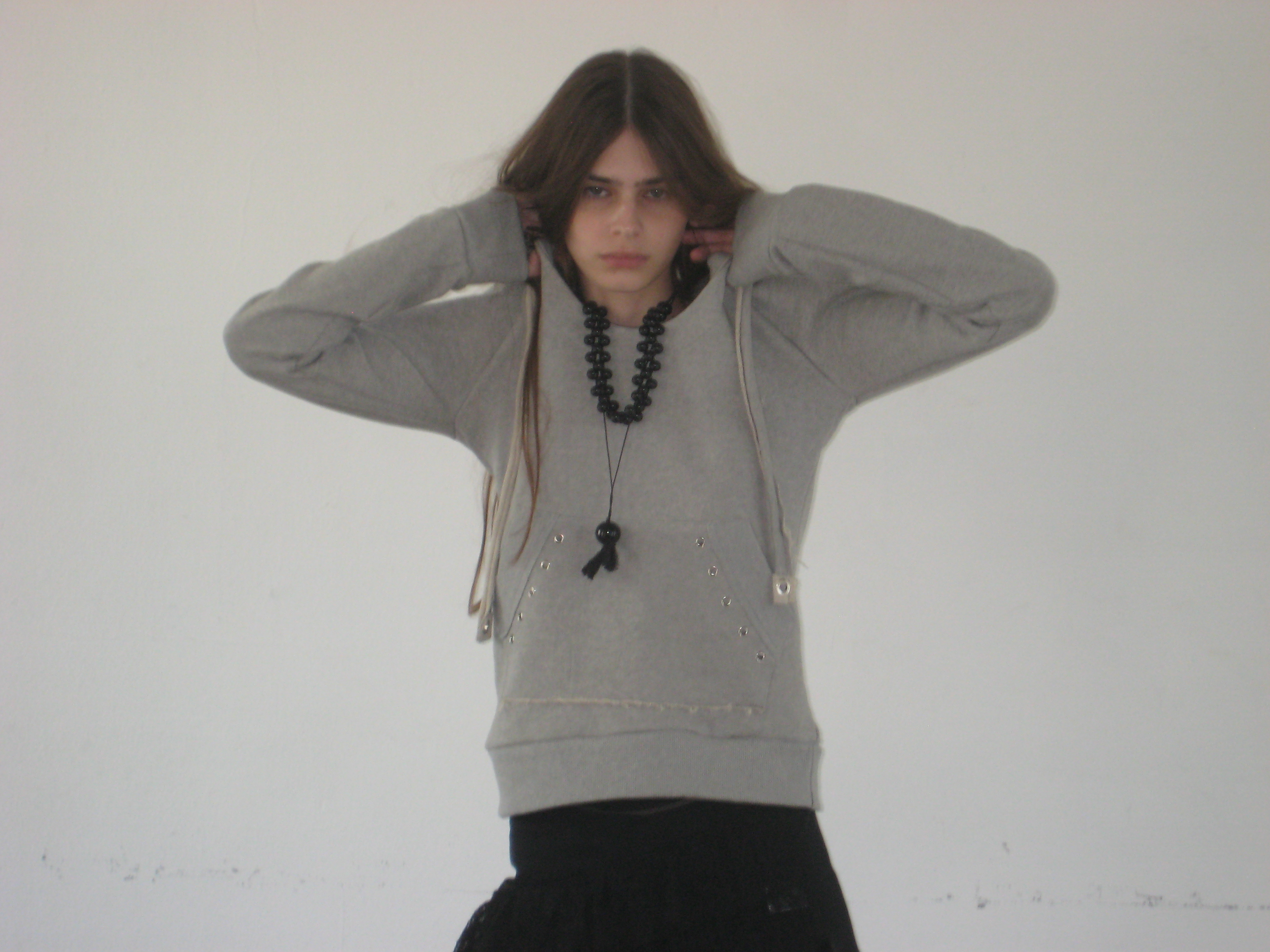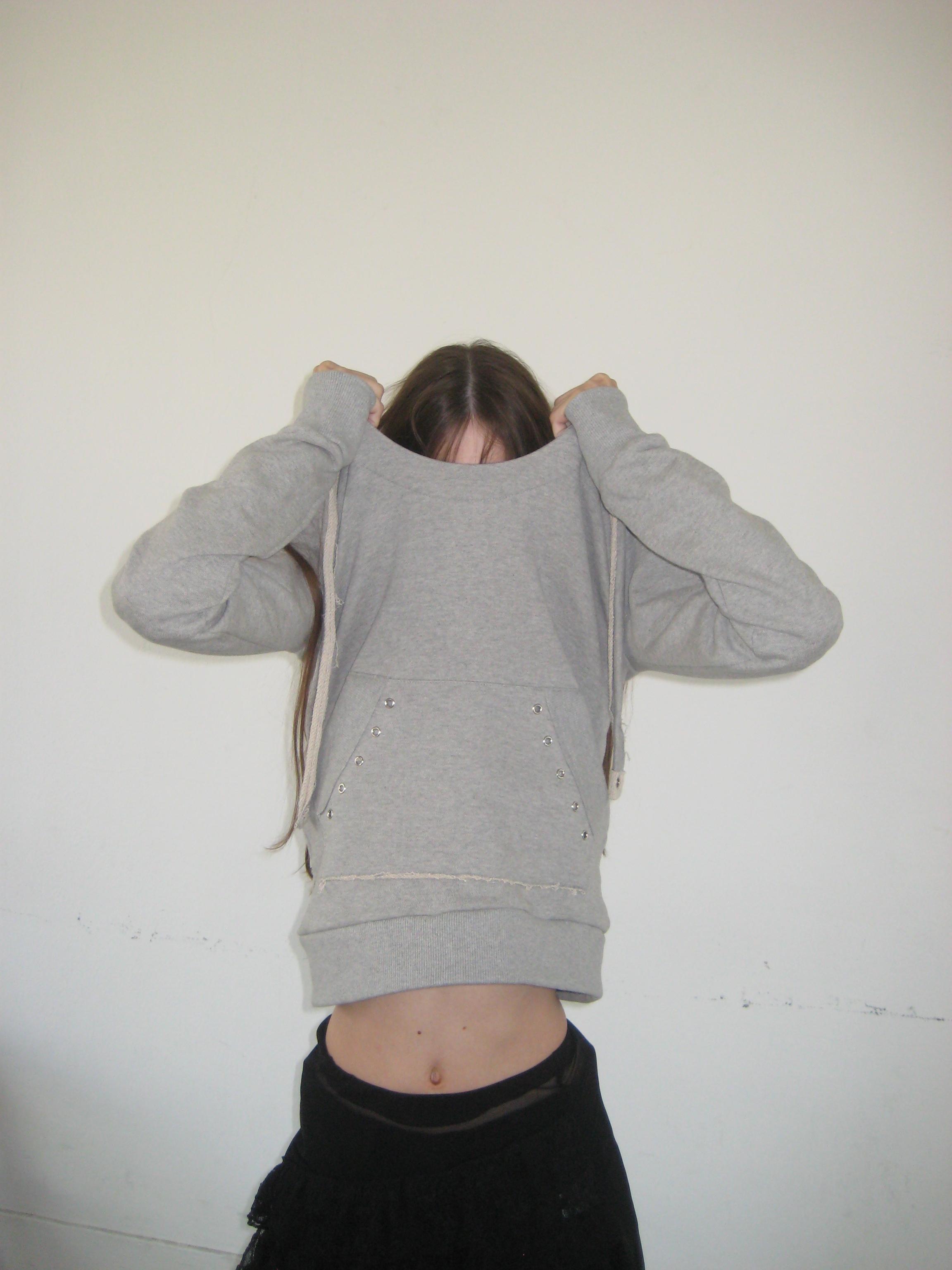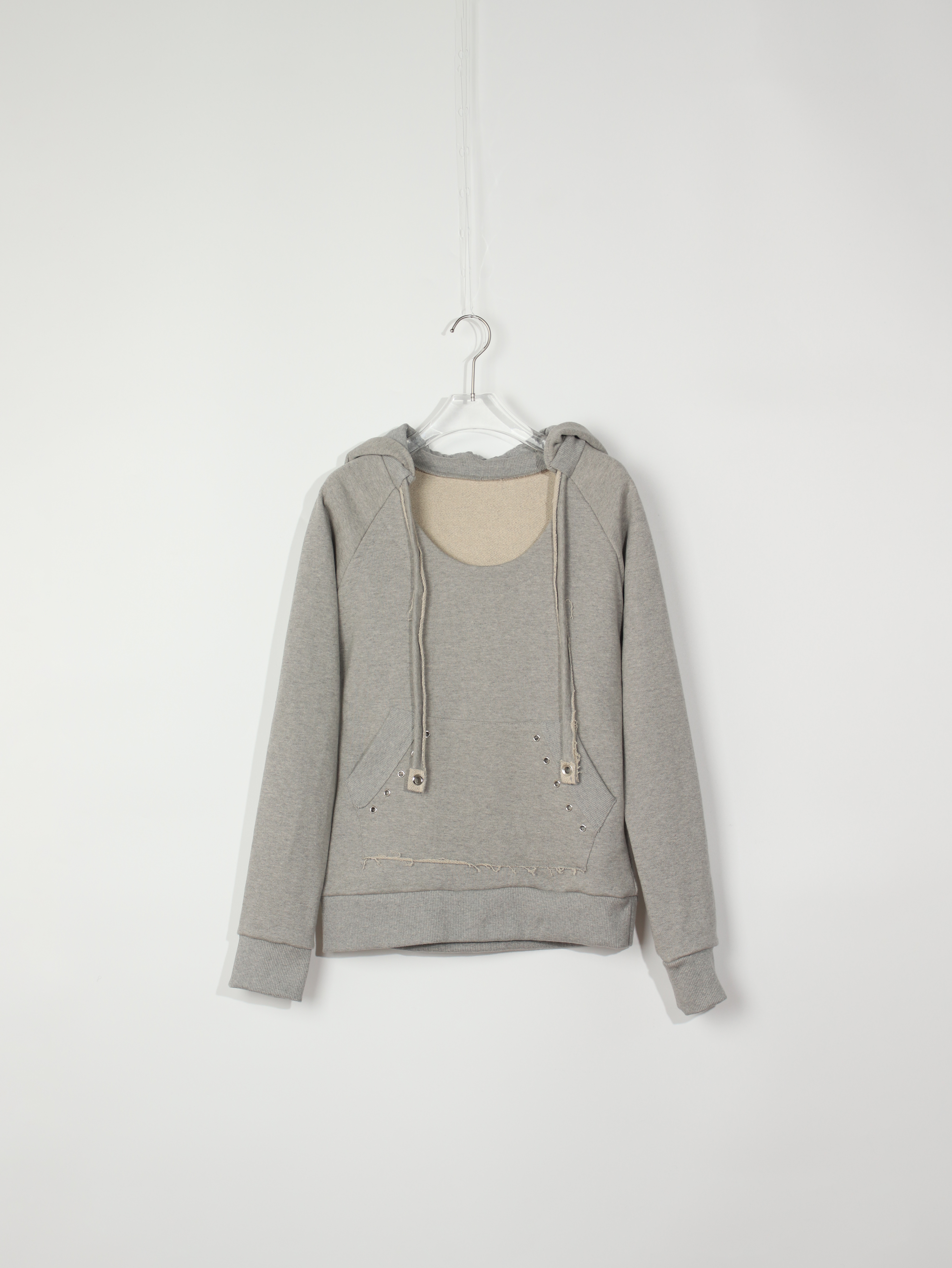 - 깊게 파인 U넥 디자인의 후드티