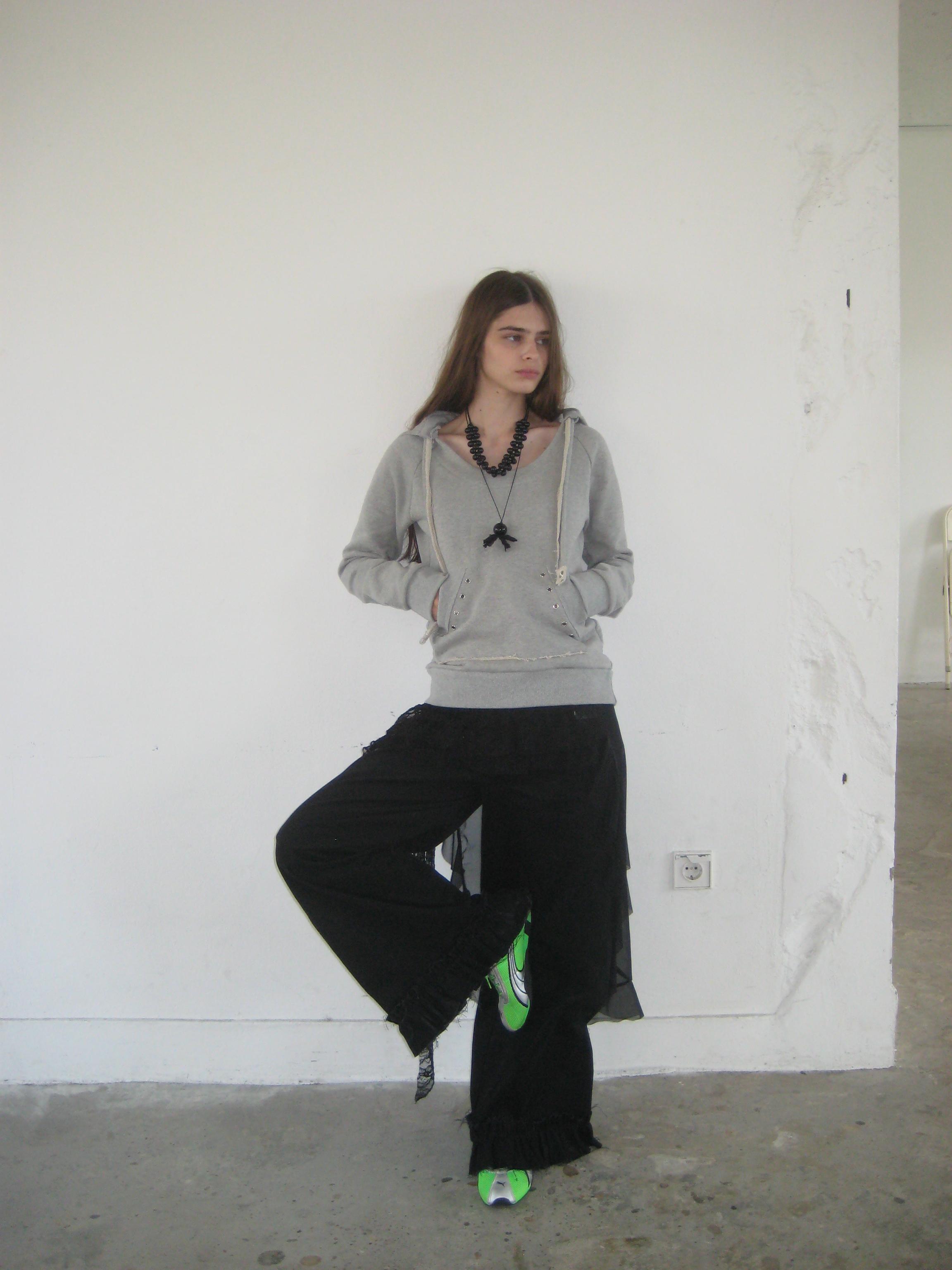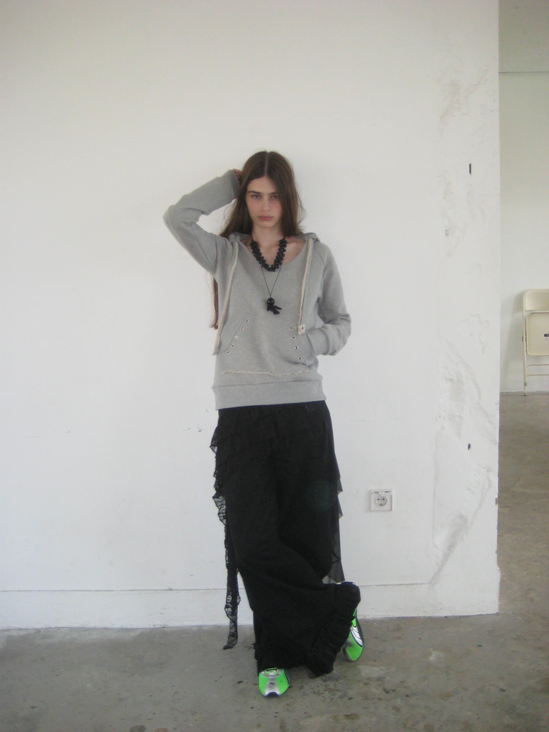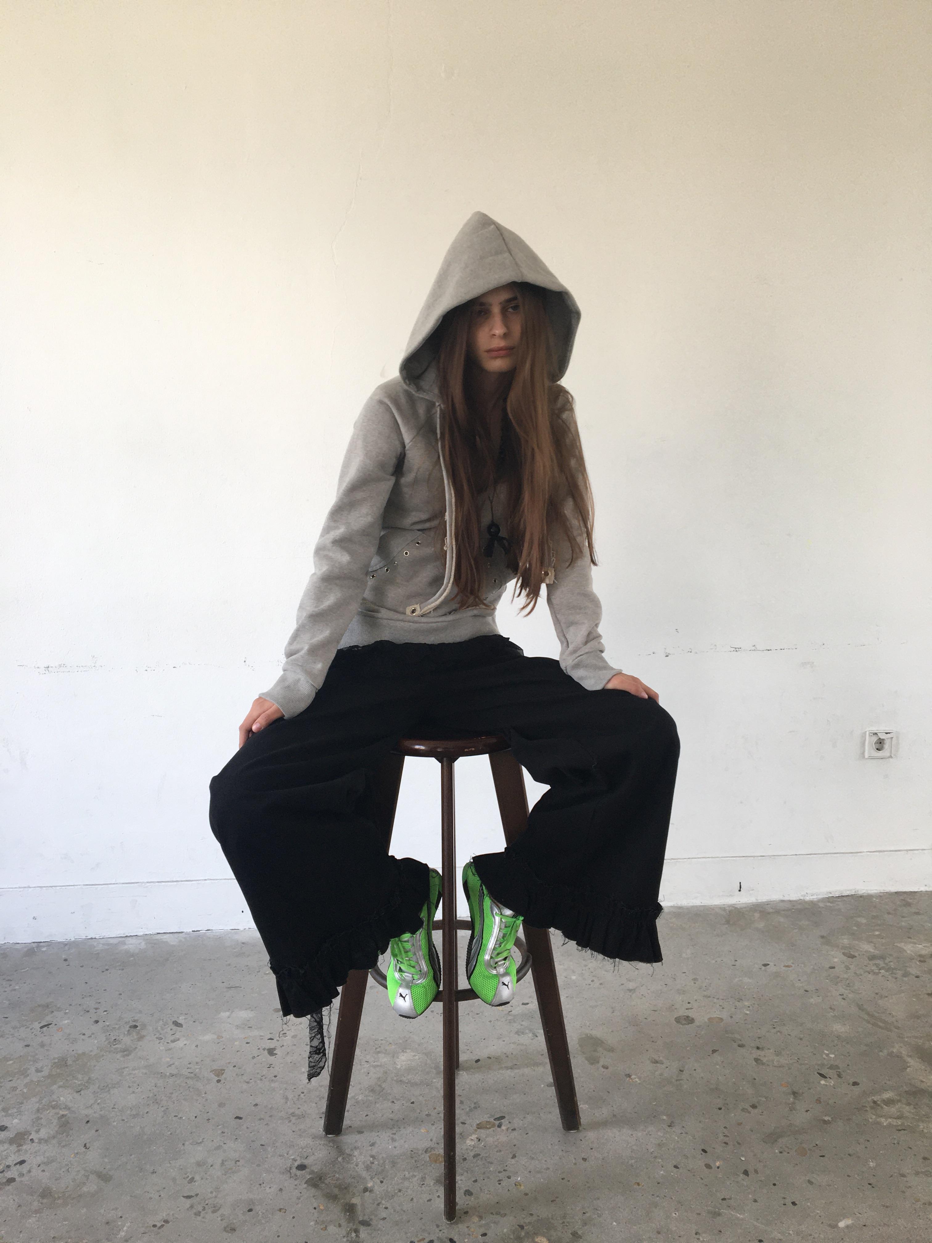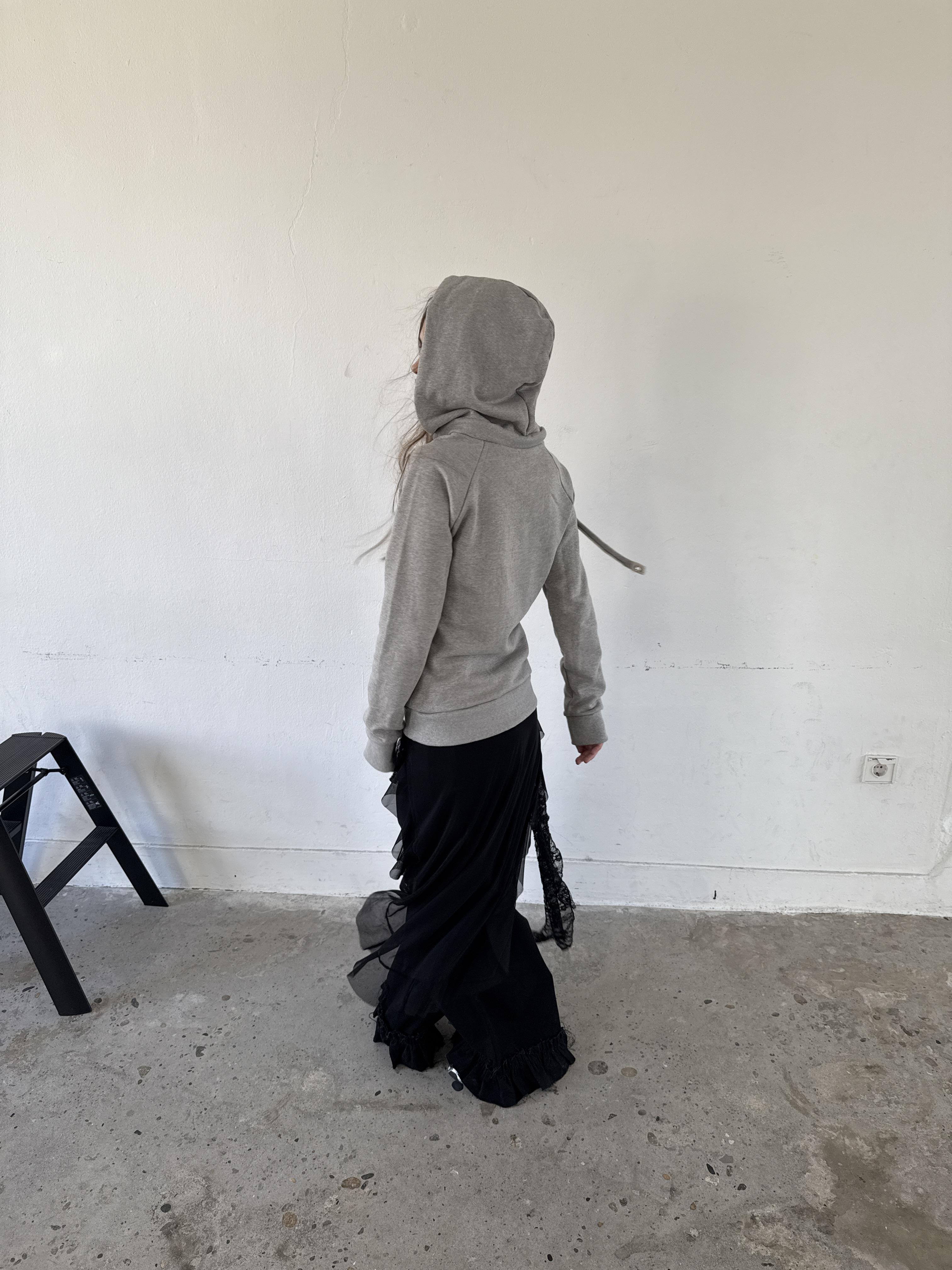 - 깊게 파인 U넥 디자인의 후드티