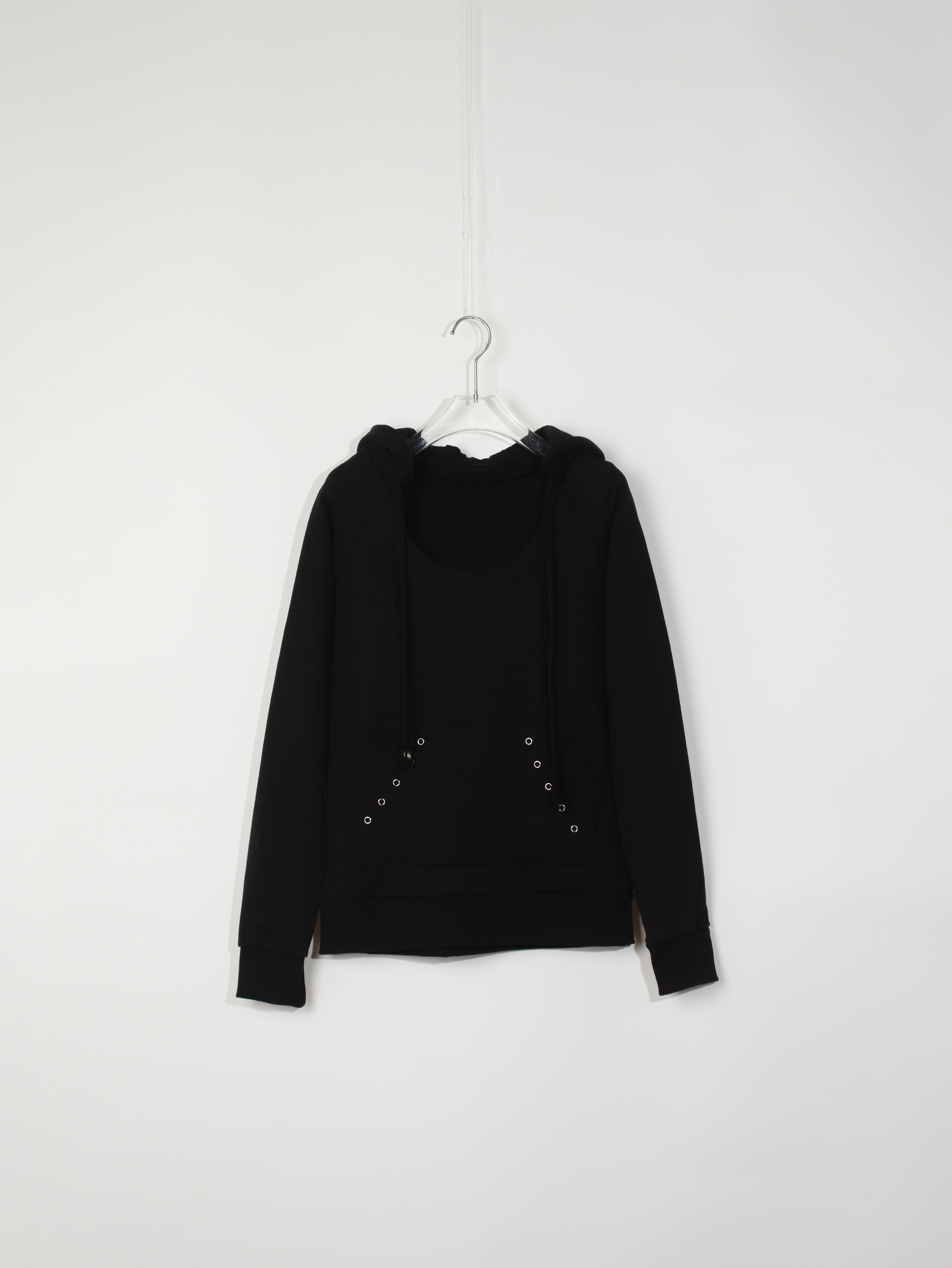 - 후드 스트링, 포켓 하단 컷오프 디테일과 아일렛 포인트