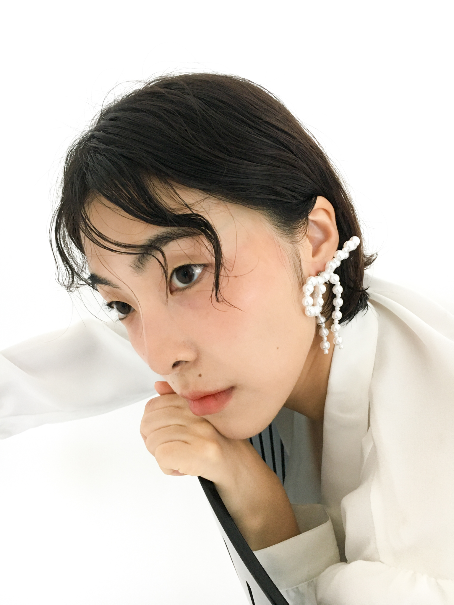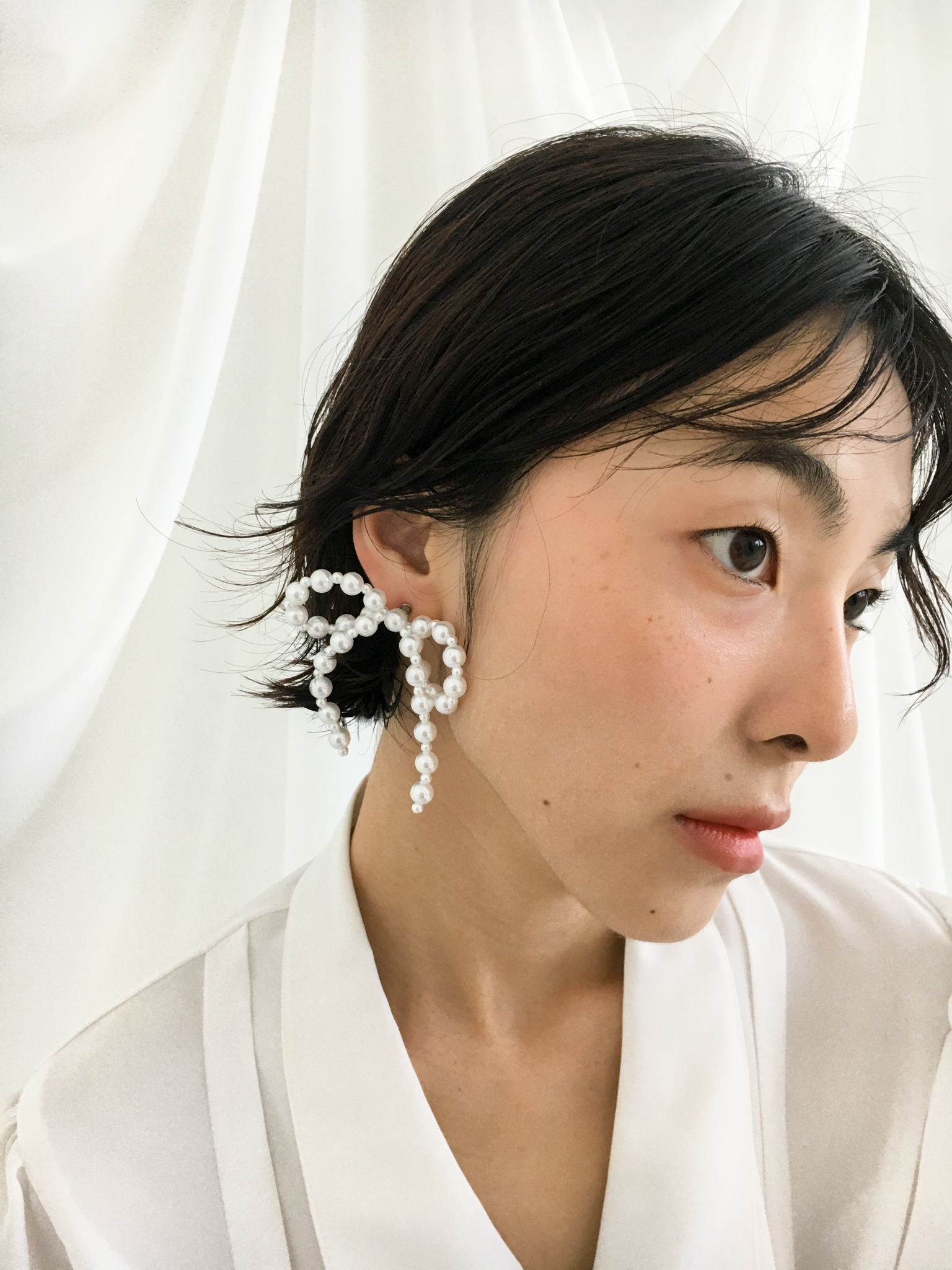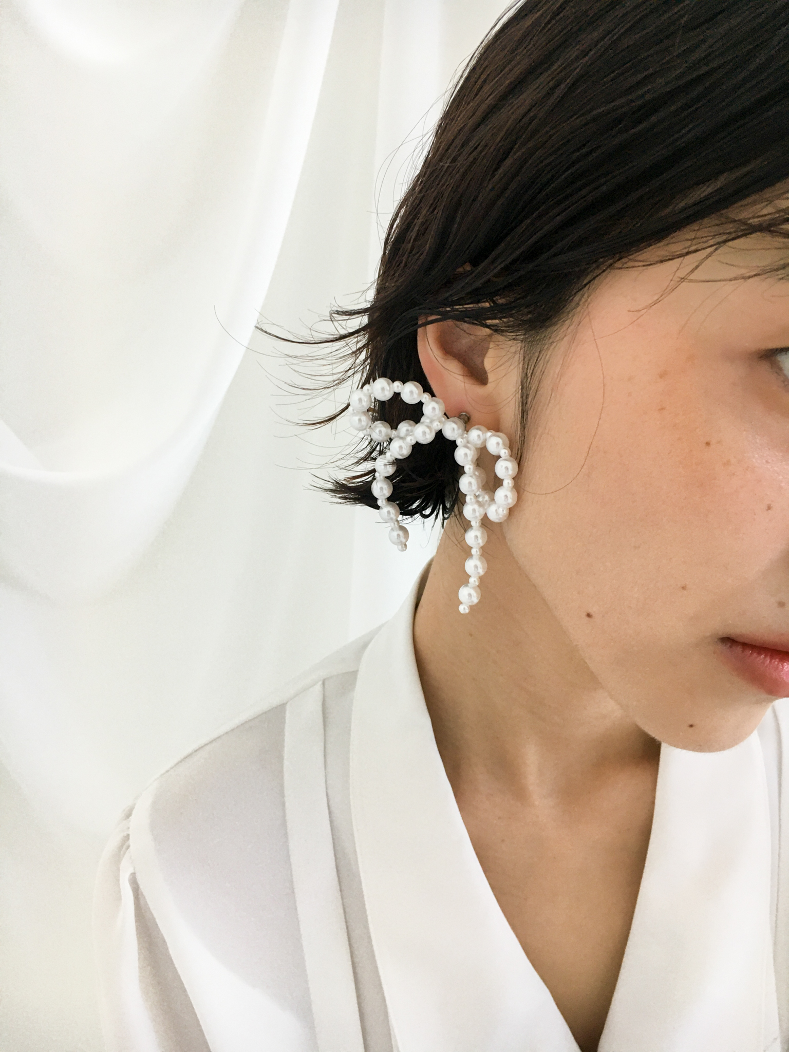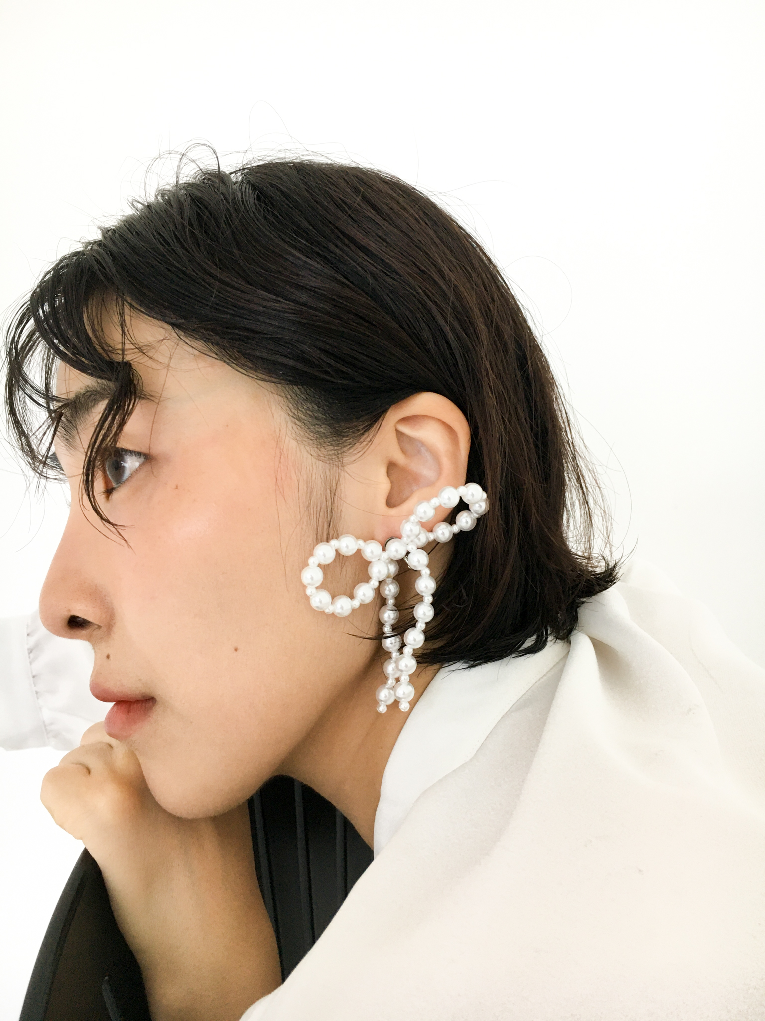 - 진주를 이어서 만든 사랑스러운 무드의 리본 귀걸이