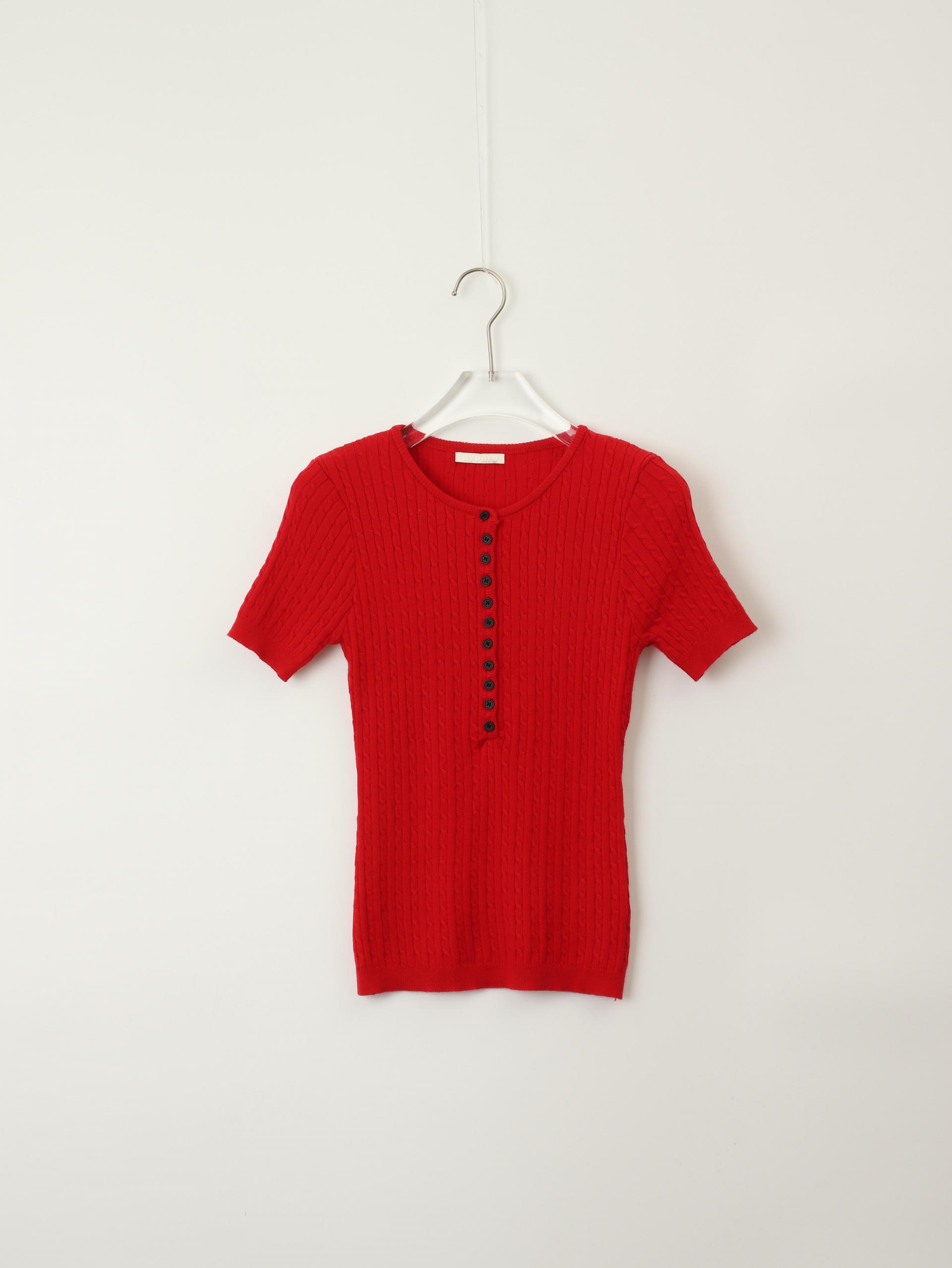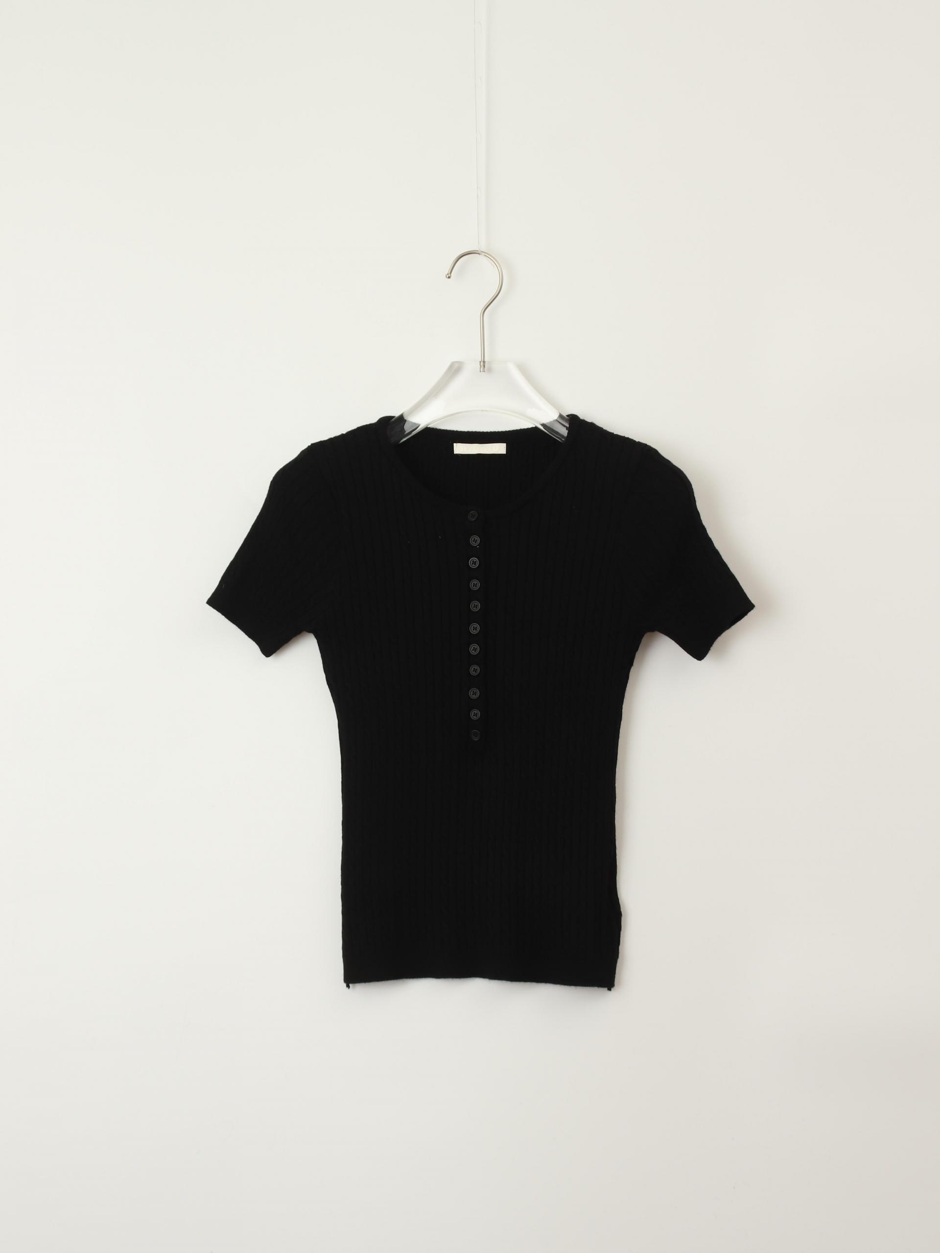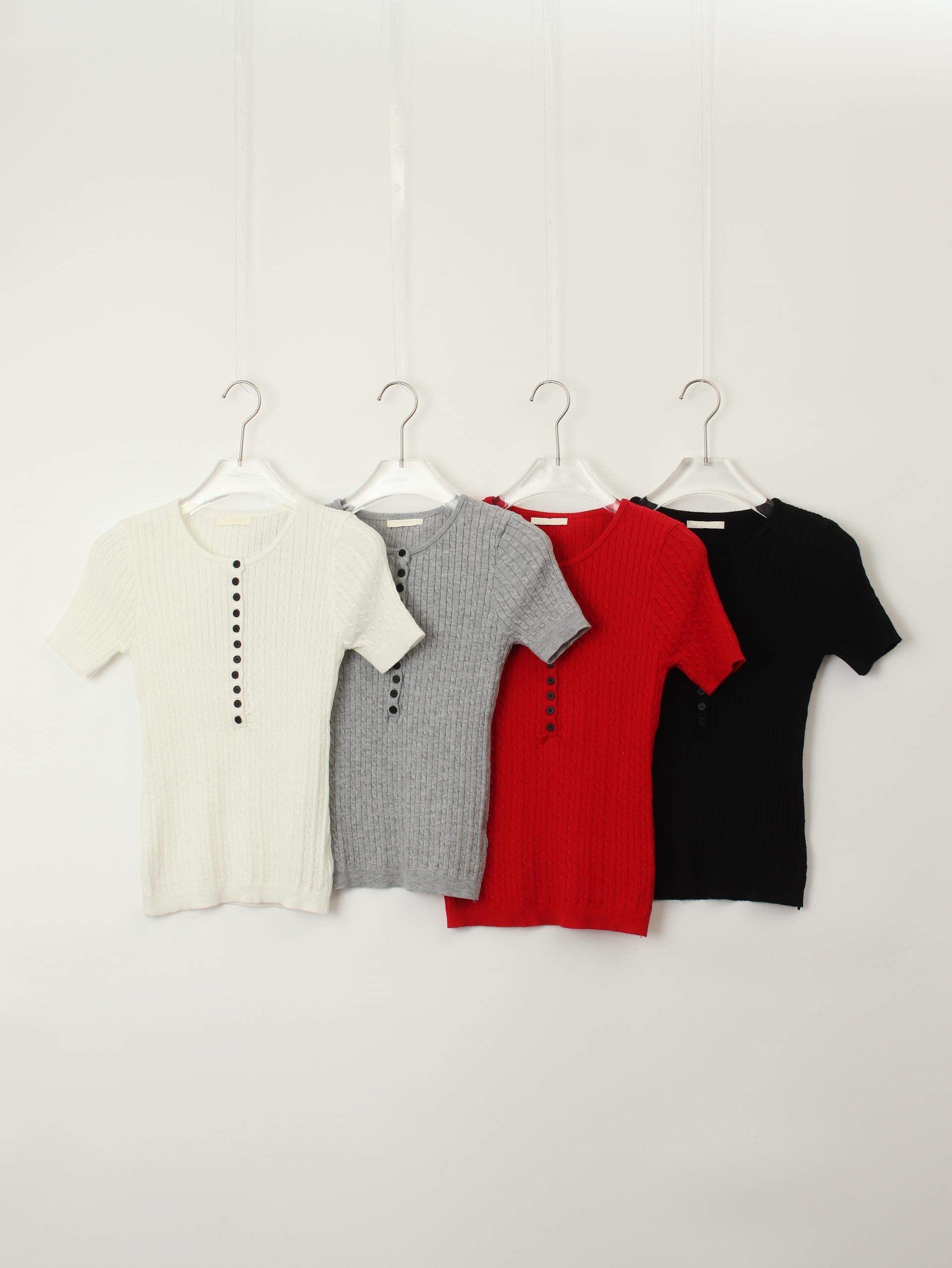앞판 버튼 디테일이 돋보이는 티셔츠입니다. 신축성 좋은 소재로 이루어져