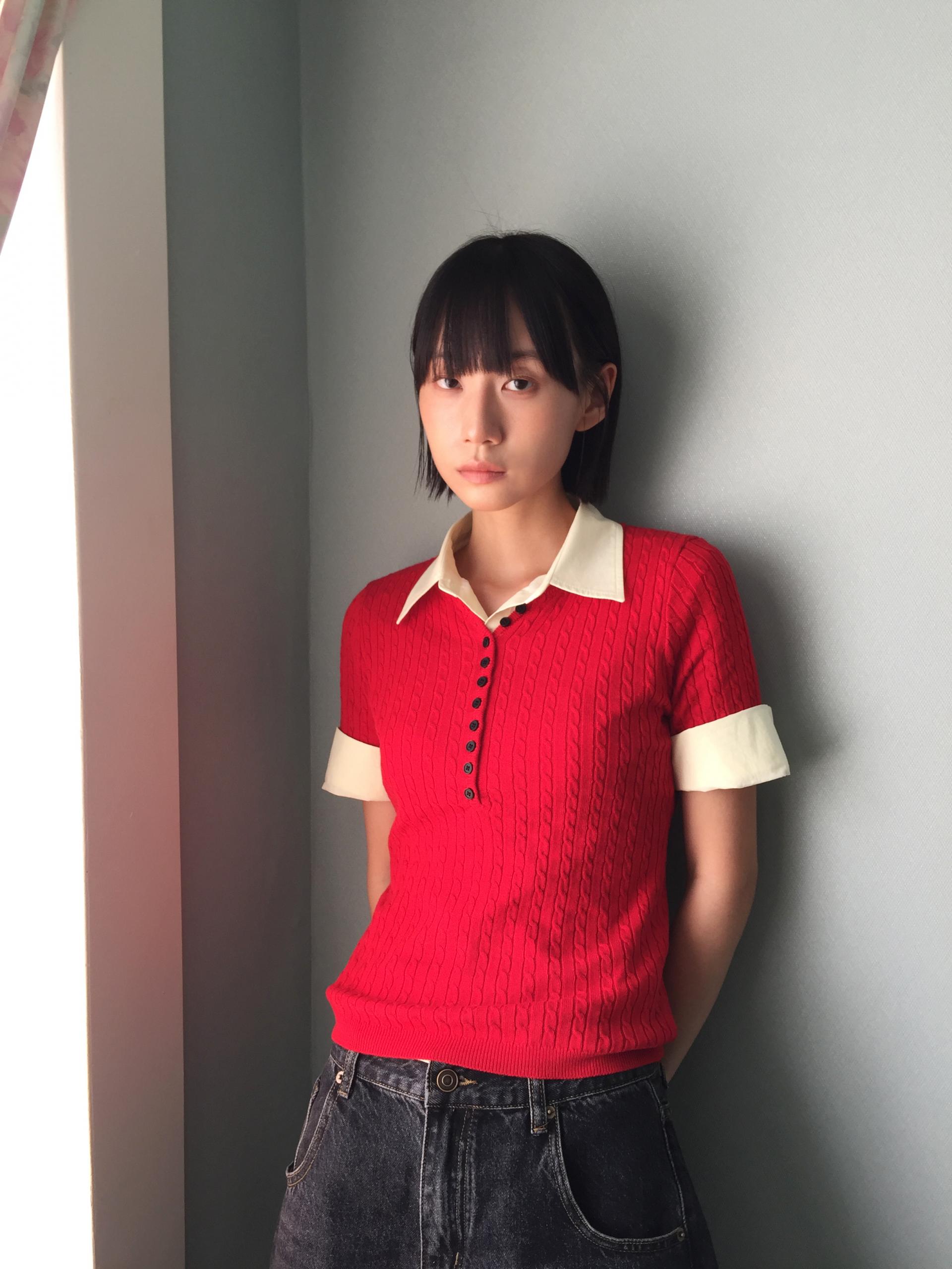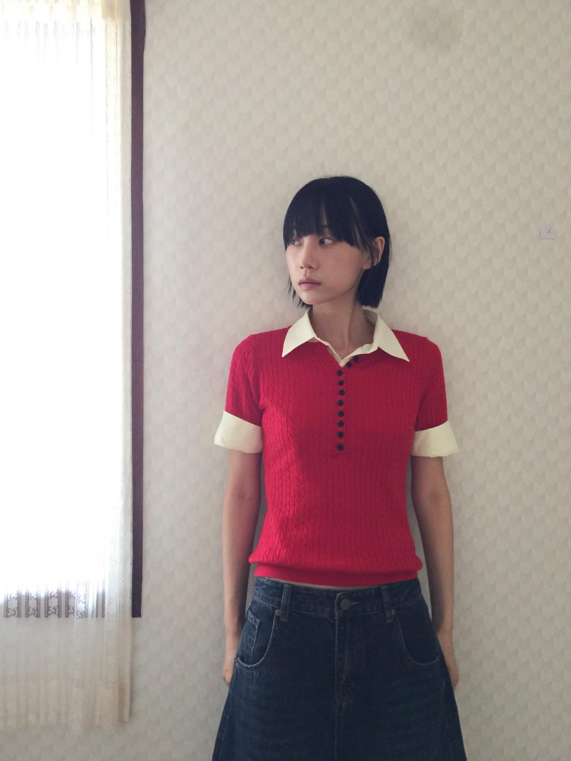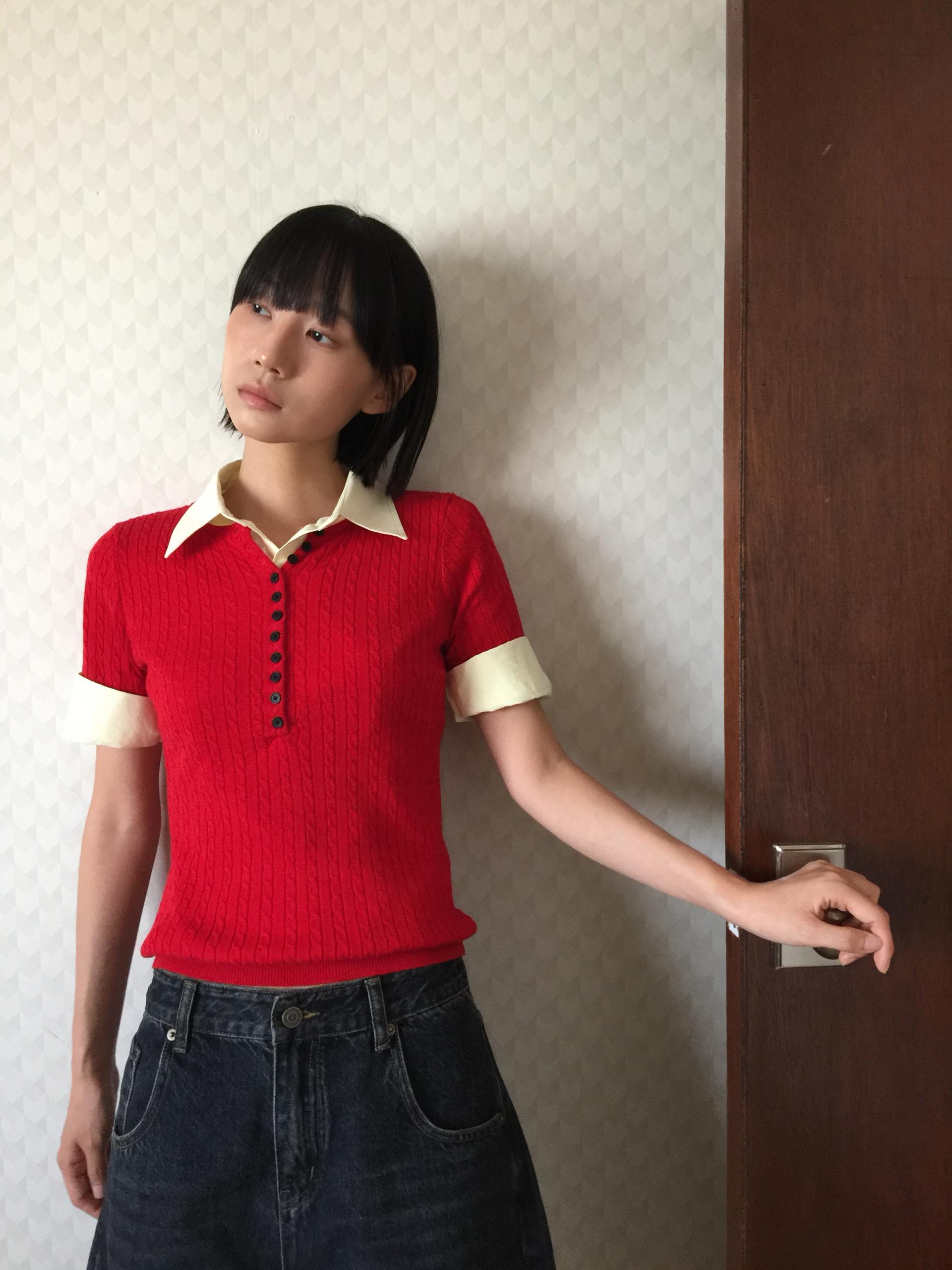 앞판 버튼 디테일이 돋보이는 티셔츠입니다. 신축성 좋은 소재로 이루어져