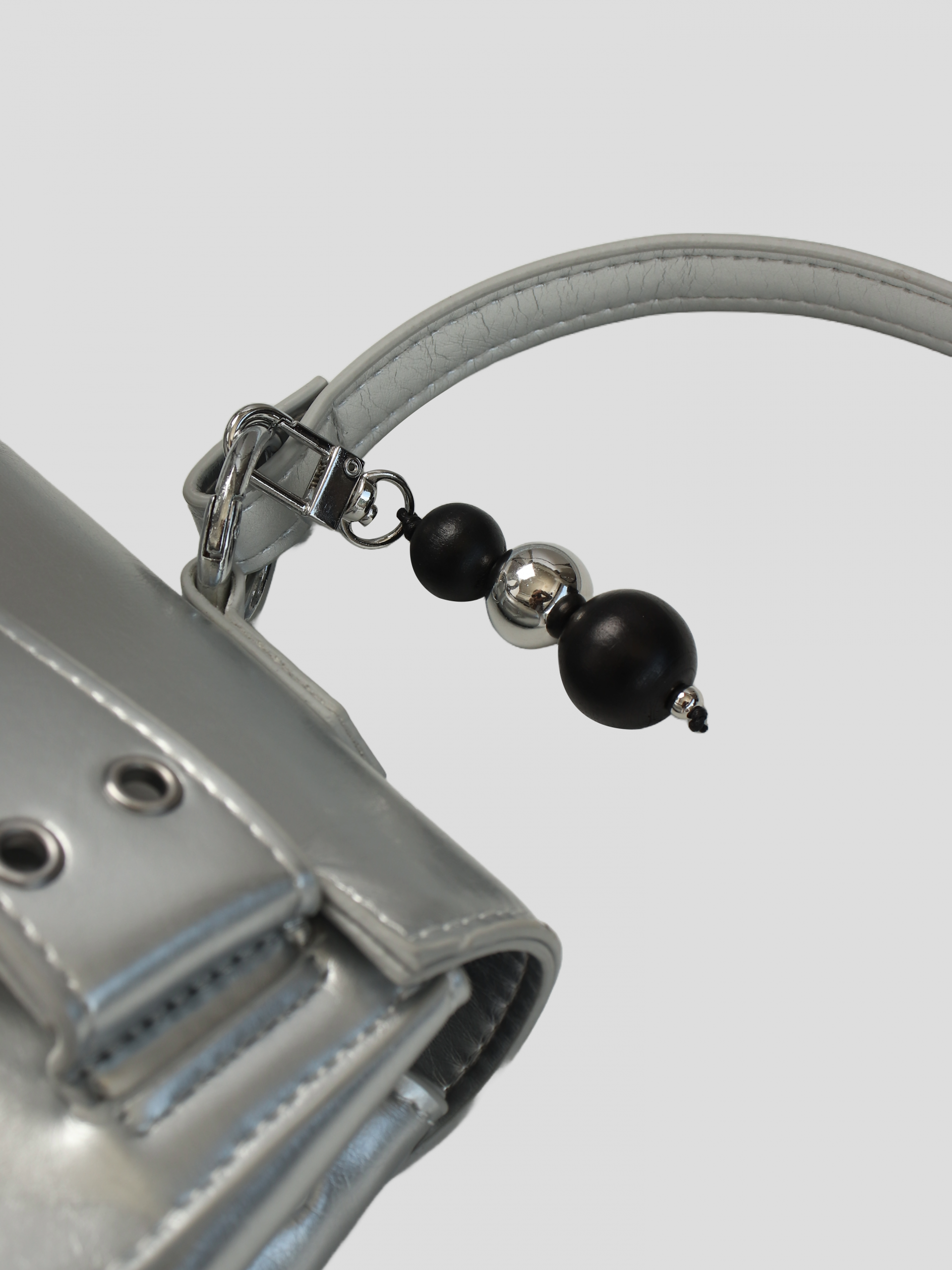 - 나무 질감의 단단한 아이보리, 검정색 질감의 비즈와 중간에 실버볼을 넣어 포인트를 준