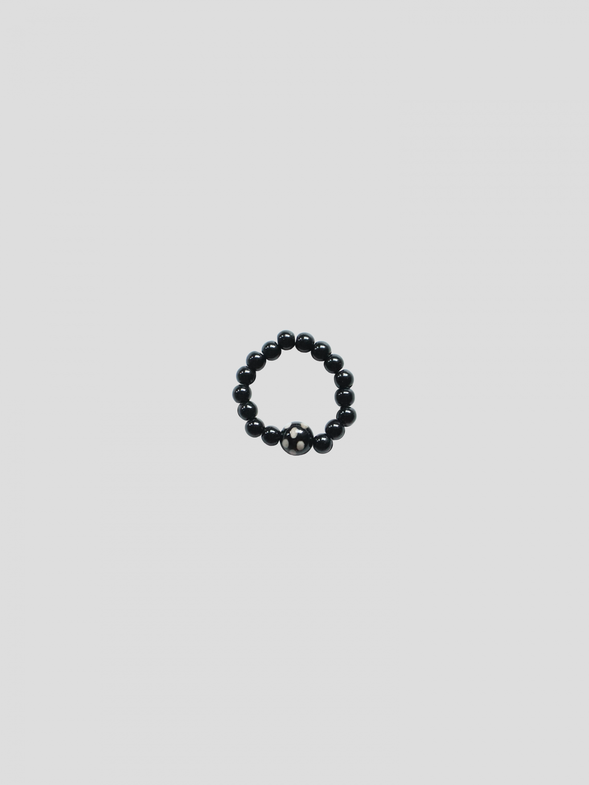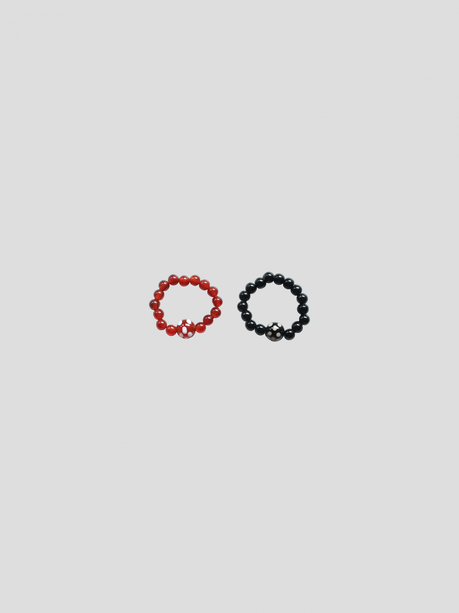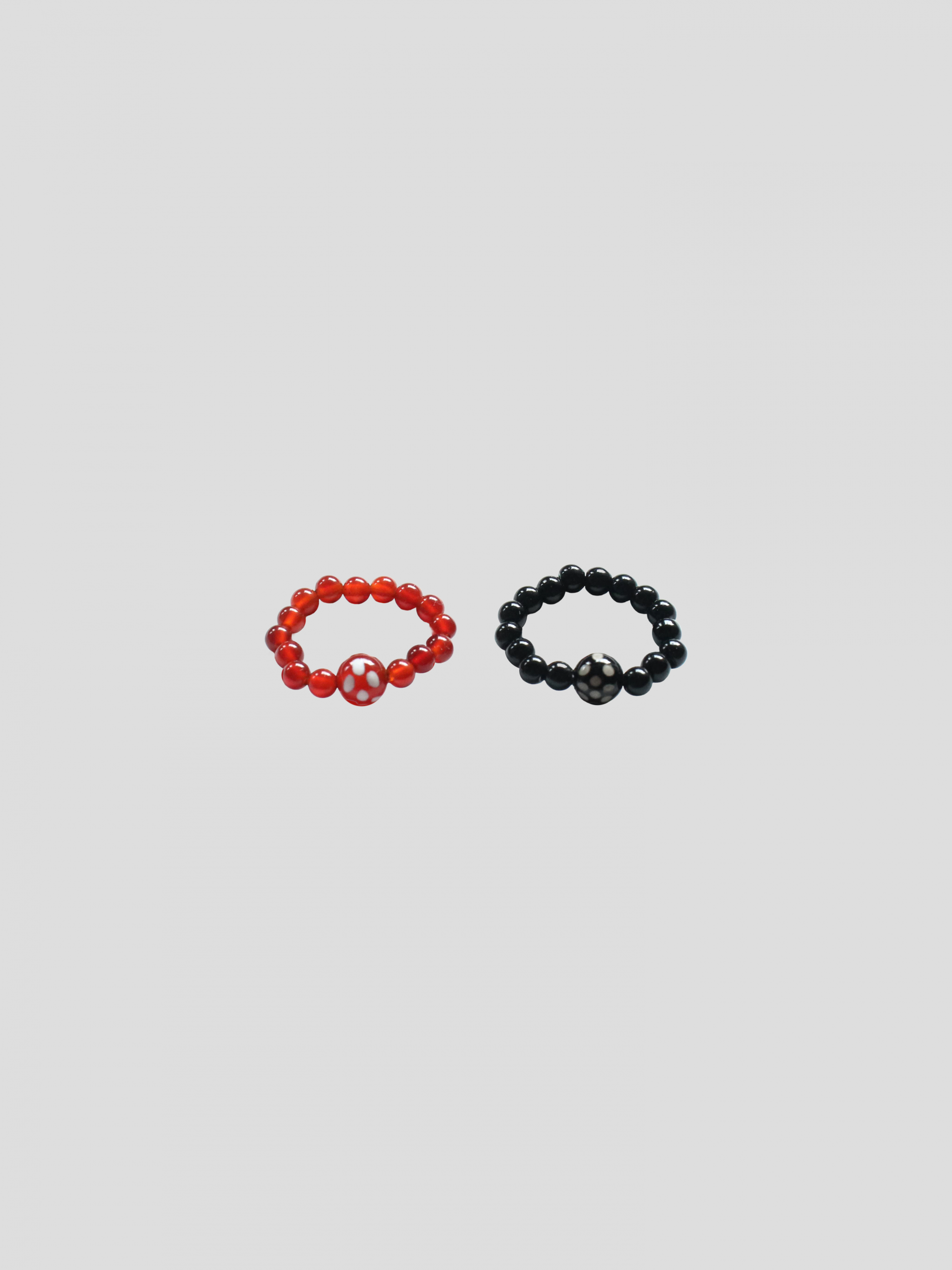 - 레드, 블랙 비즈와 가운데 포인트로 도트 무늬가 들어간 사이즈가 다른 비즈로 제작된 비즈 반지