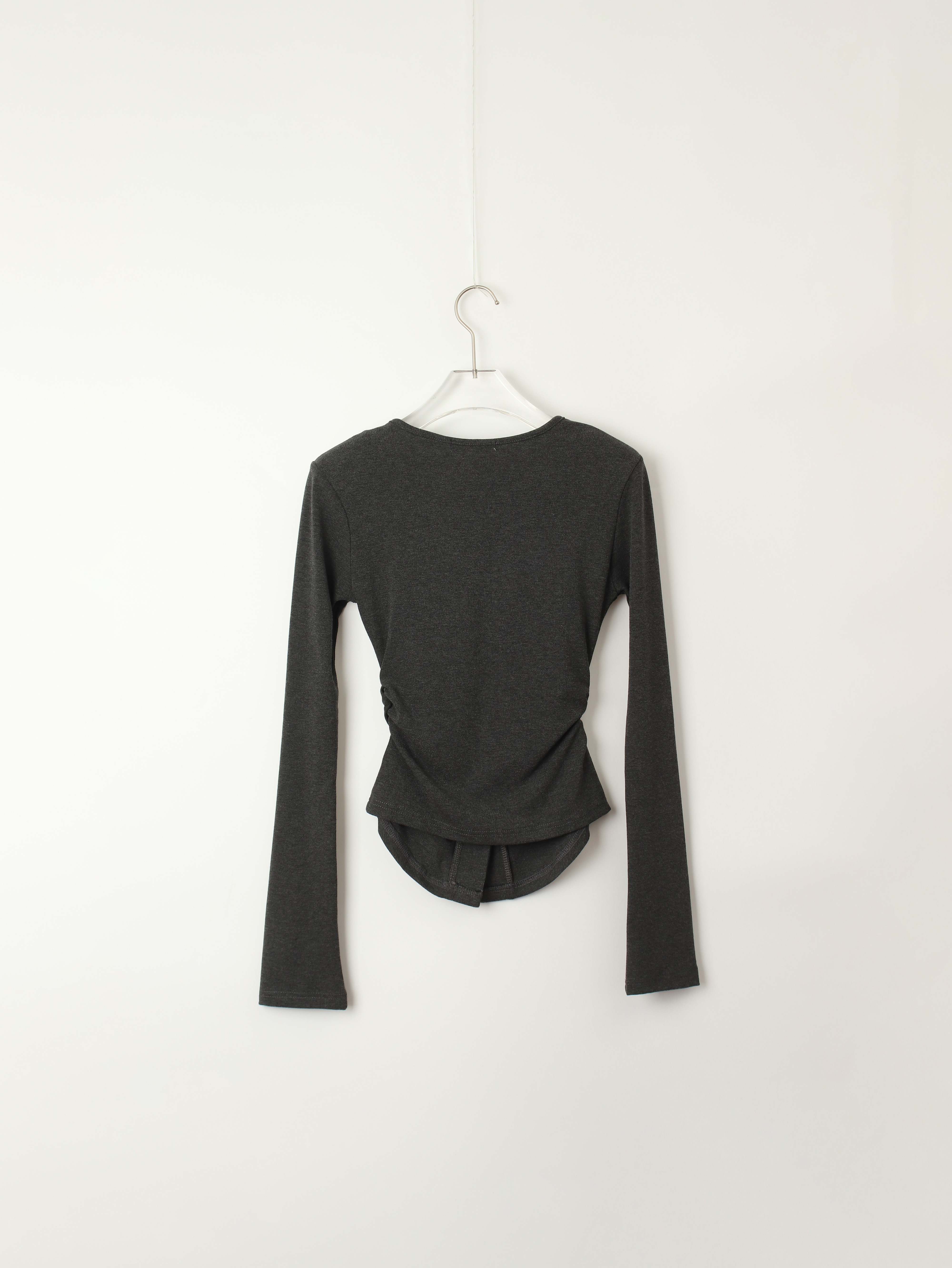 - 라인을 잡아주는 어깨 패드와 사이드 셔링 디테일