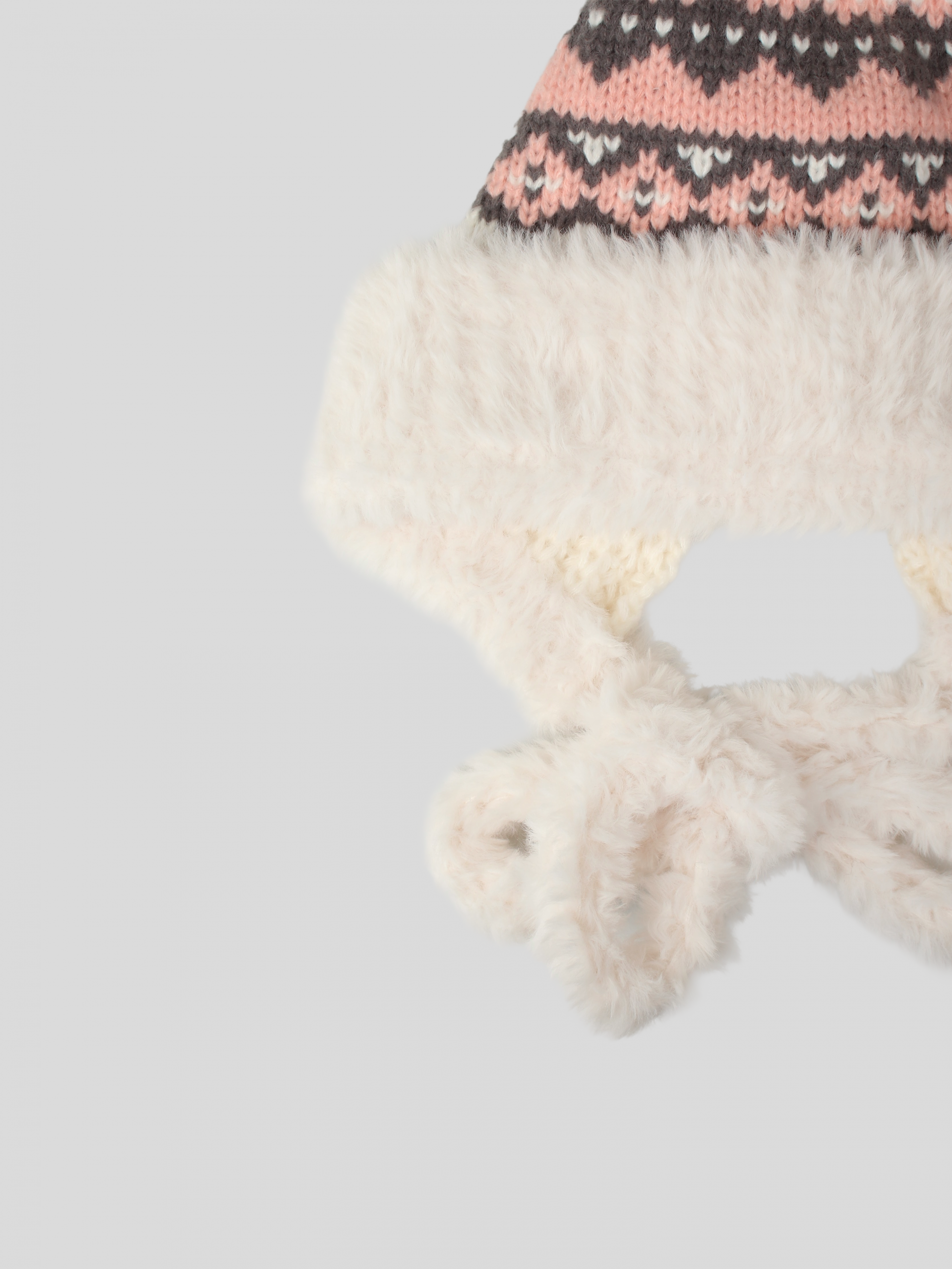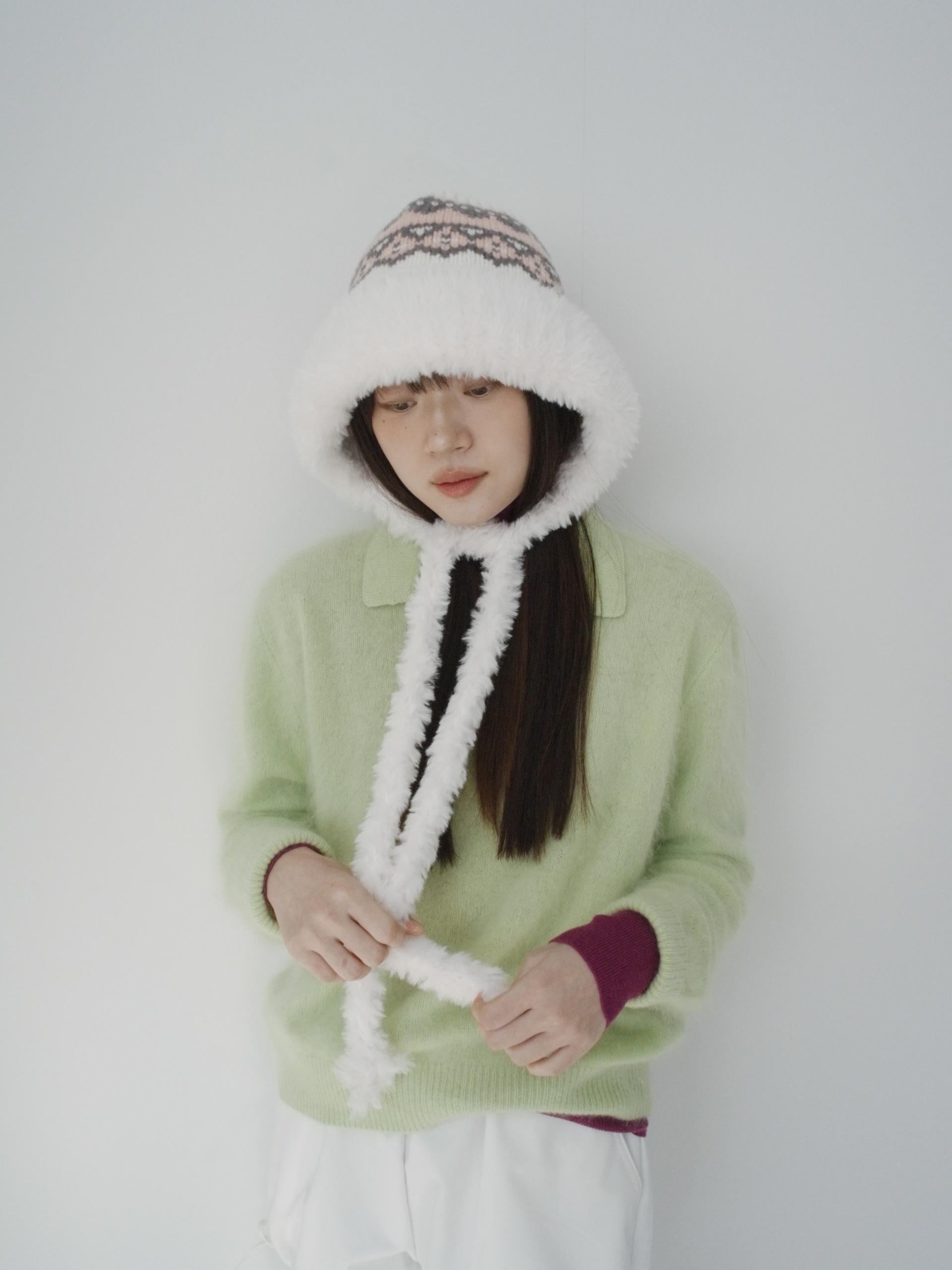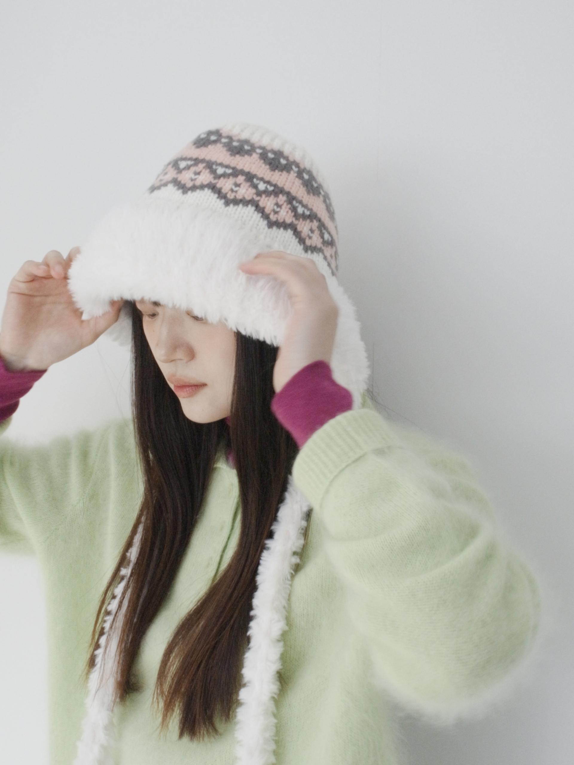- 부드러운 소재로 제작된 끈과 이마에서 머리 뒤까지 포근하게 감싸주는 퍼 재질의 테두리로 겨울에 착용하기 좋은 헤드웨어