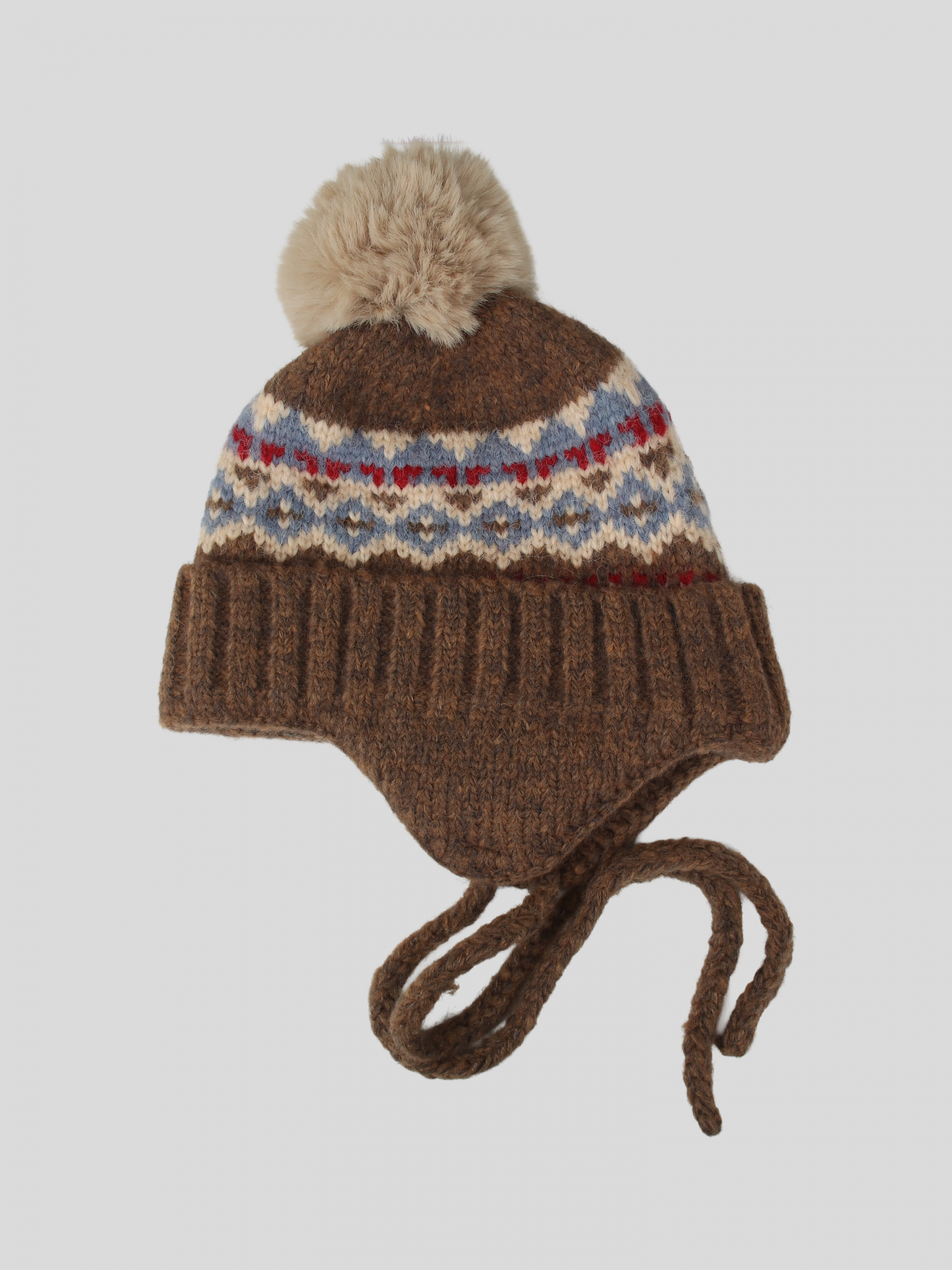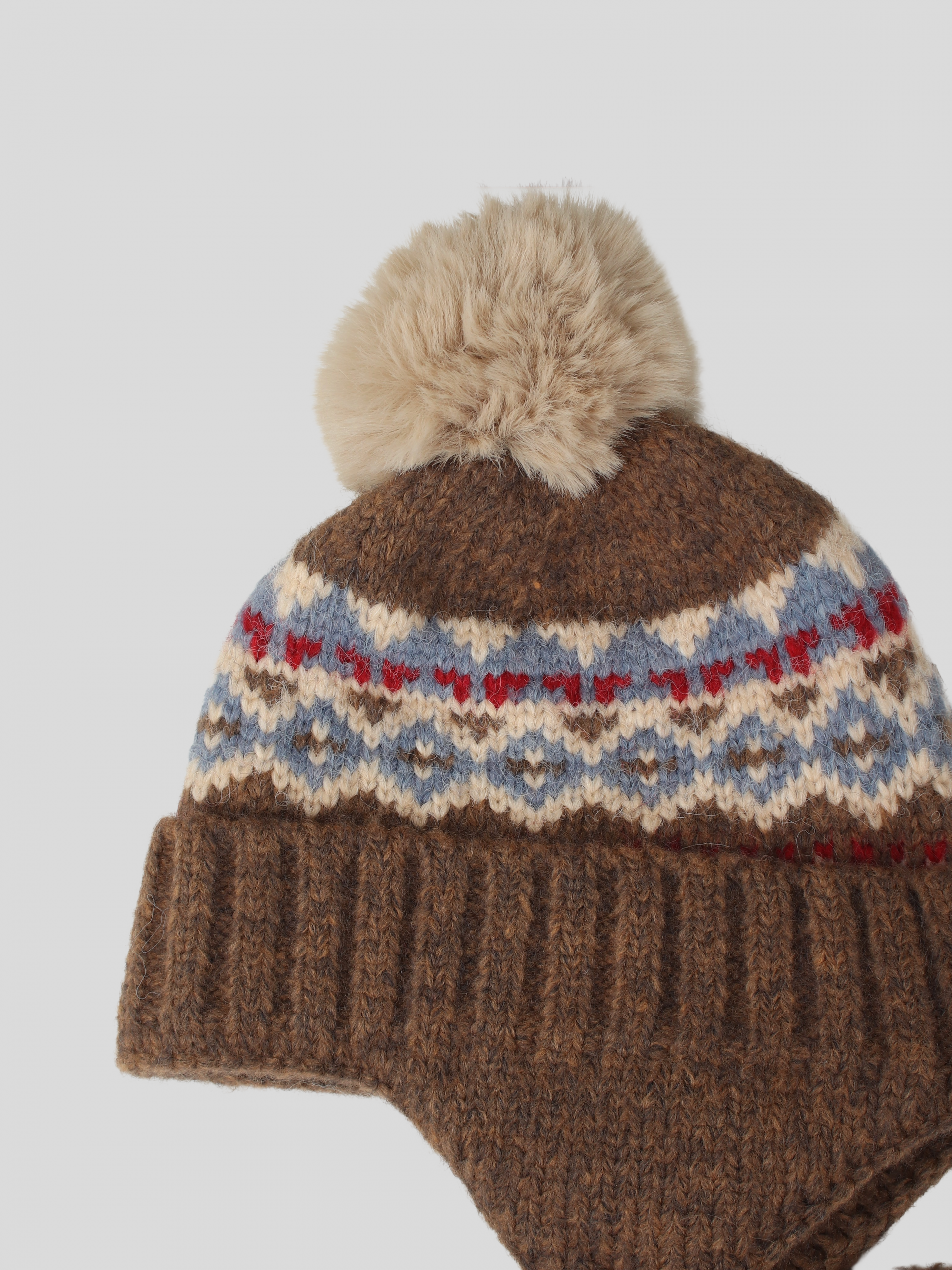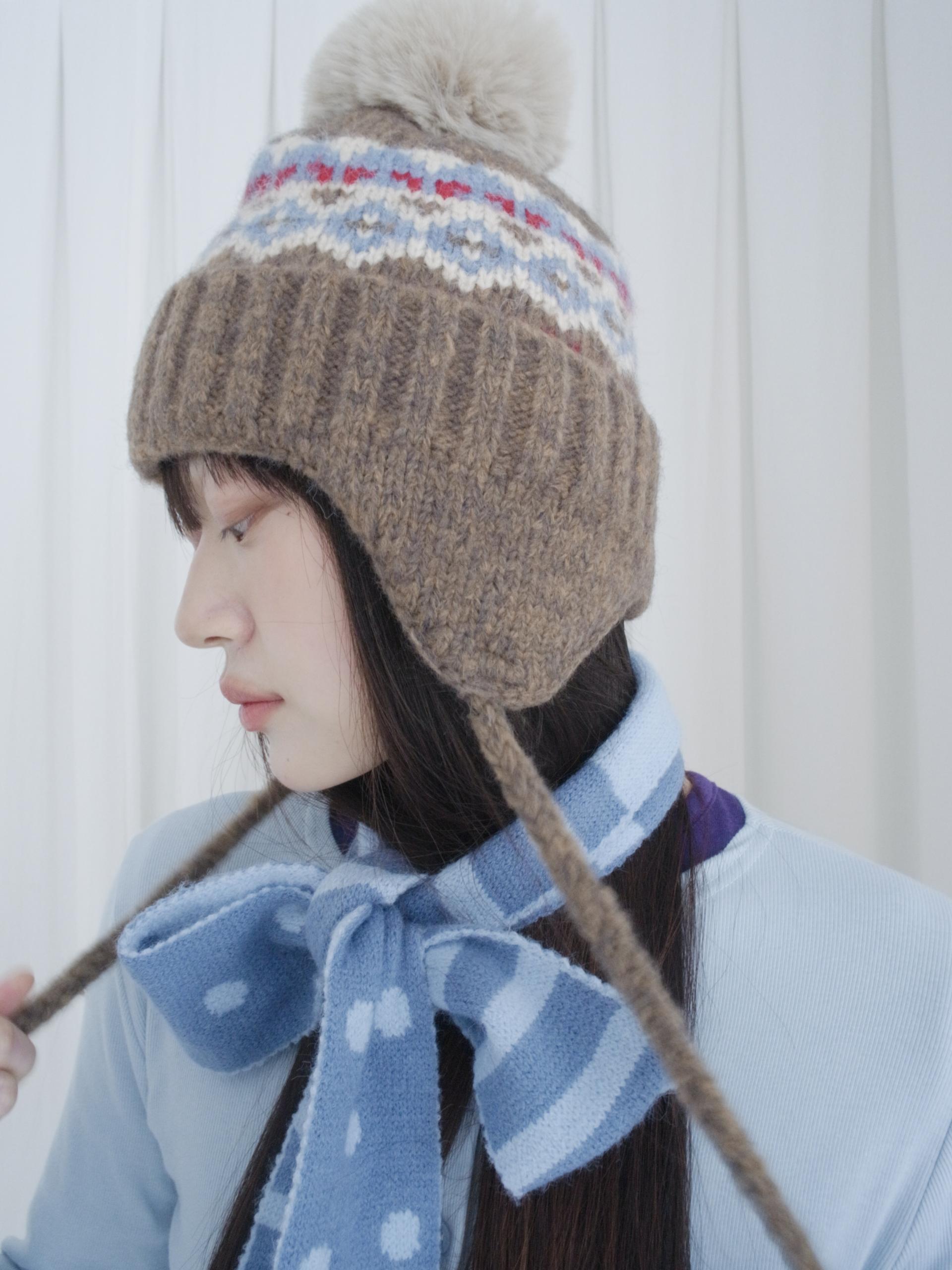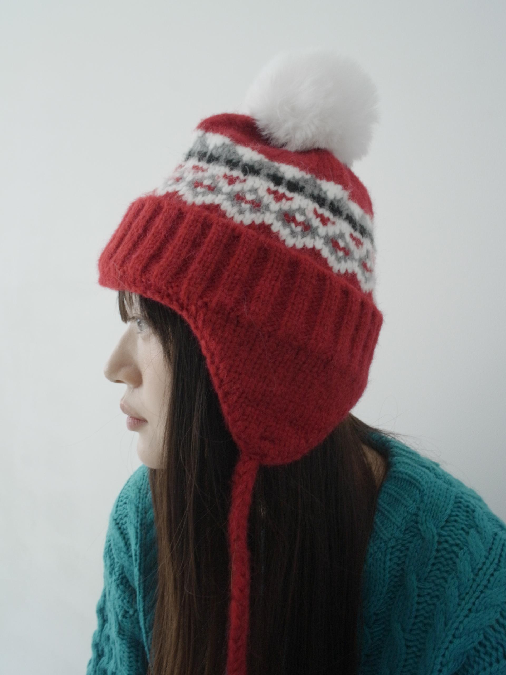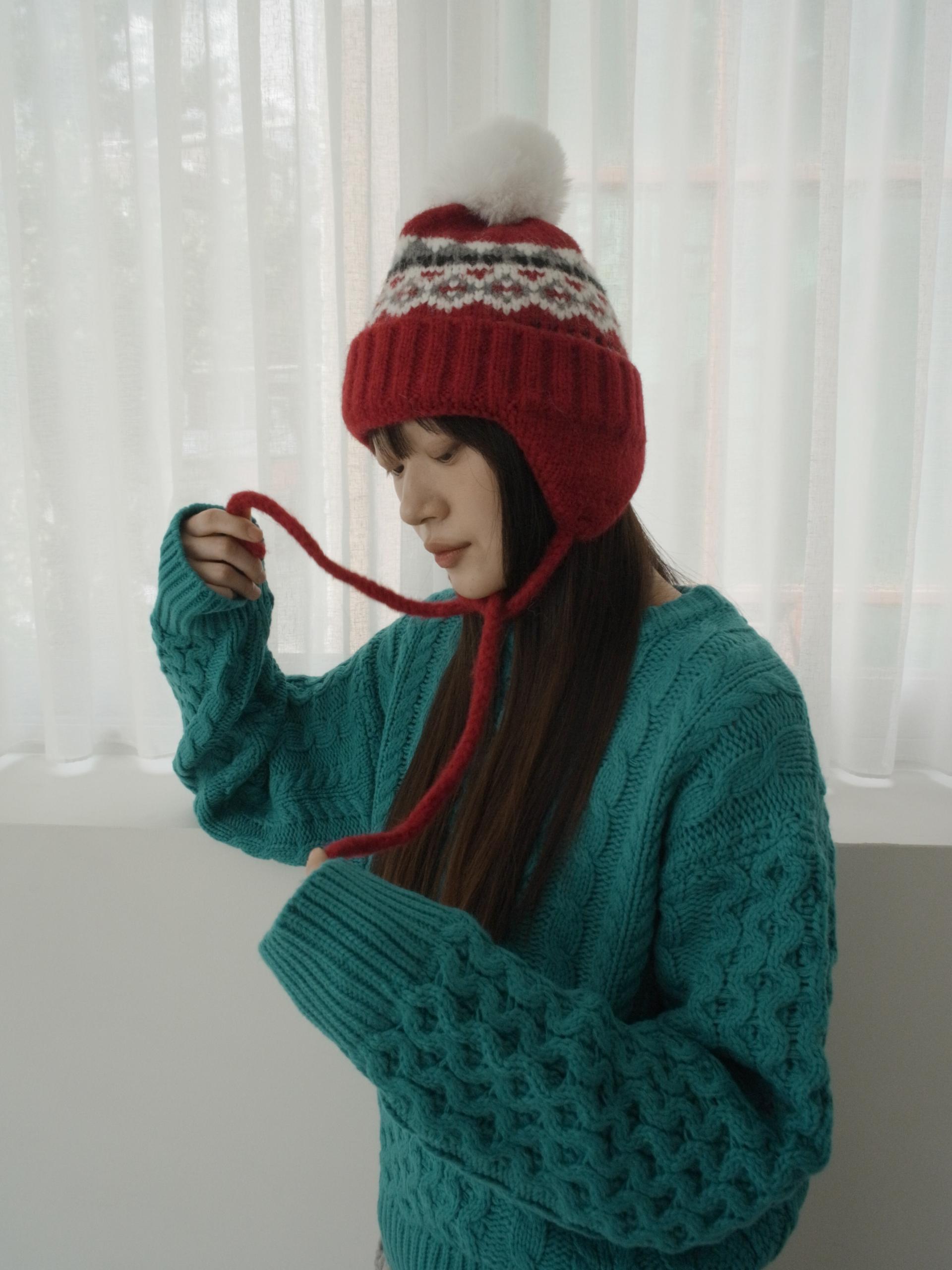 - 귀를 따듯하게 감싸주면서 머리 전체를 부드럽게 담아내주는 털모자, 맨 위의 털방울이 포인트가 되는 디자인으로