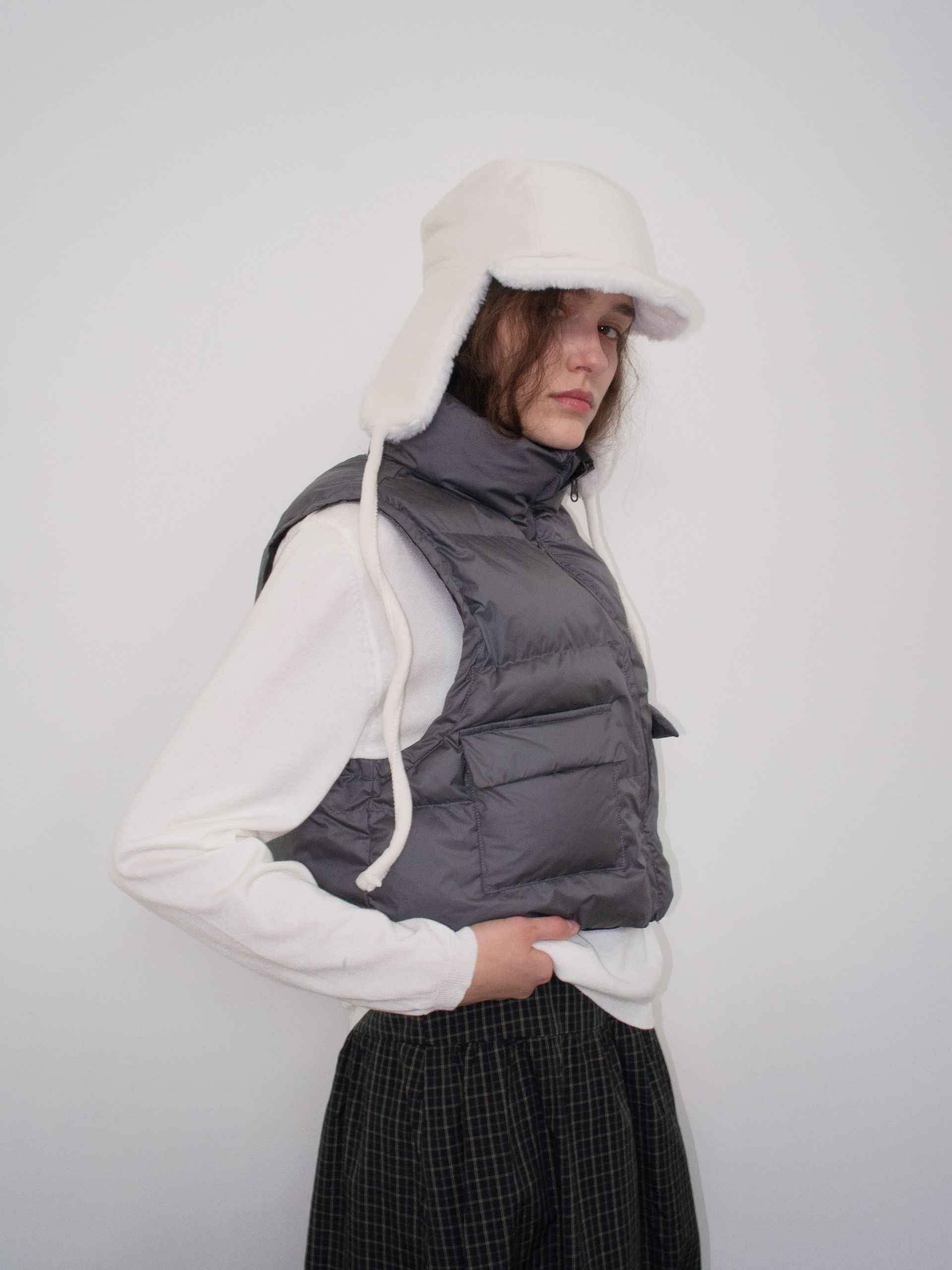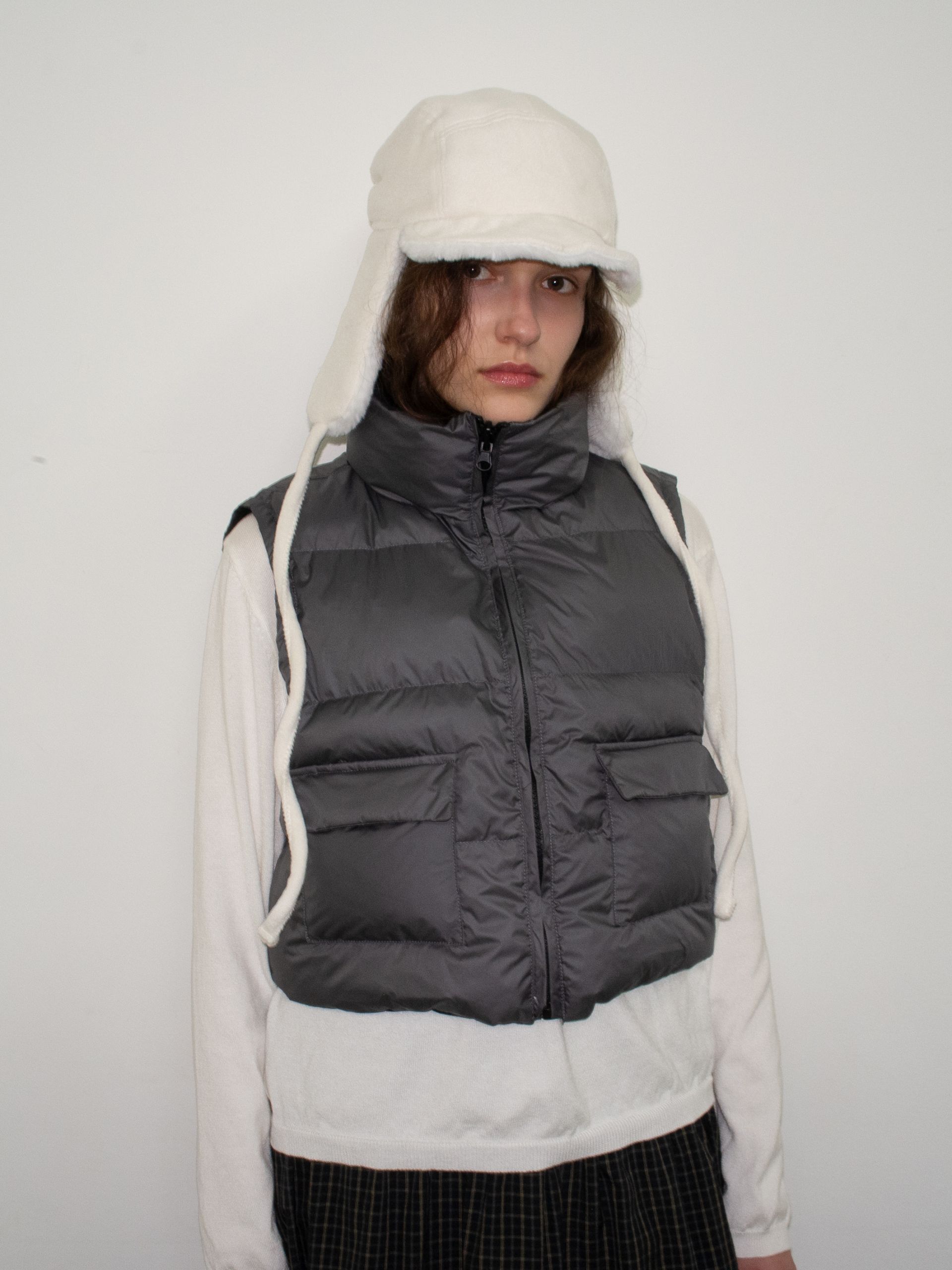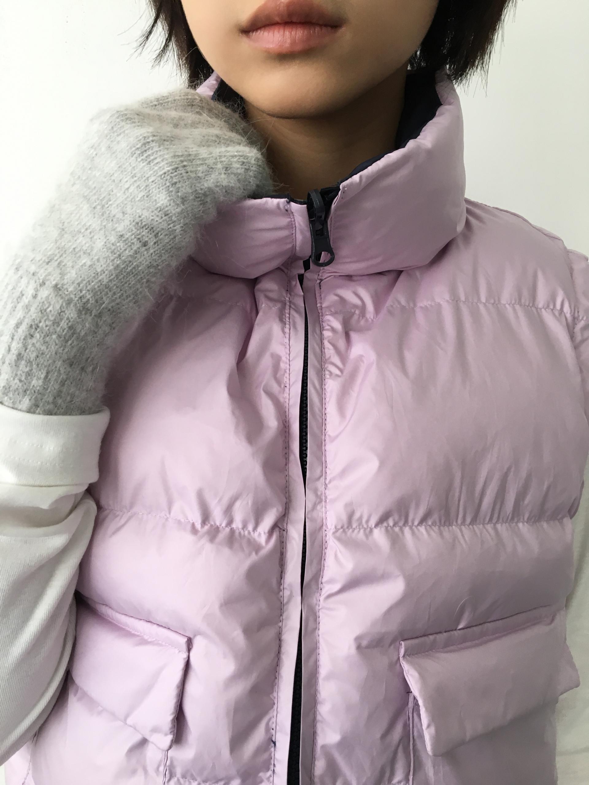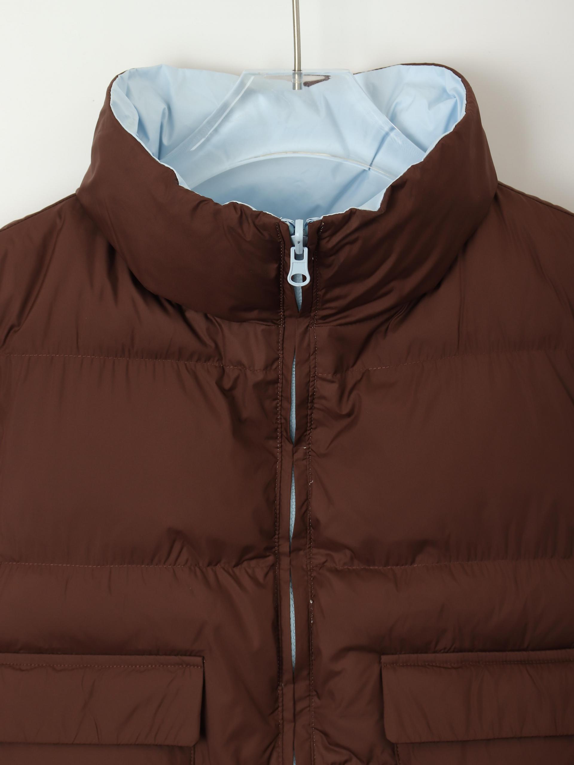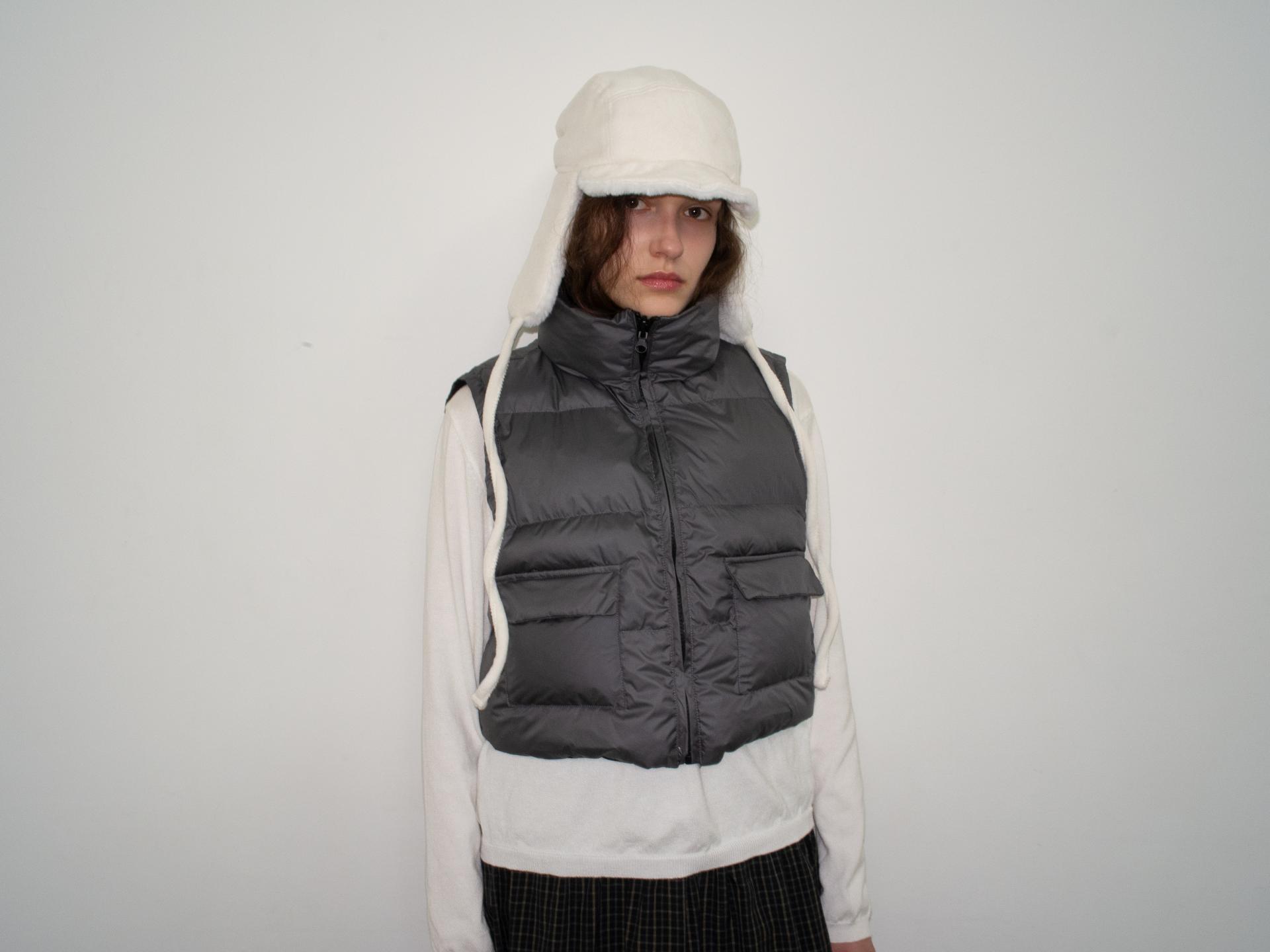 가볍고 따뜻한 데일리 패딩 베스트로, 겉감과 안감이 서로 다른 컬러로 구성된 배색 디테일이 포인트입니다.