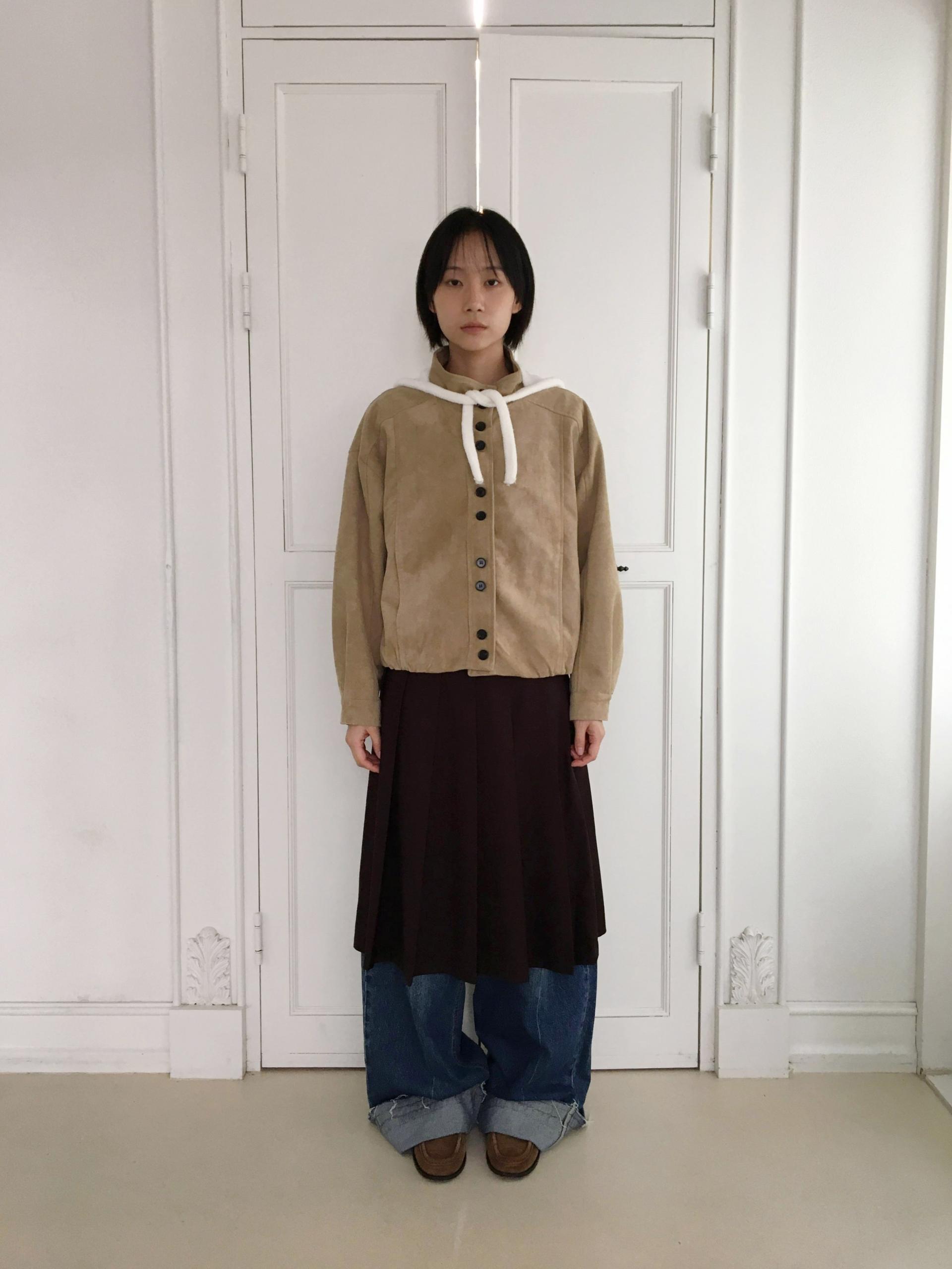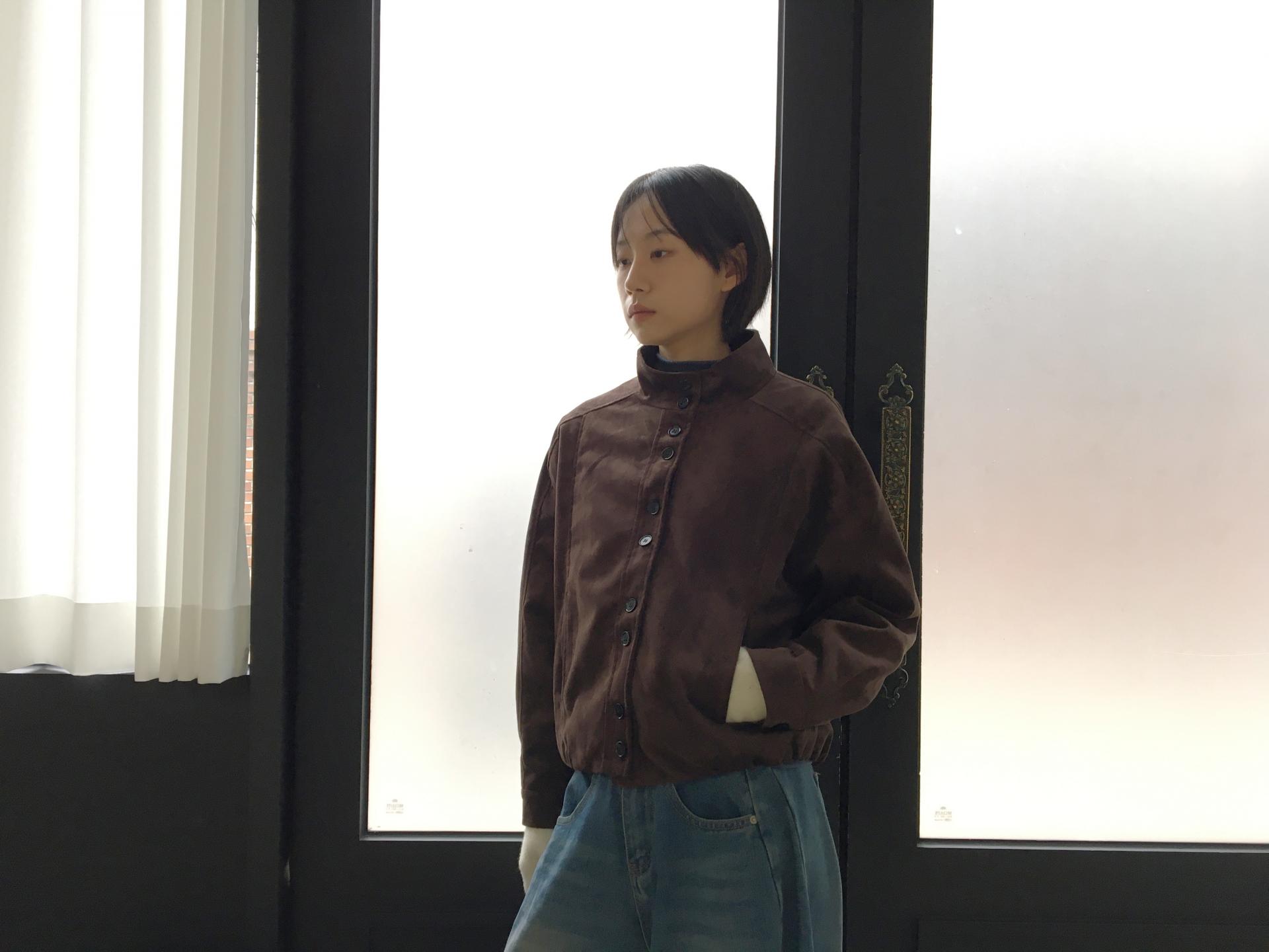 데일리한 블루종 실루엣 자켓입니다. 목을 반 정도 덮는 하이카라