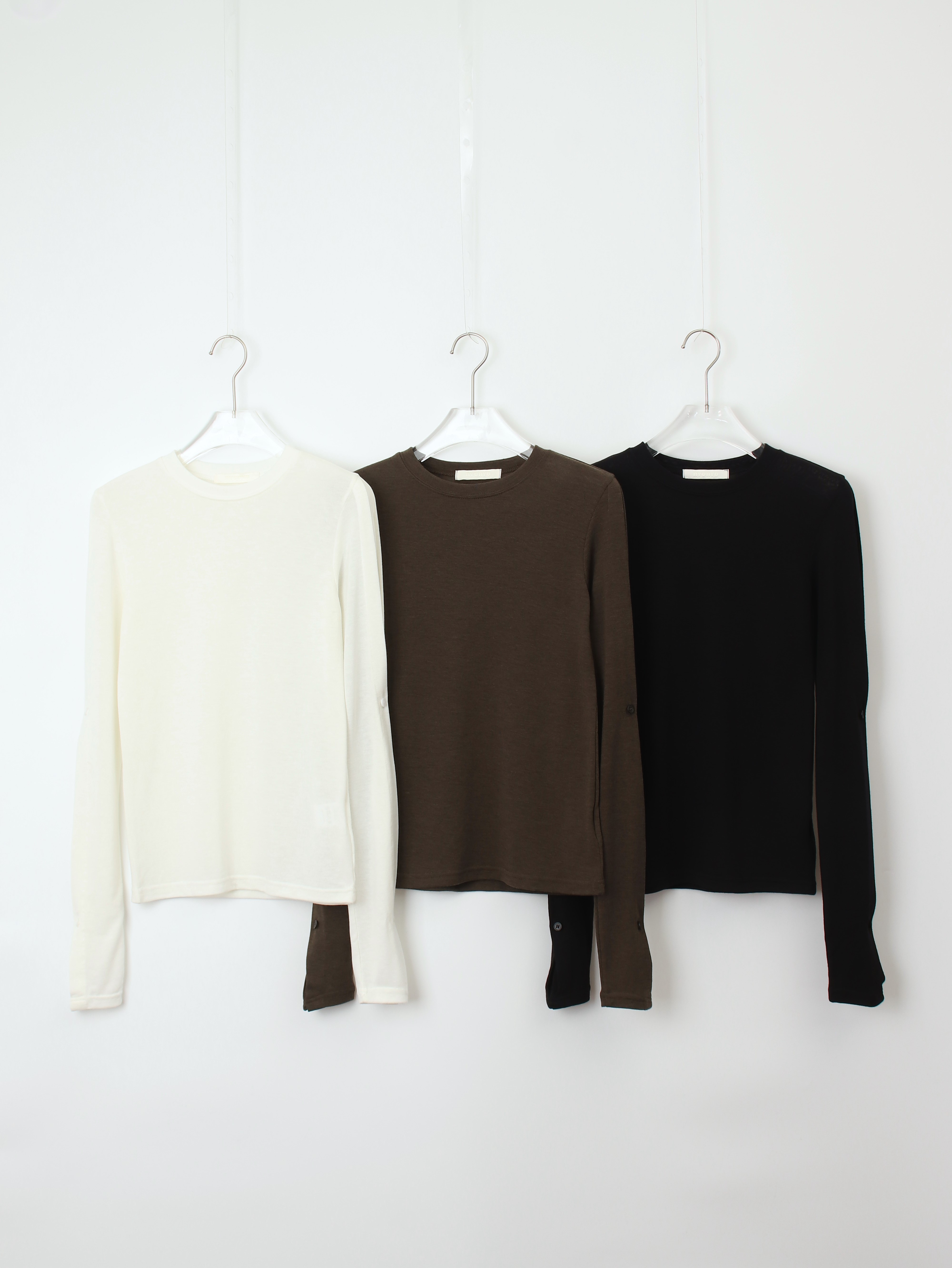 소매 사이드 버튼 디테일이 더해져 있는 롱슬리브 티셔츠 입니다.