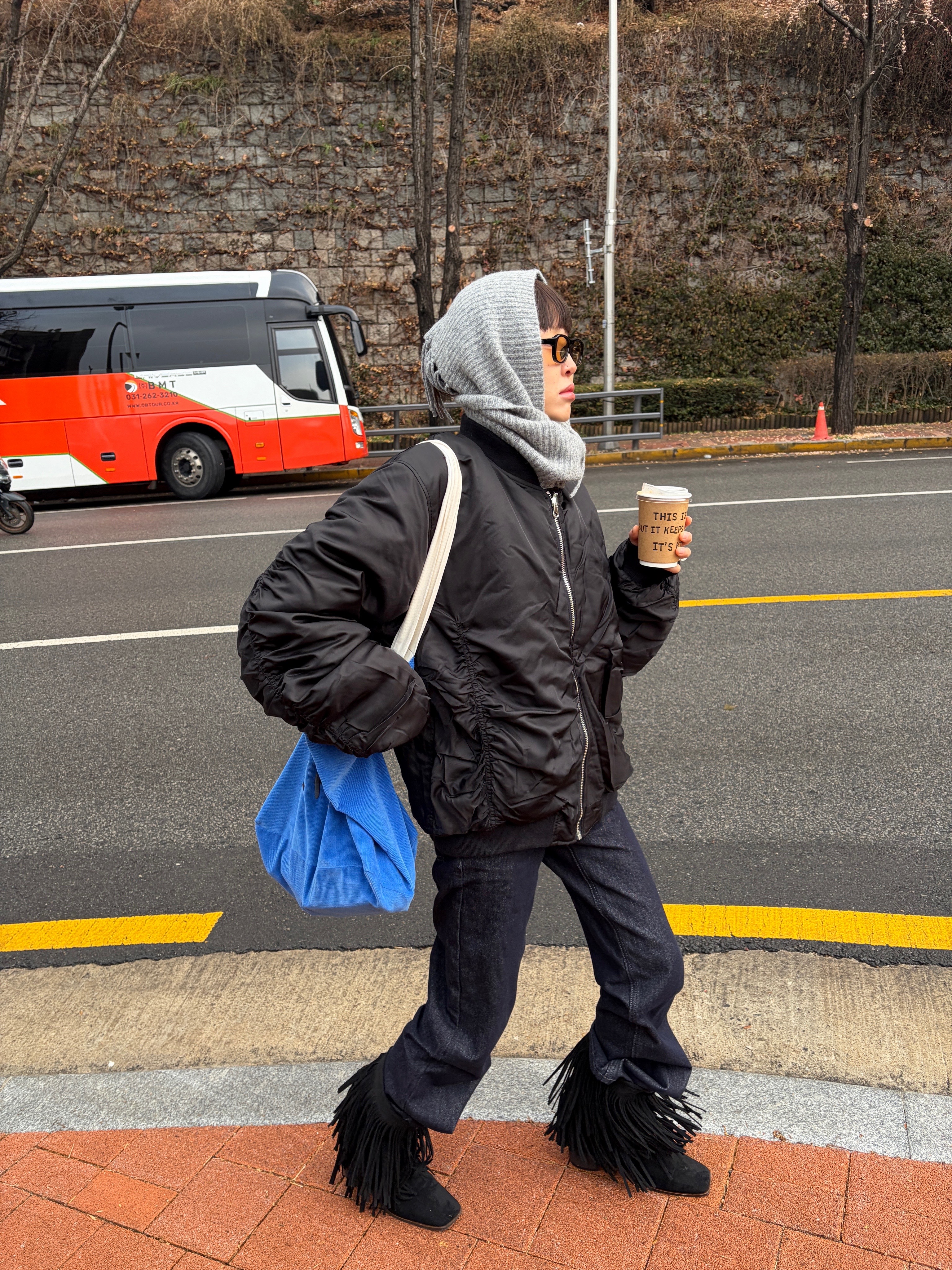 - 두툼한 충전재로 겨울에 착용하기 좋은 점퍼