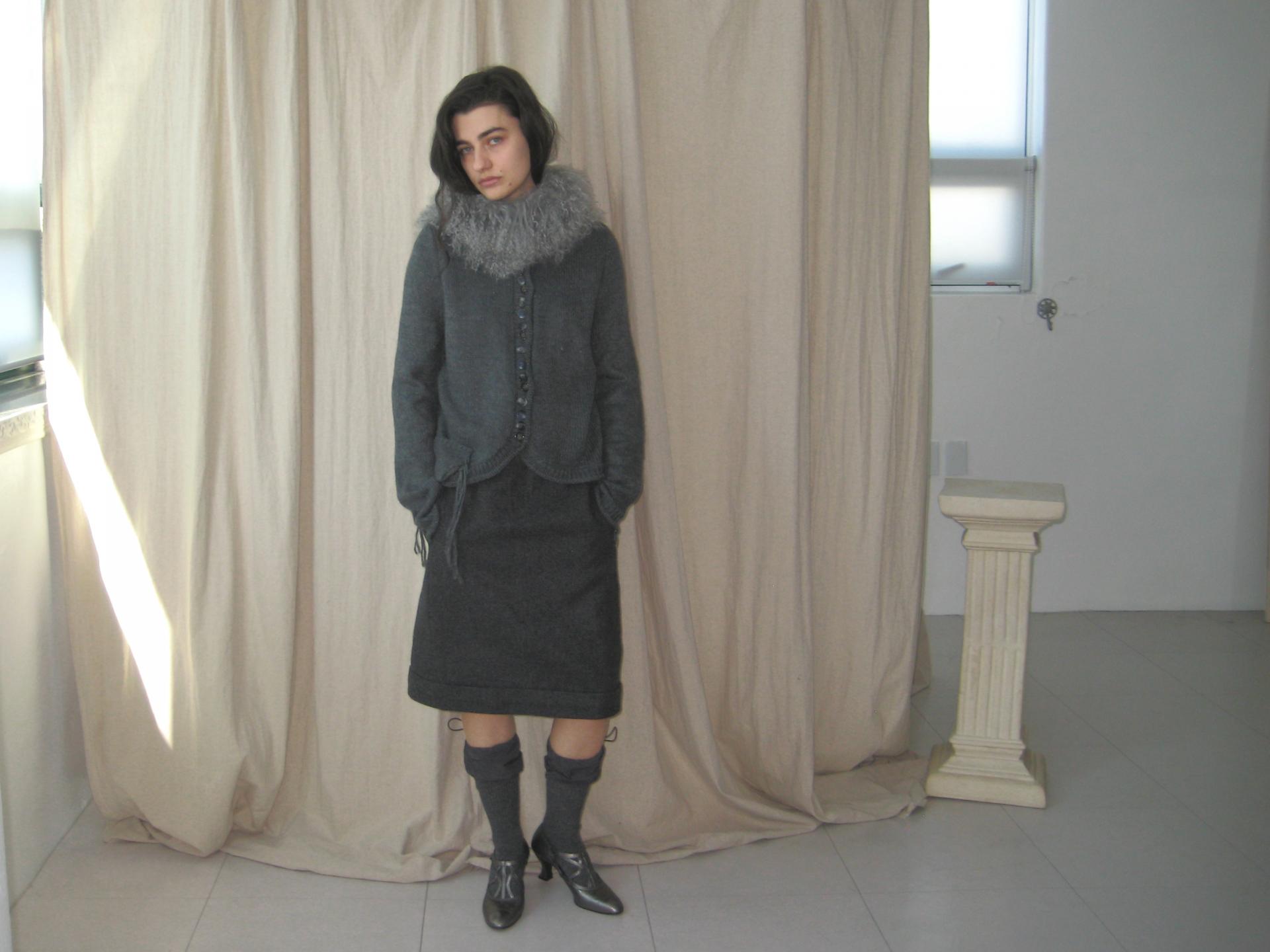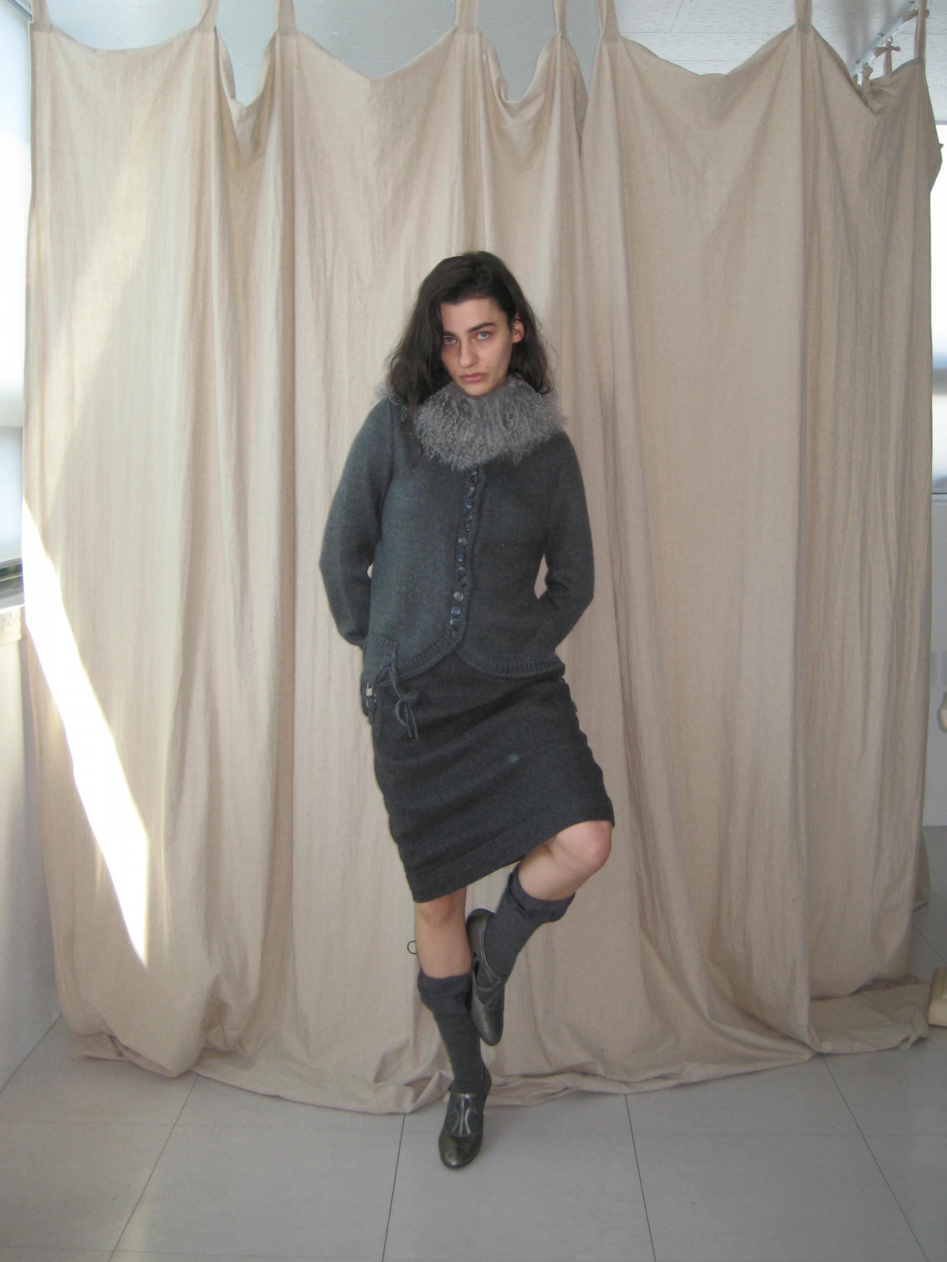 - 울 혼방 소재로 따뜻하게 착용 가능한 미니 스커트