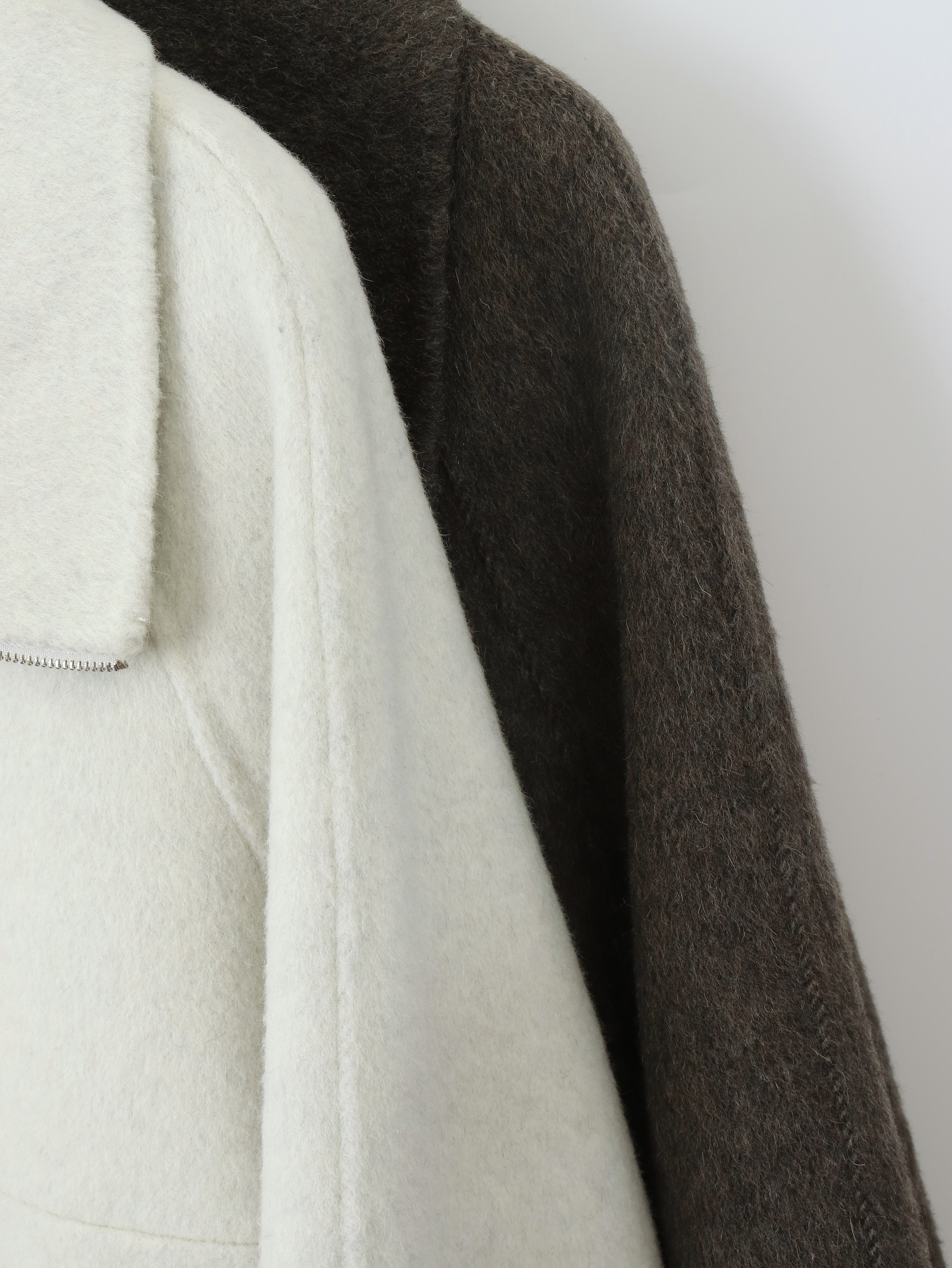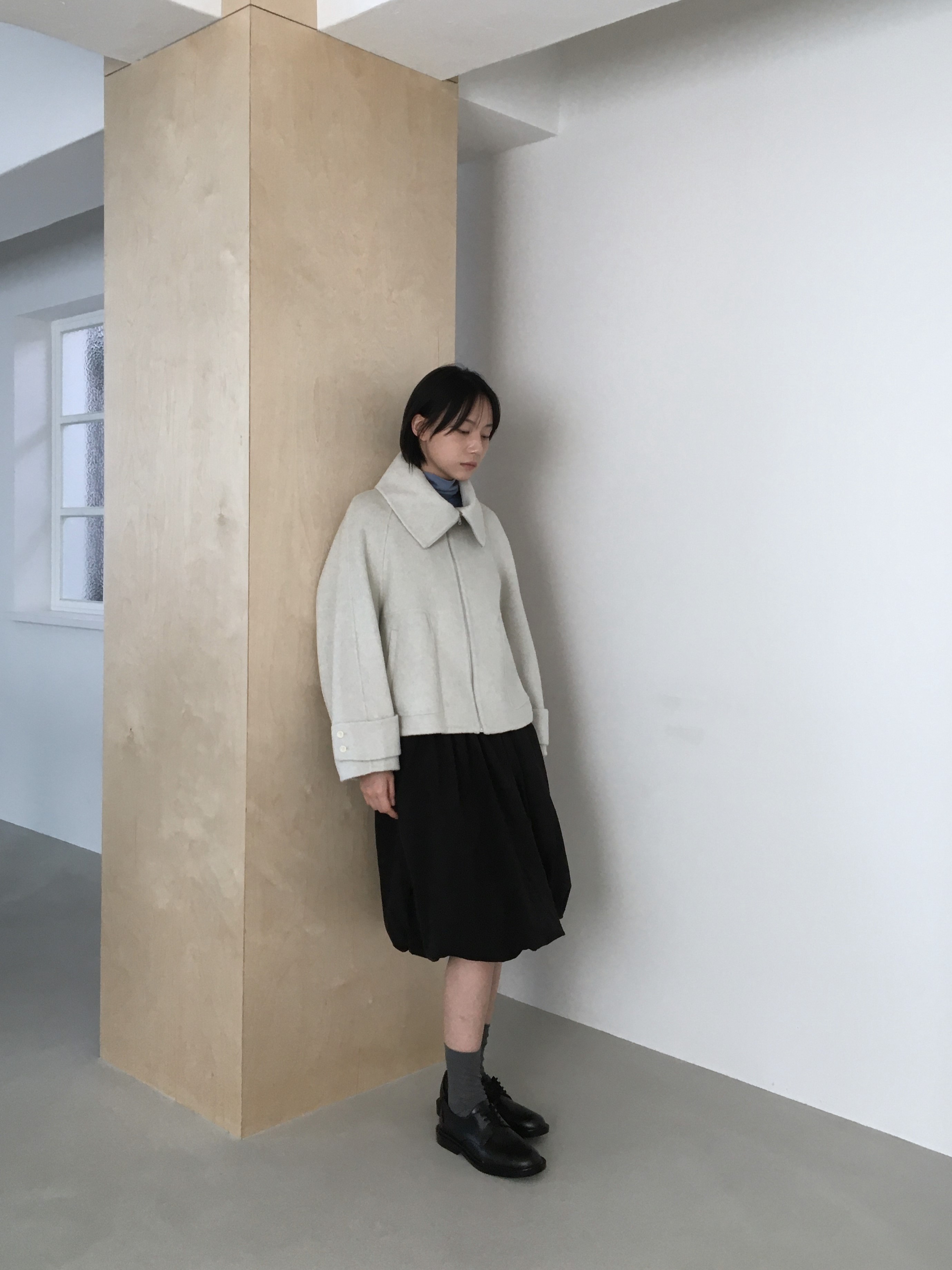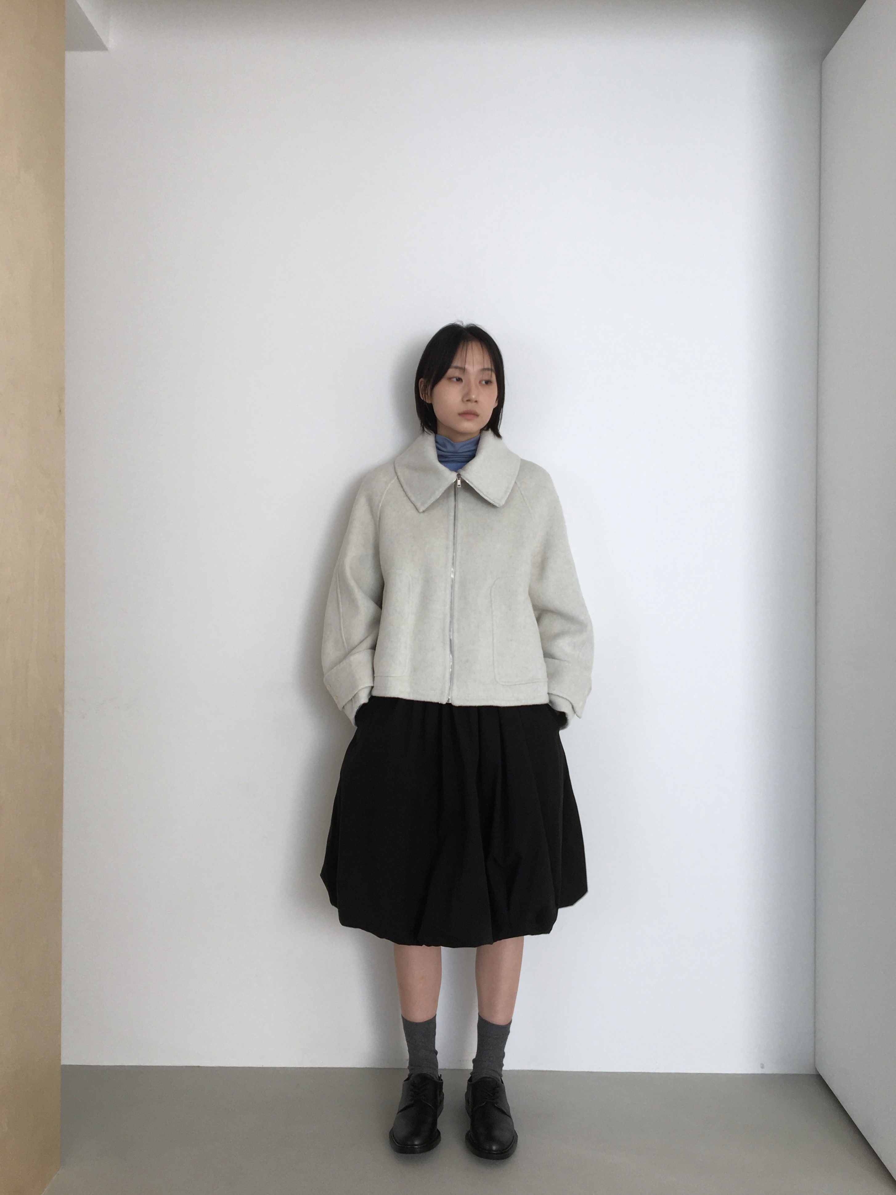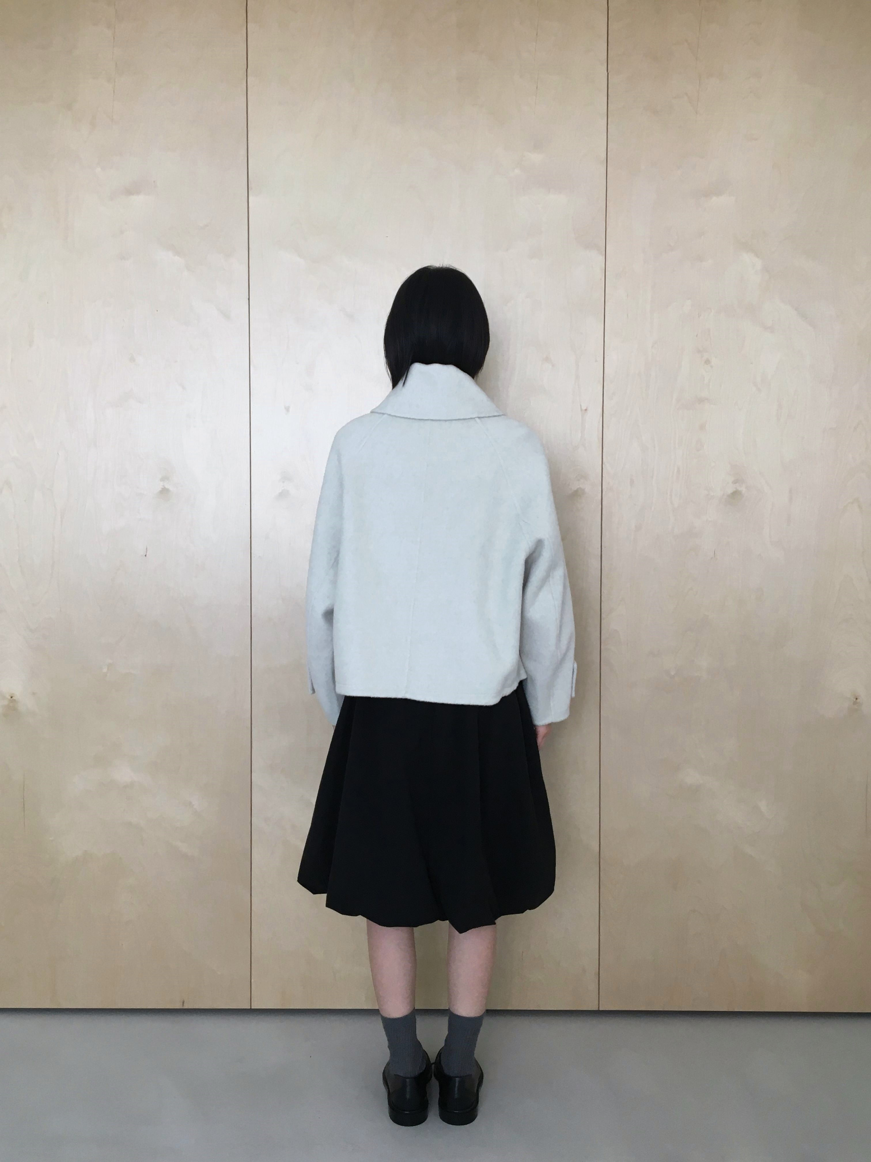 투웨이 넥카라 연출이 가능한 숏한 기장의 코트 집업 입니다.