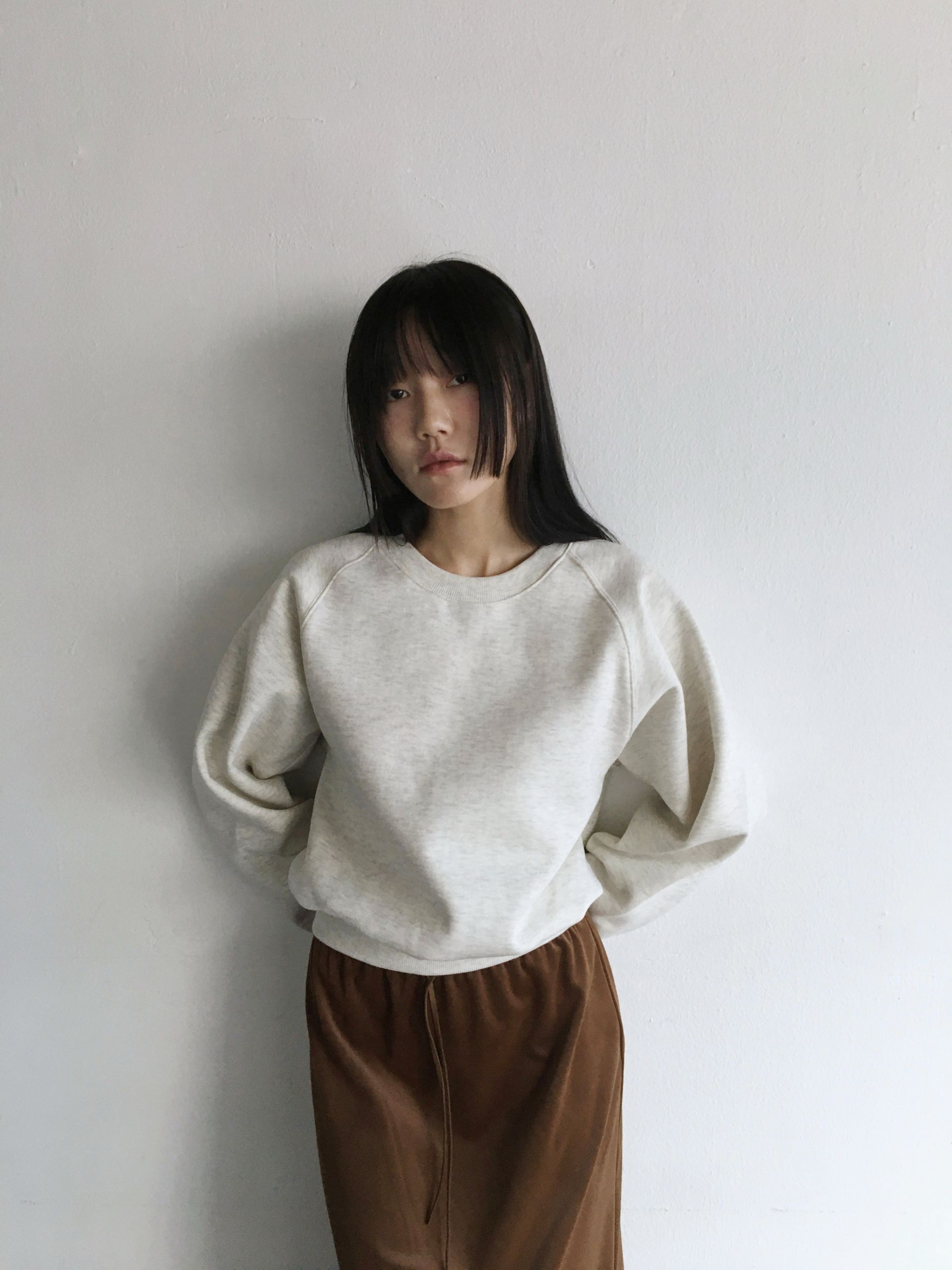부드러운 코튼 기모 소재의 라운드넥 스웨트 셔츠입니다.