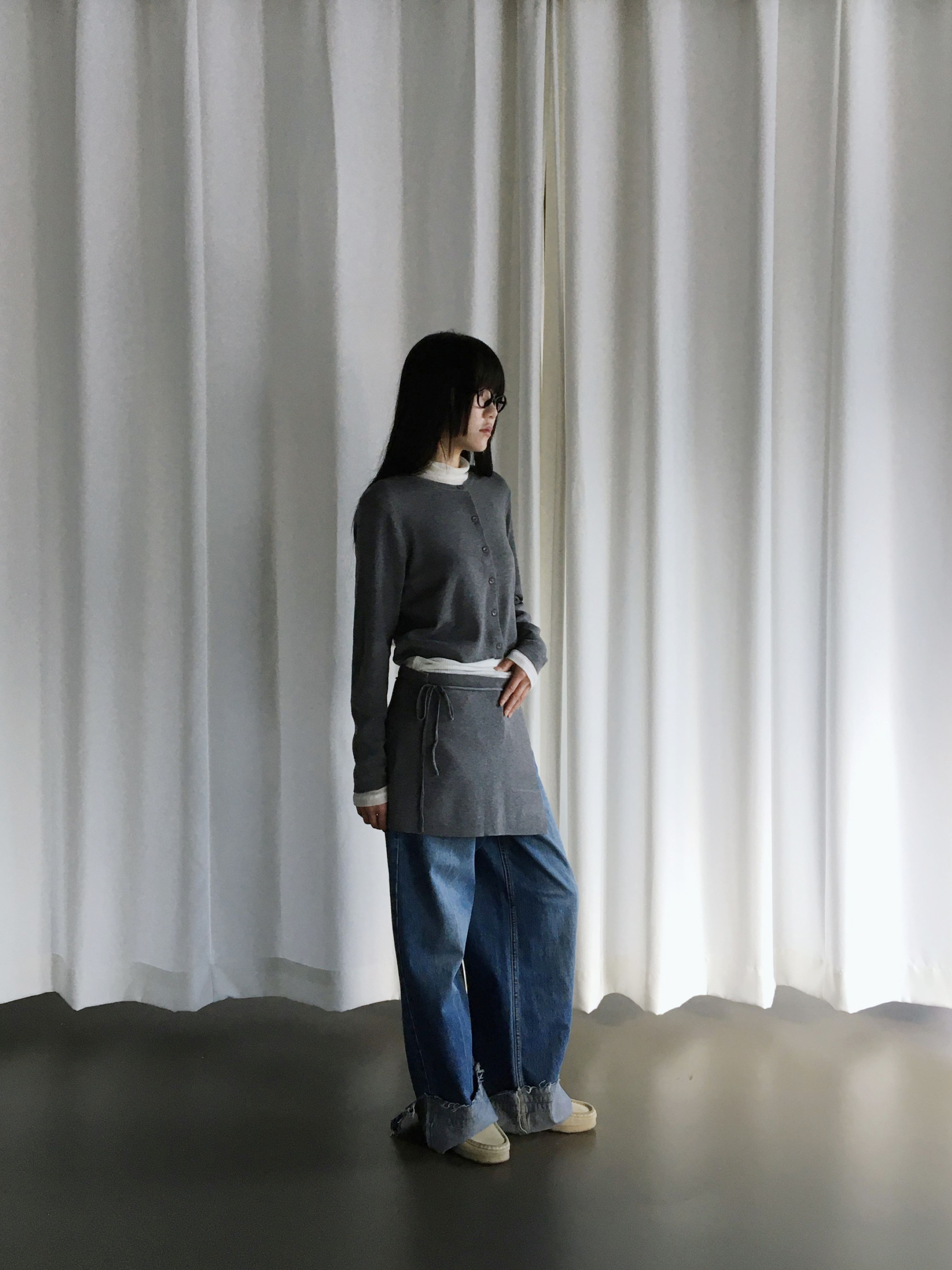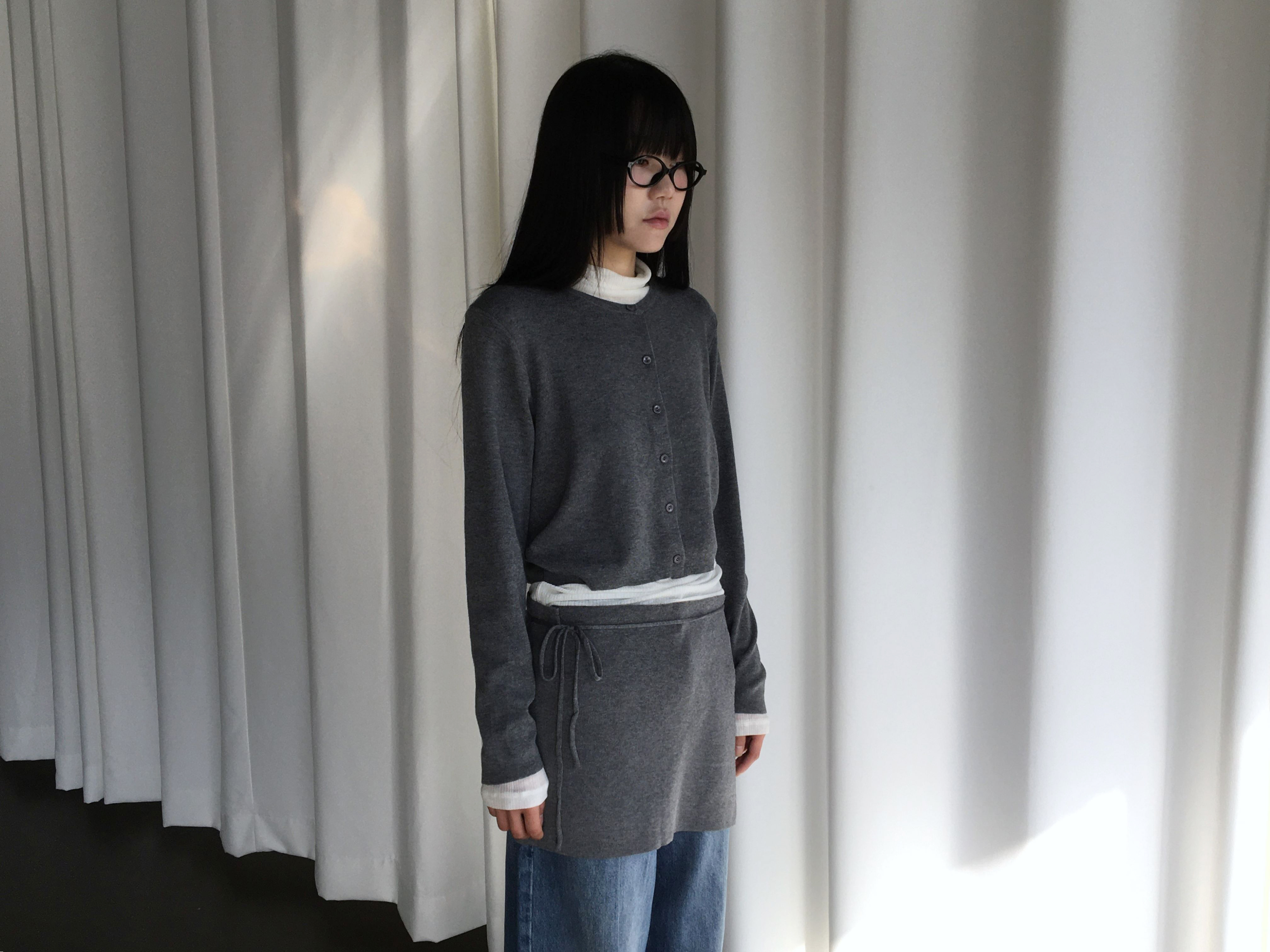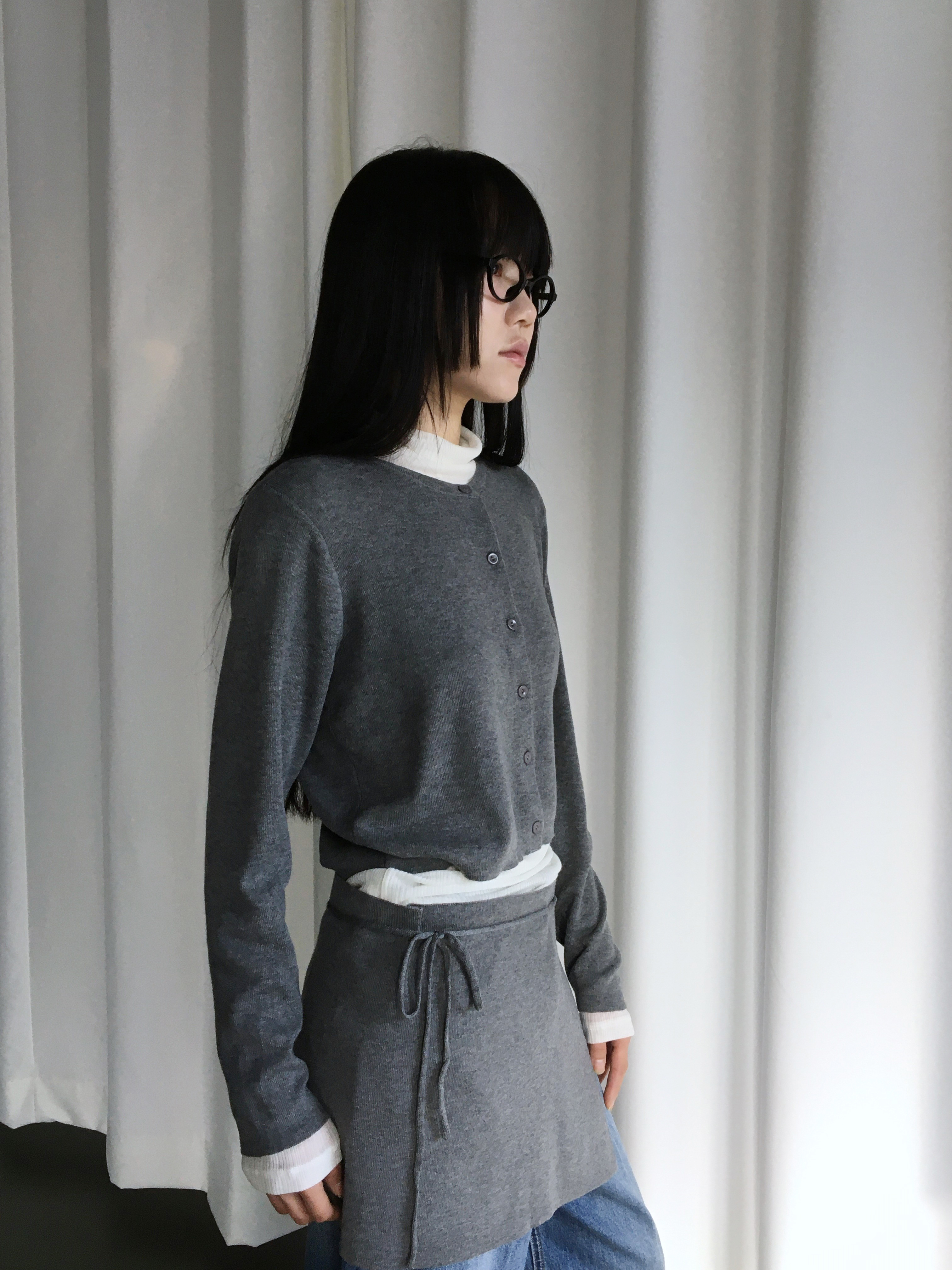 베이직한 디자인의 가디건과 랩스커트 세트 구성 아이템 입니다.
