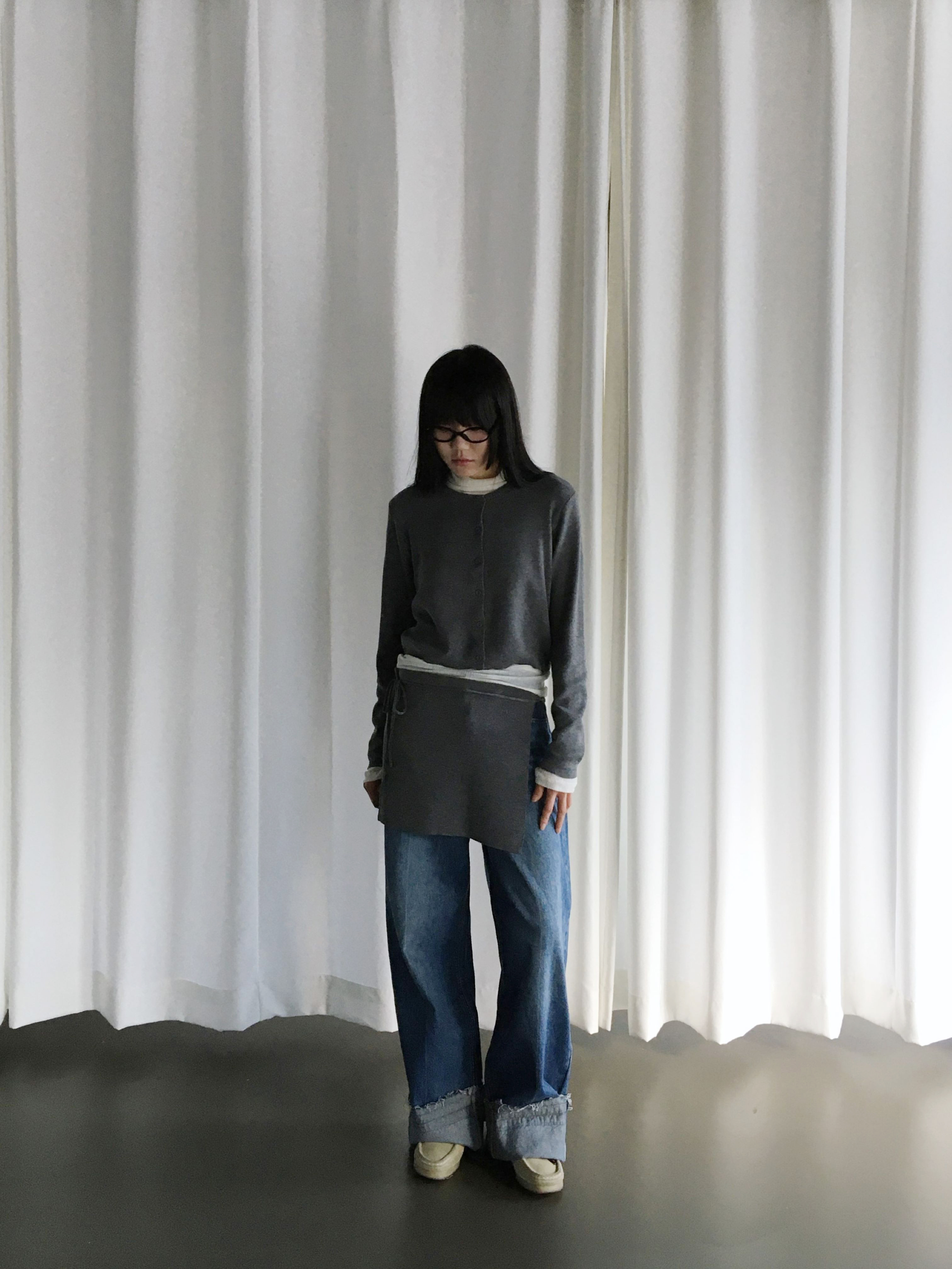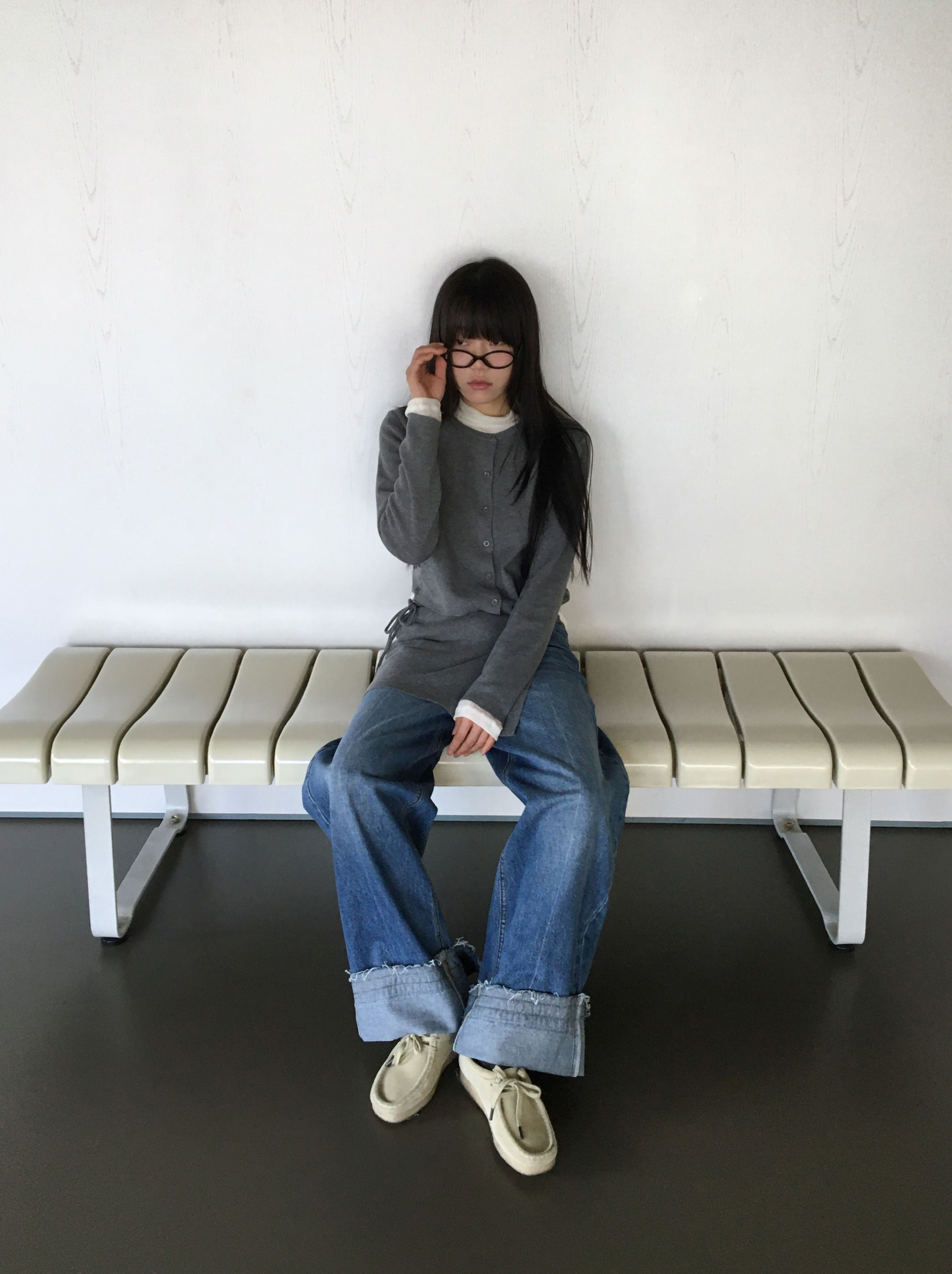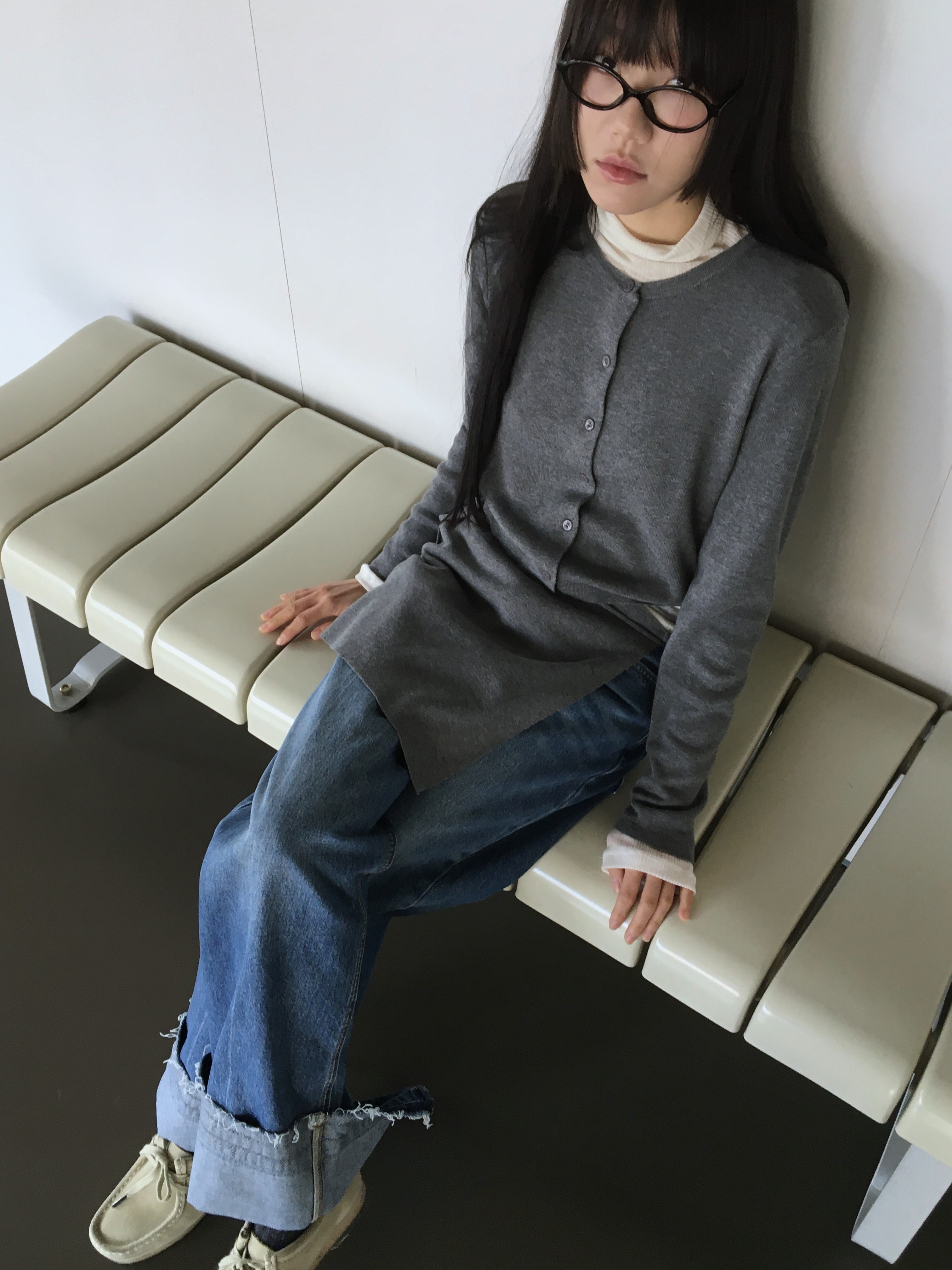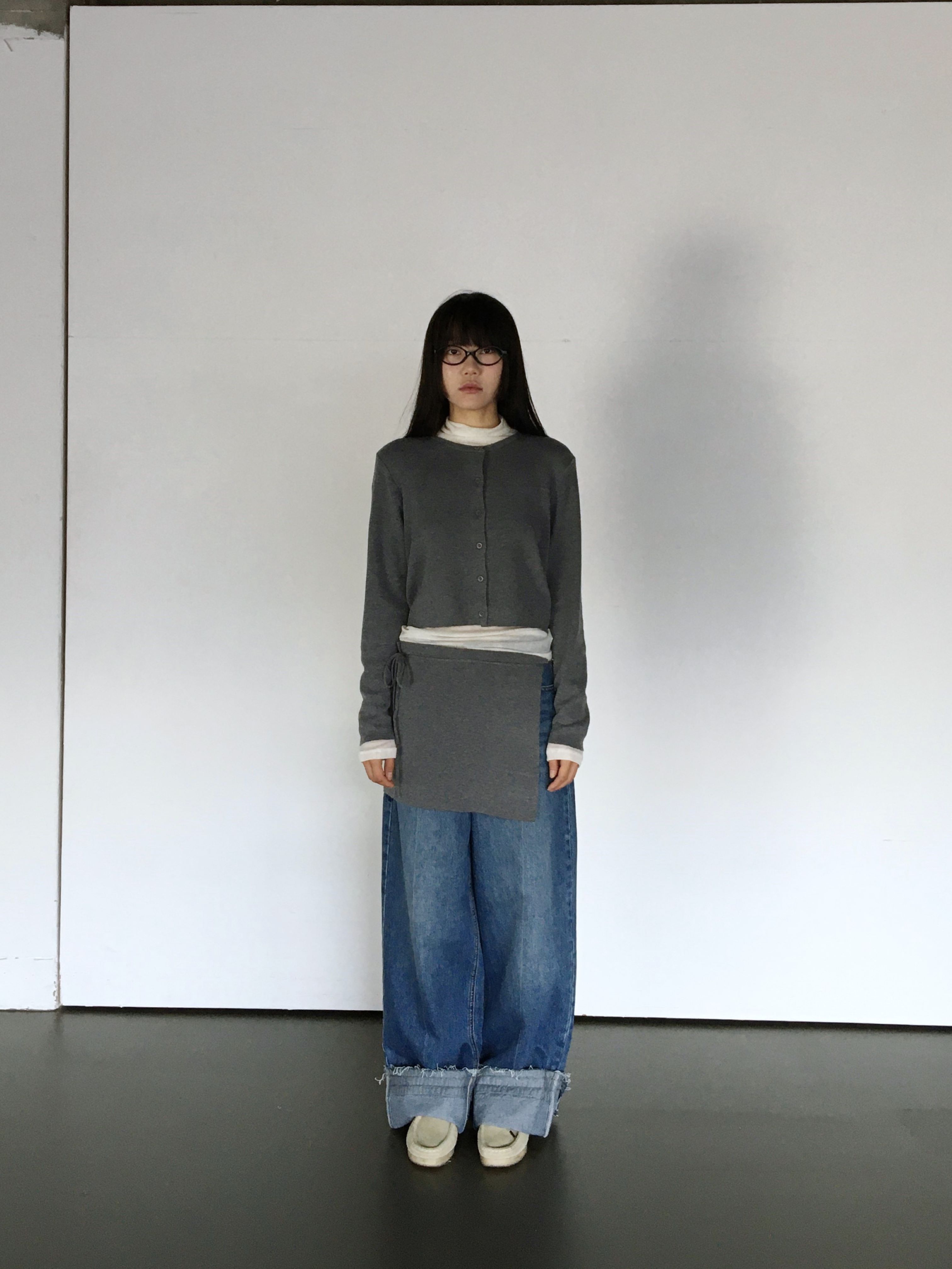 베이직한 디자인의 가디건과 랩스커트 세트 구성 아이템 입니다.