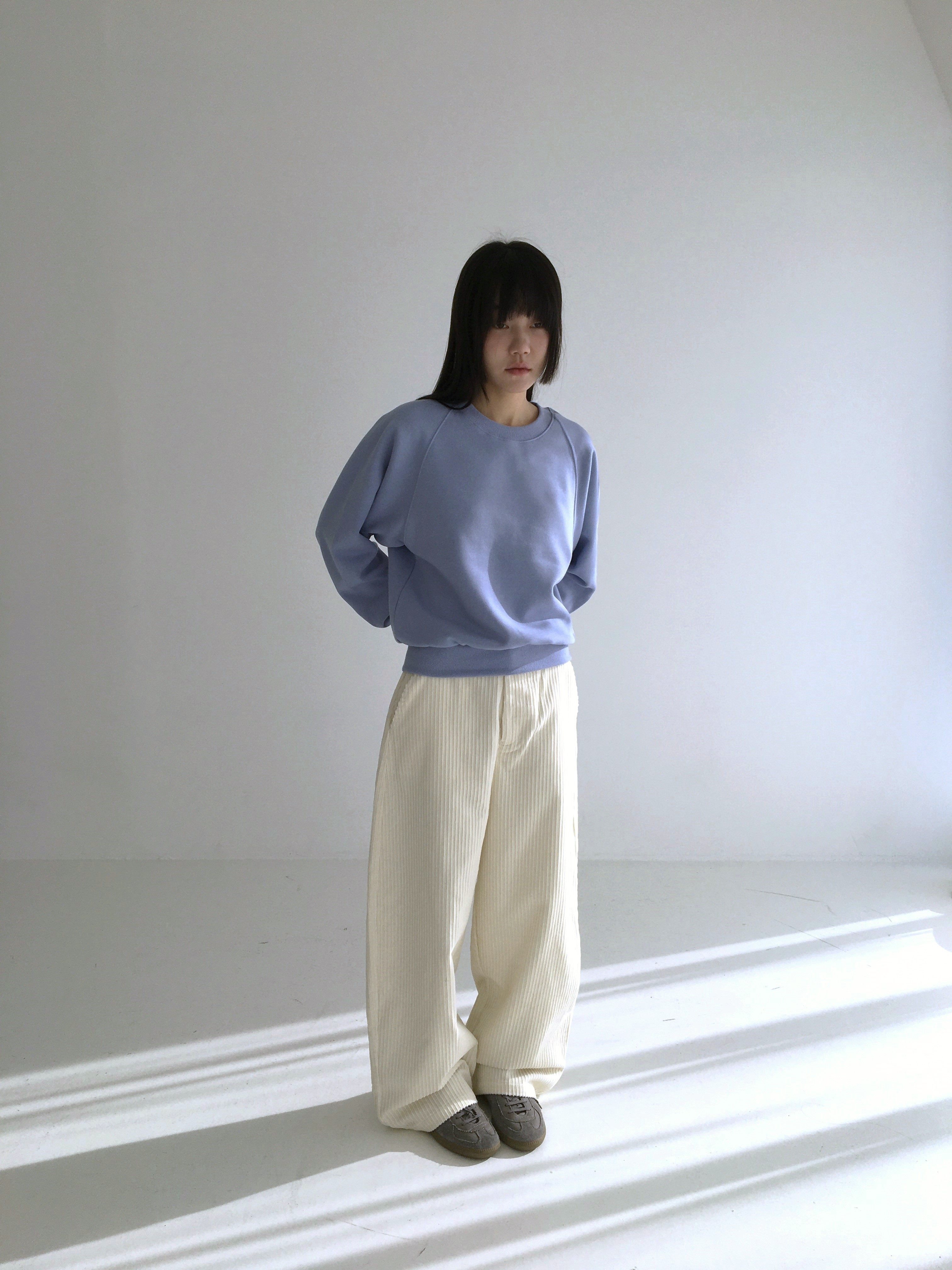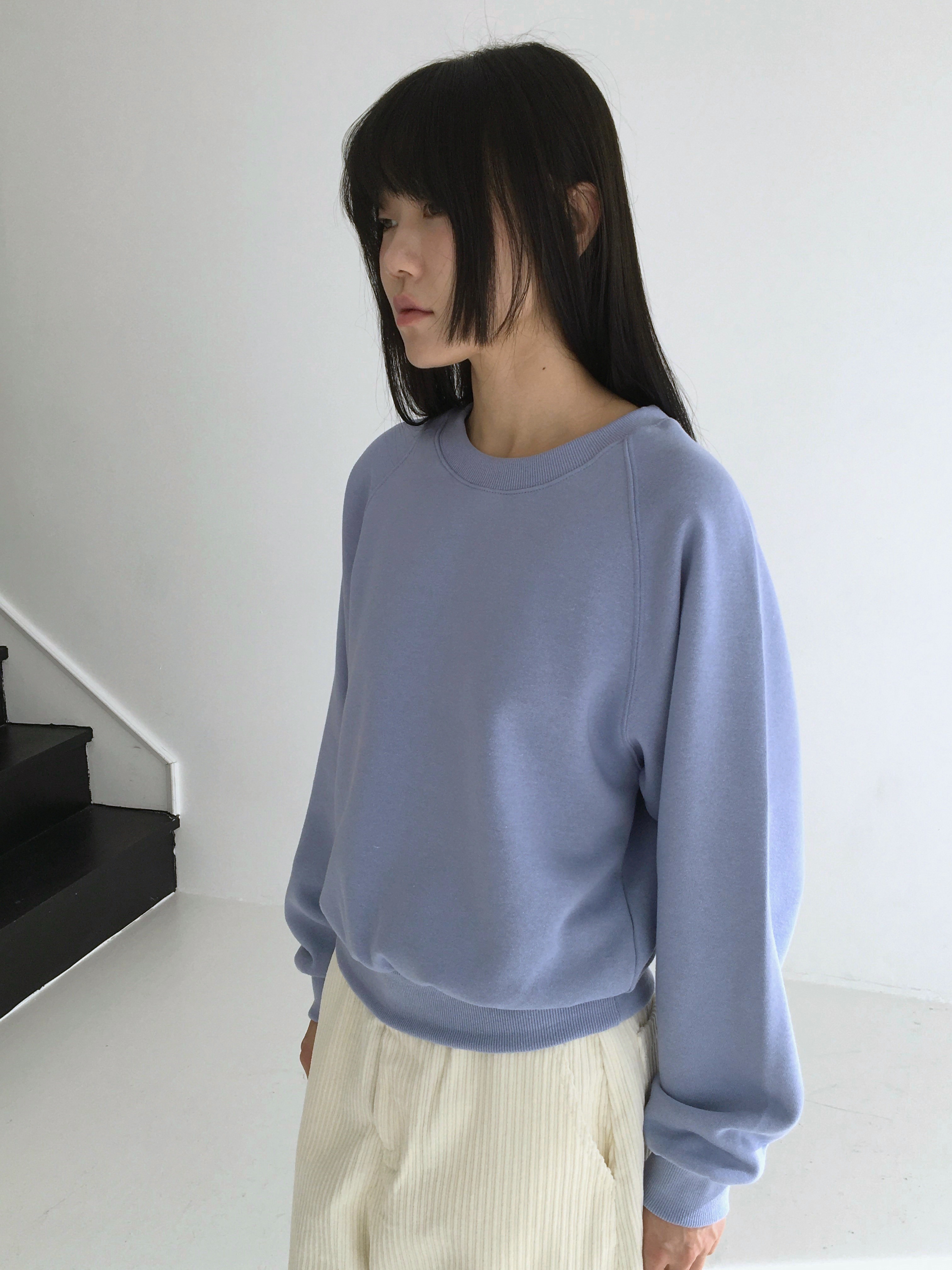 부드러운 코튼 기모 소재의 라운드넥 스웨트 셔츠입니다.