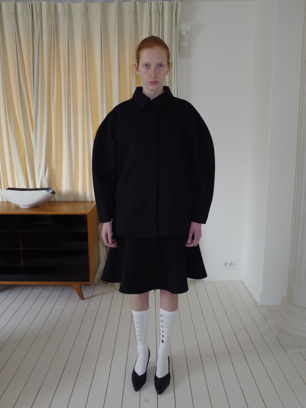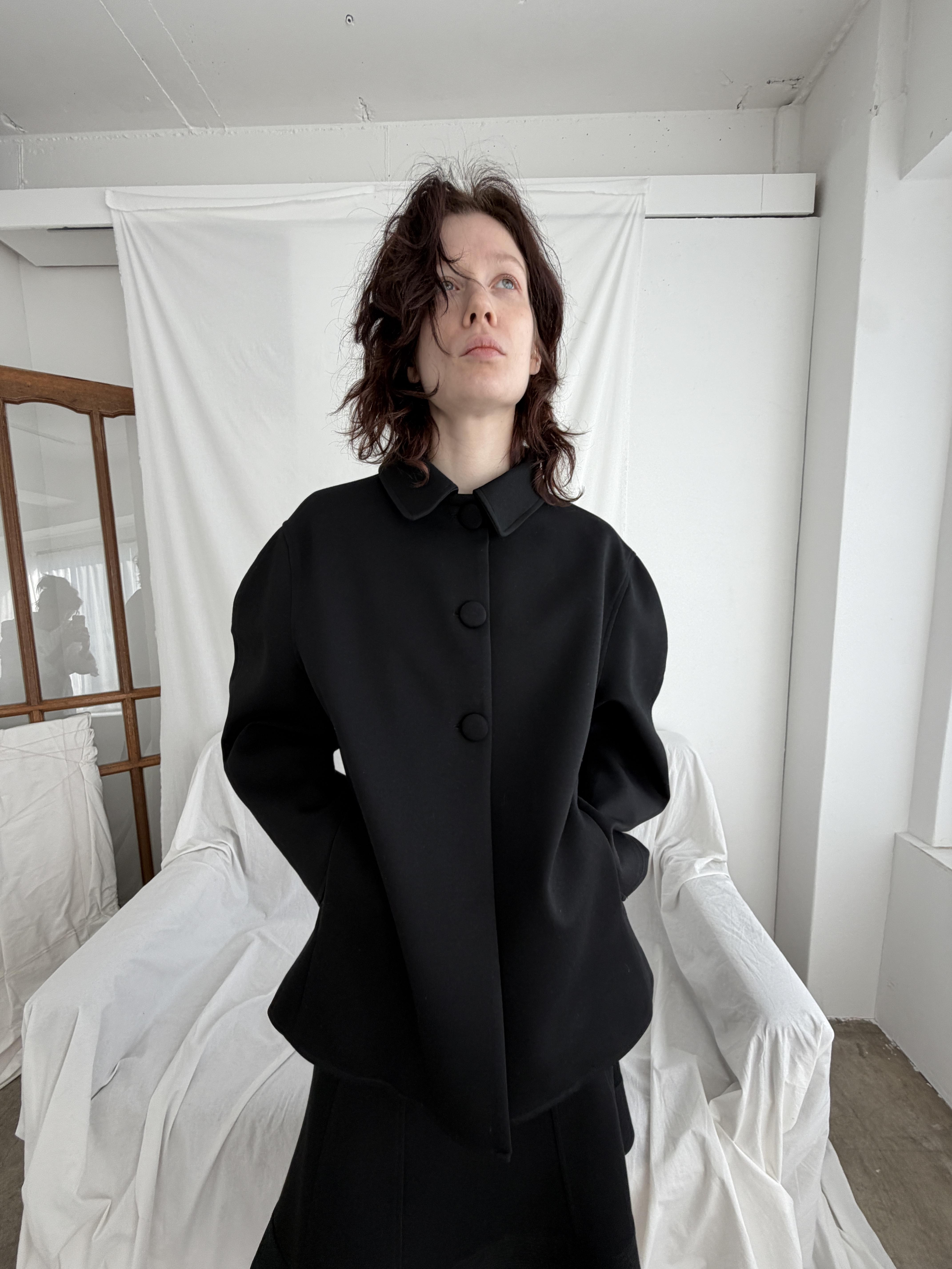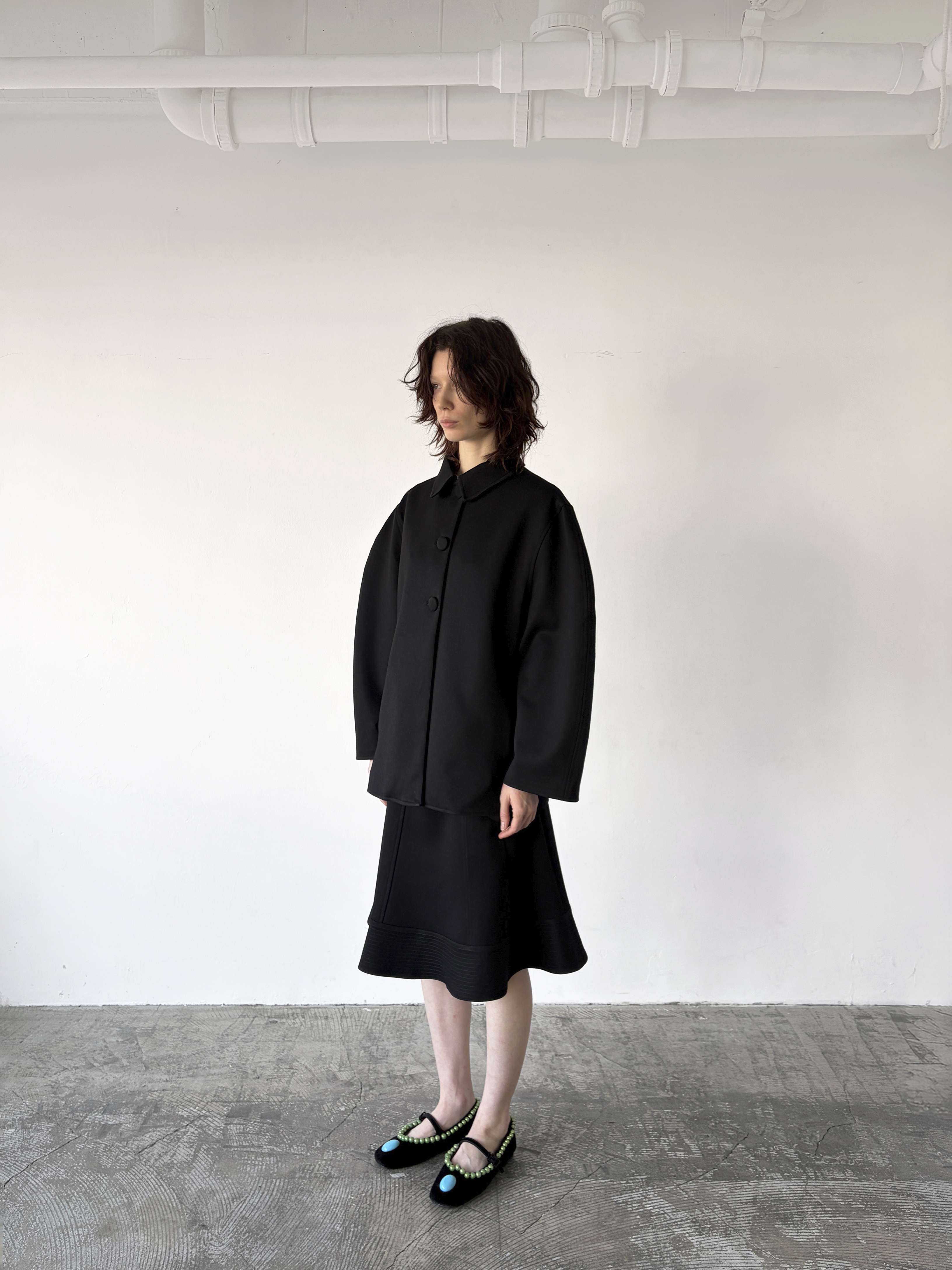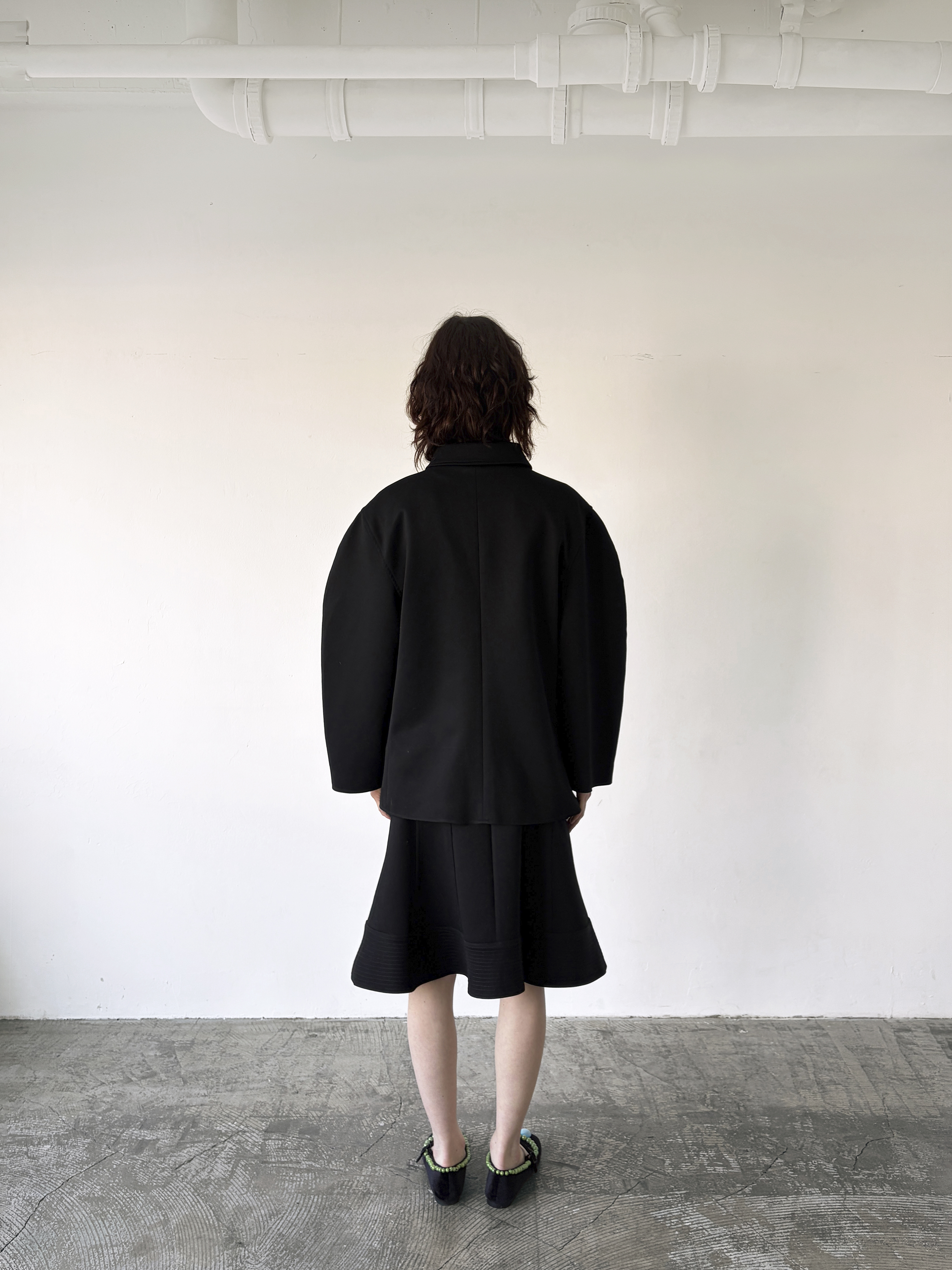 - 오버 사이즈의 숄더 핏과 벌룬 소매
