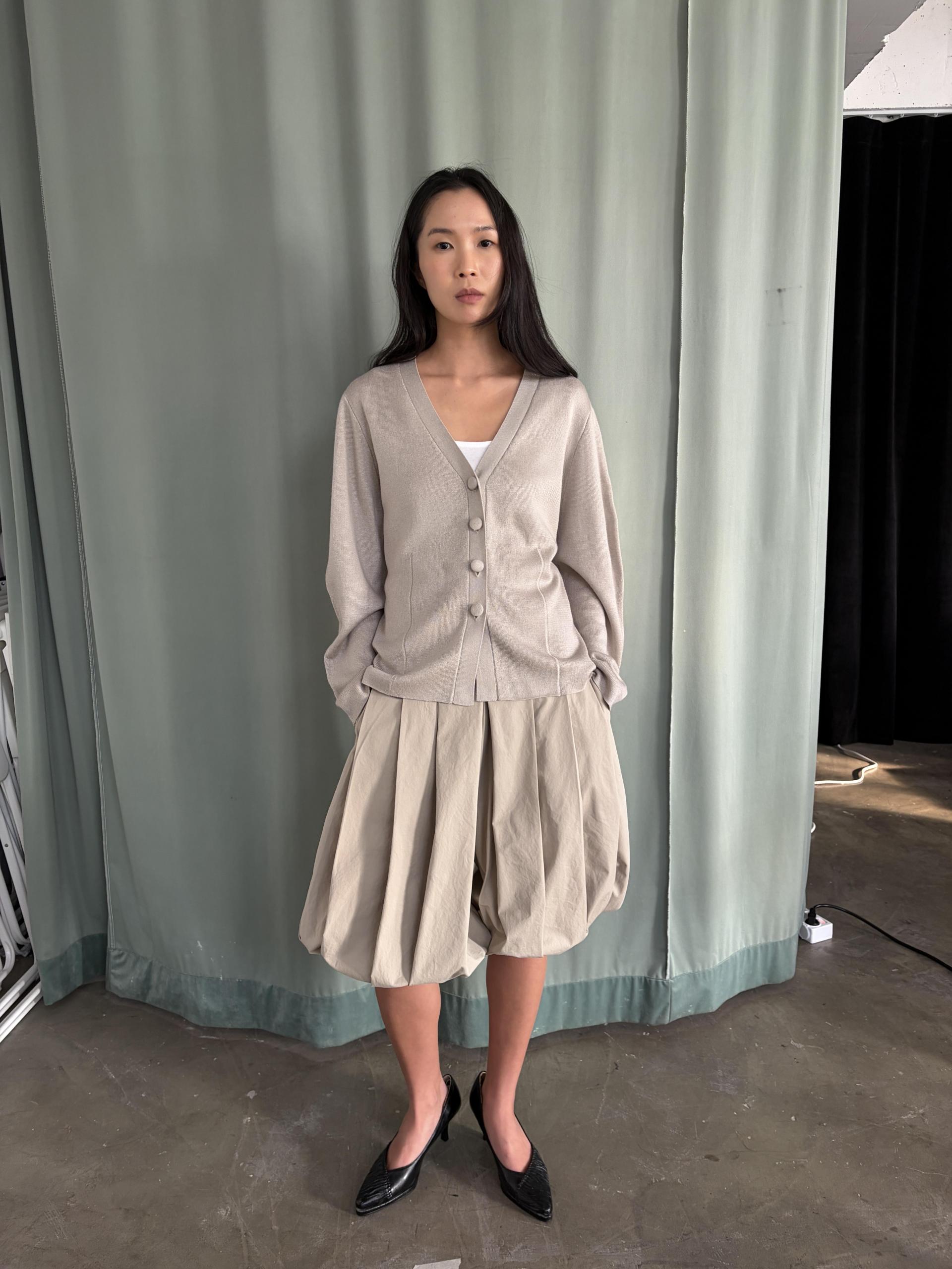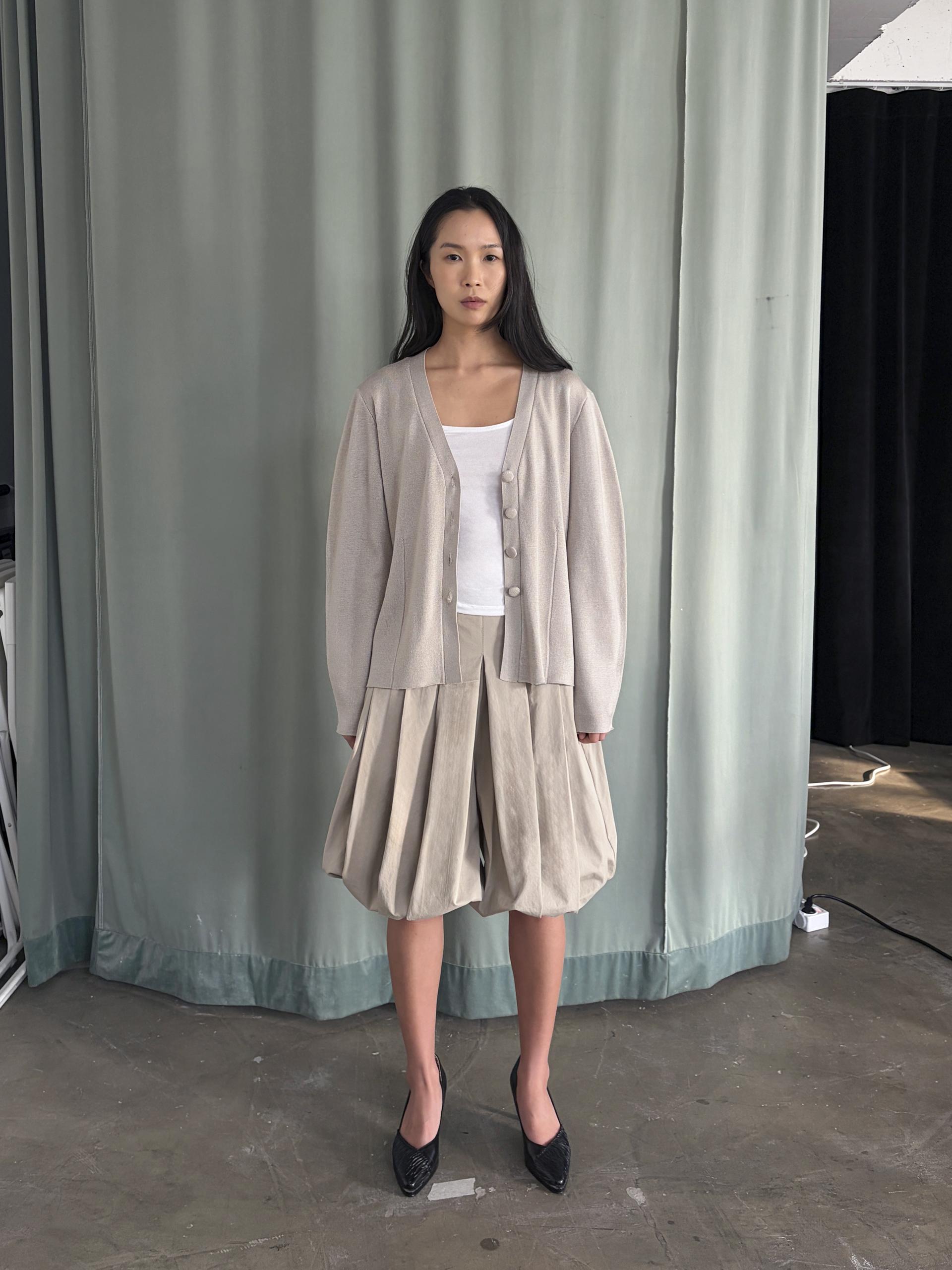 - 벌룬 형태의 버뮤다 플리츠 팬츠