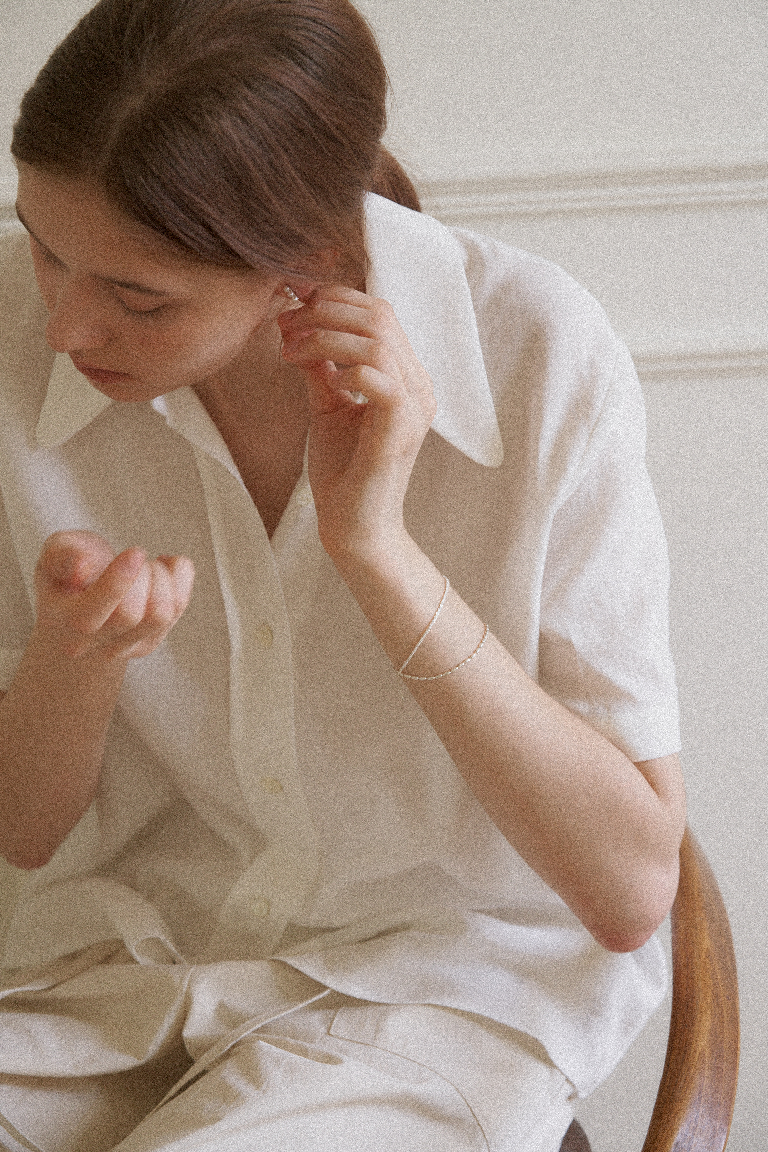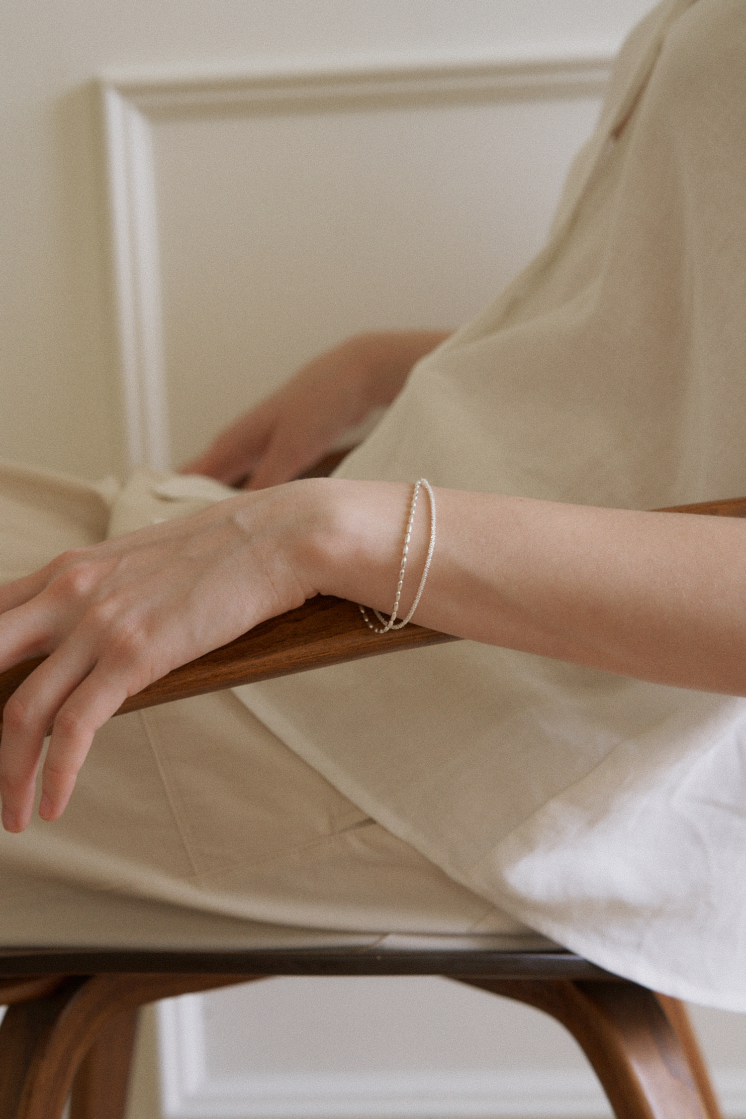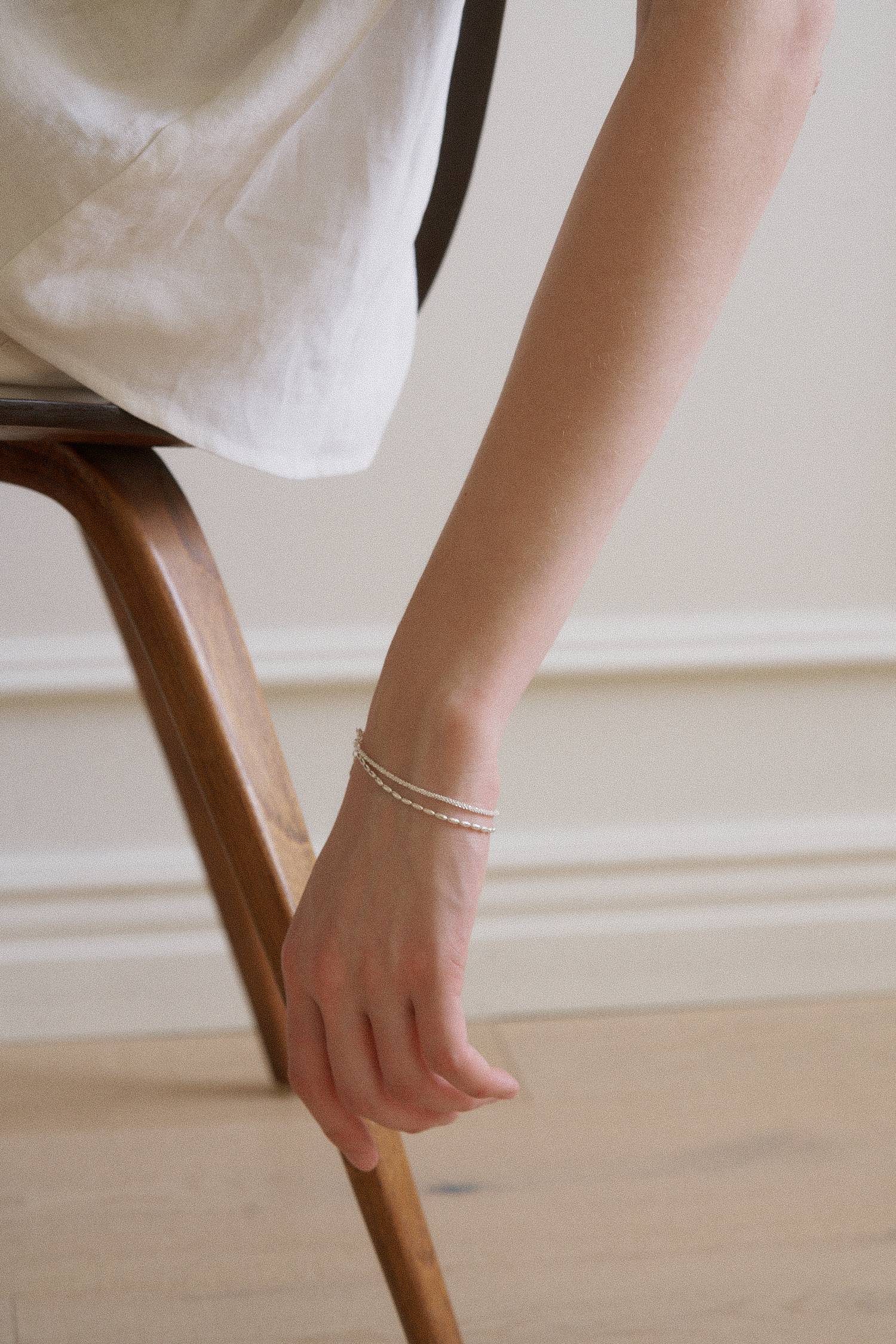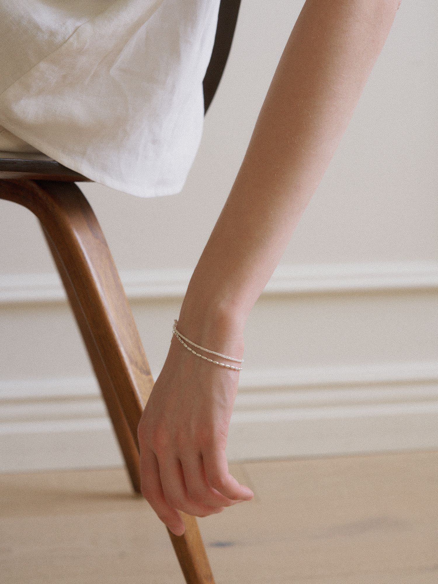레이어드 팔찌 입니다. 여리여리한 무드로 연출하기 좋으며