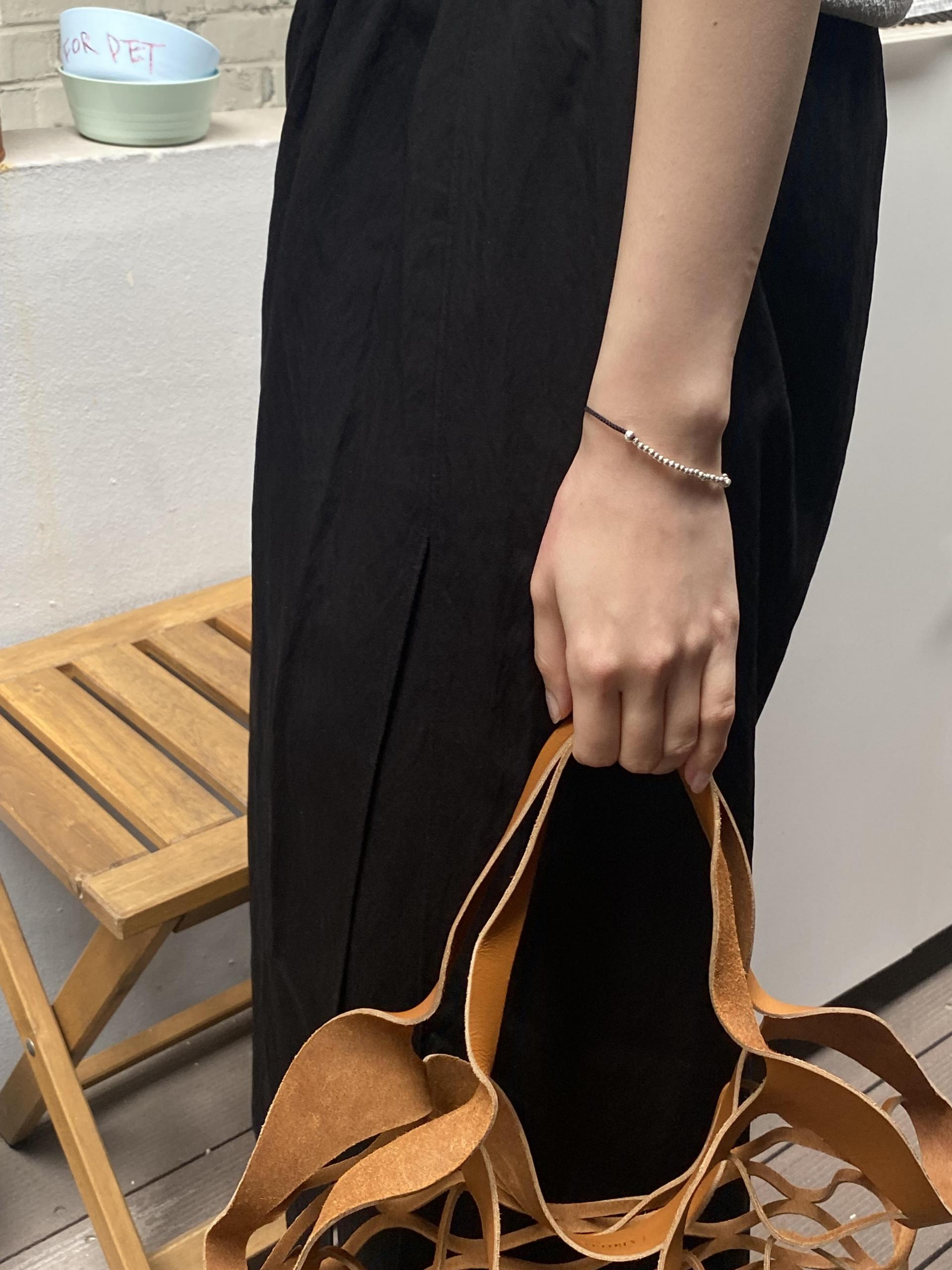 실버 스퀘어와 실버 볼 펜던트를 사이드로 연결한 유니크함이 매력적인 팔찌.