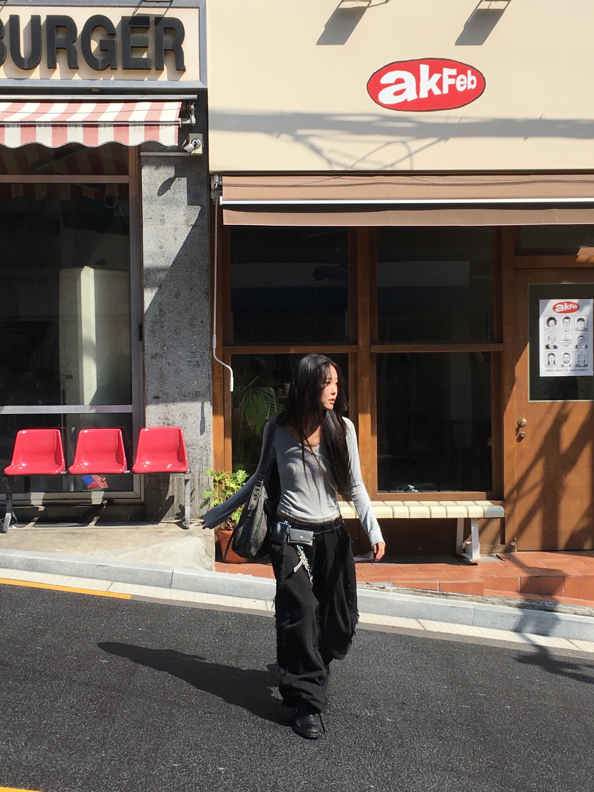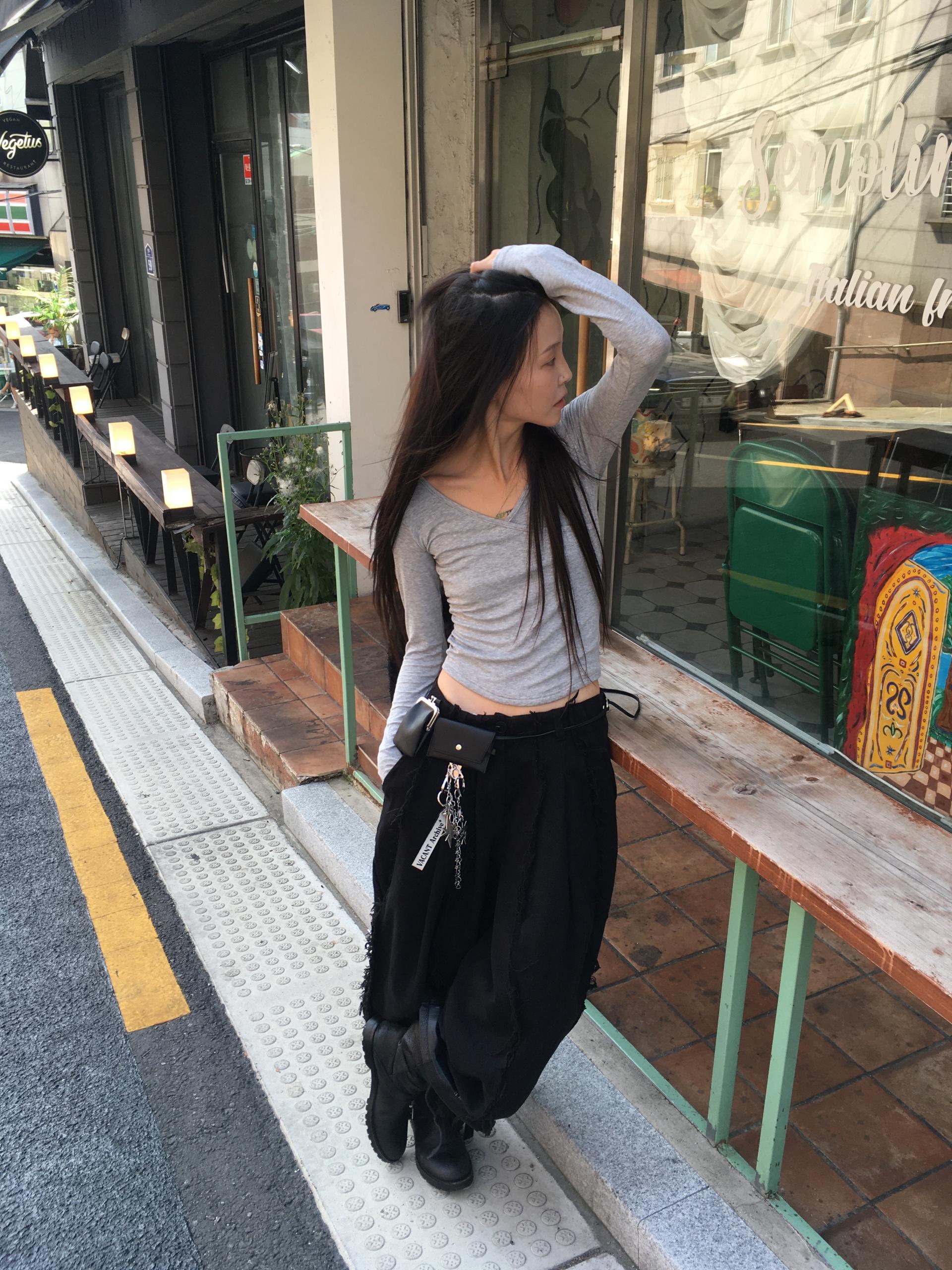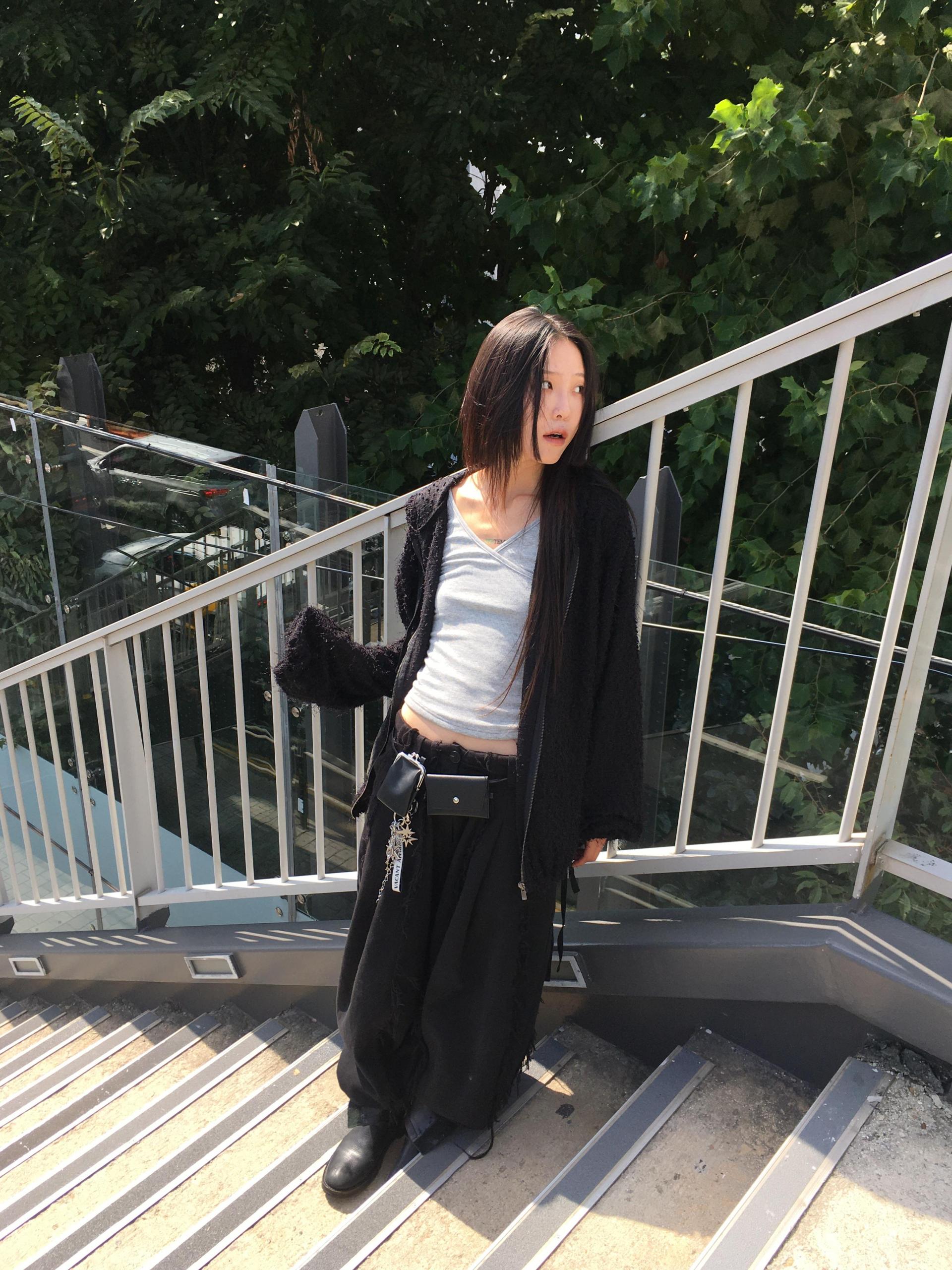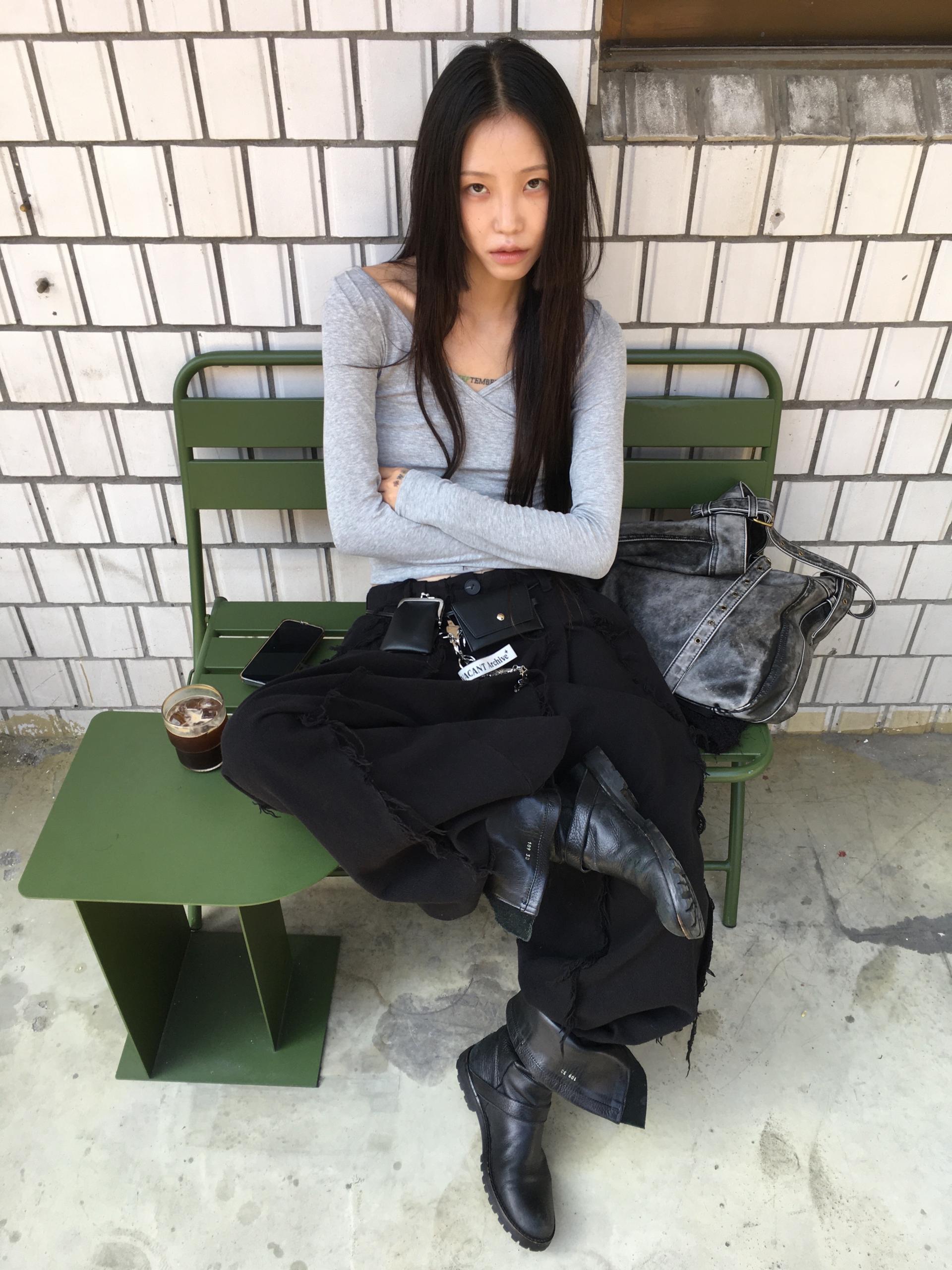 세로로 길게 뻗어 있는 로우엣지 디테일이 특징인 아이템입니다.